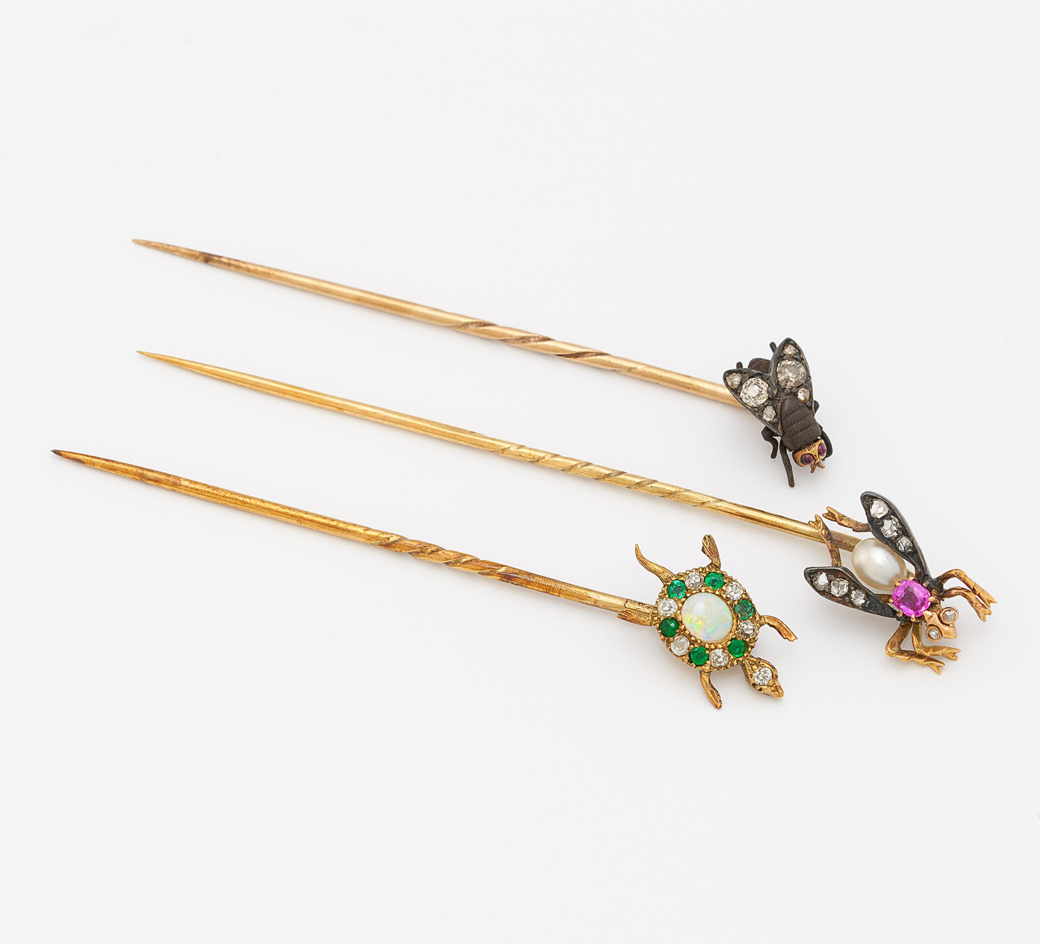 Beschreibung: Nadelköpfe in Form von einer Fliege und einer Schildkröte.
