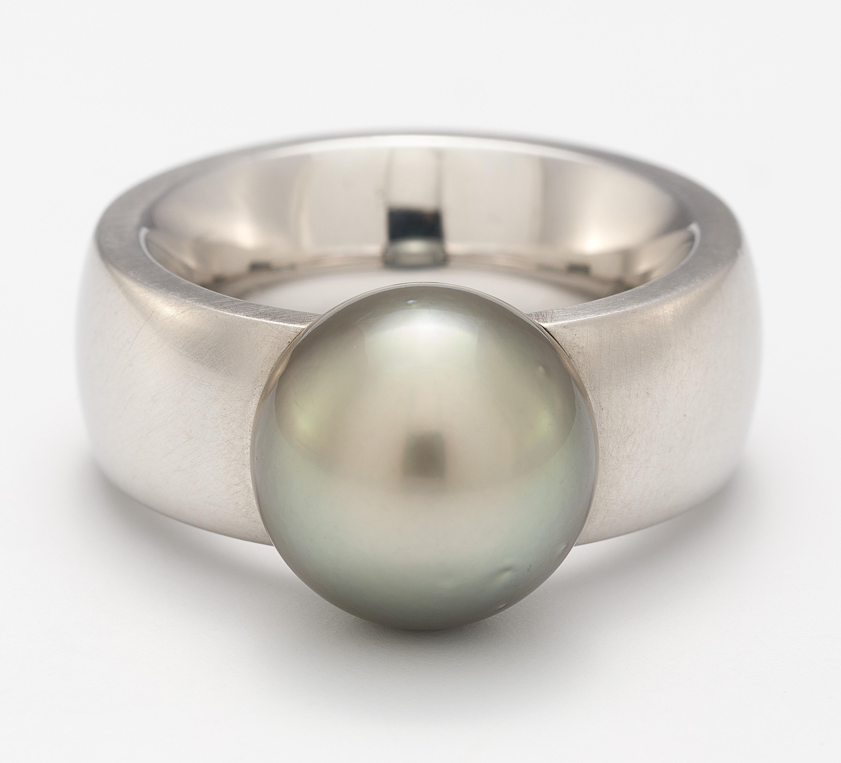 Org. Substanzen: 1 runde Südsee-Zuchtperle, anthrazitfarben.