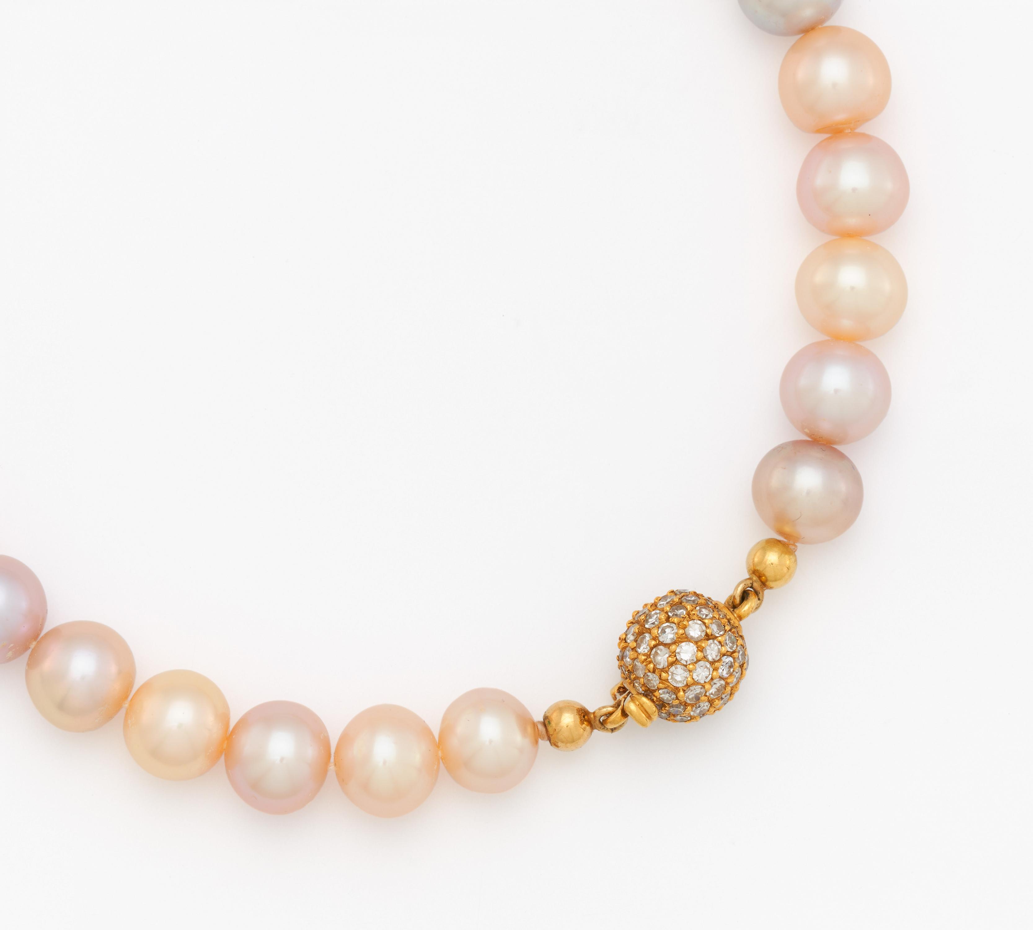 Org. Substanzen: 43 Süßwasser-Zuchtperlen Ø ca. 9,2 - 10,4 mm, rosé-lachsfarben.
