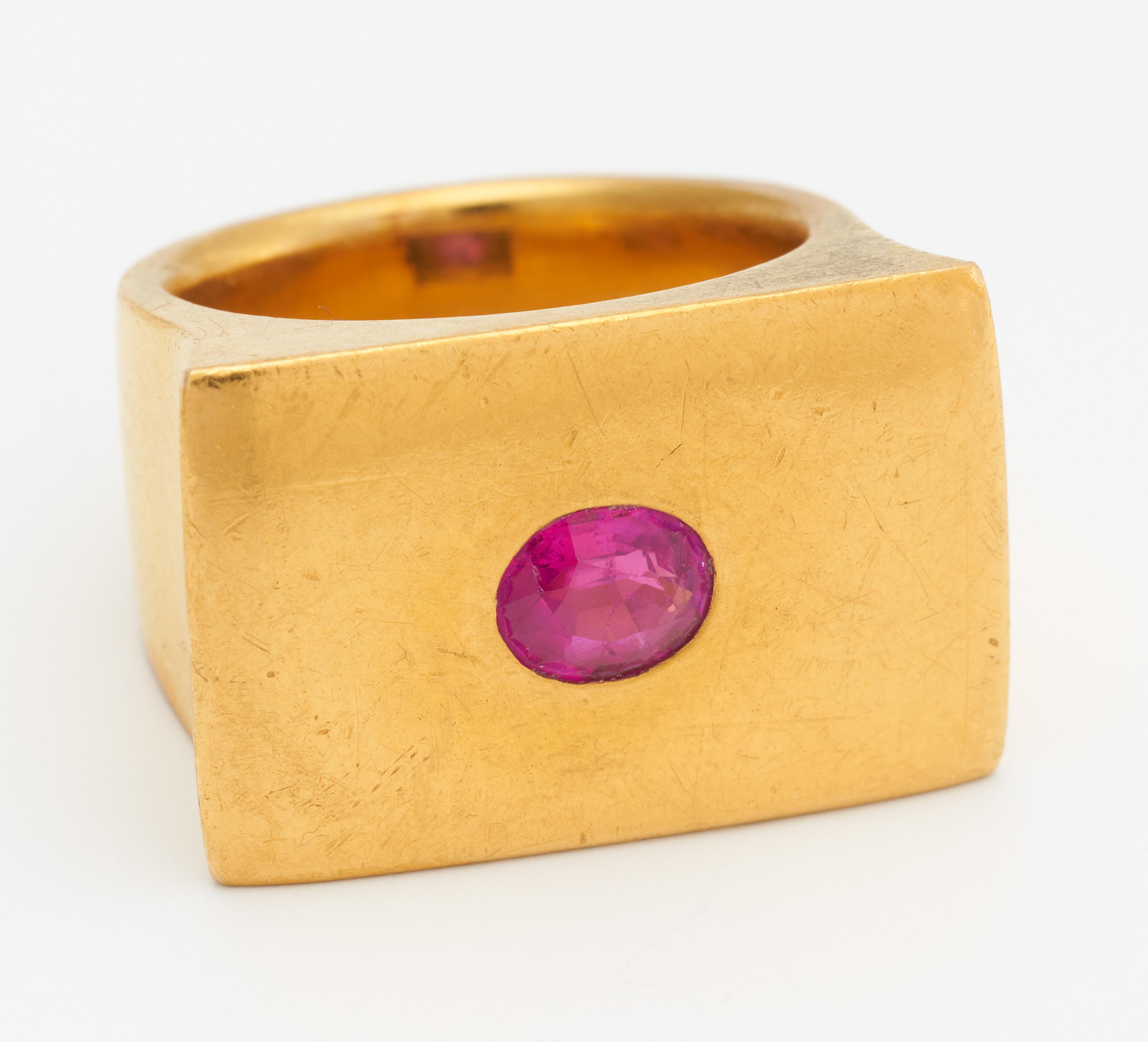 Edelsteine: 1 ovaler, facettierter Rubin ca. 0,8 ct., sehr schönes, intensives Pink.
