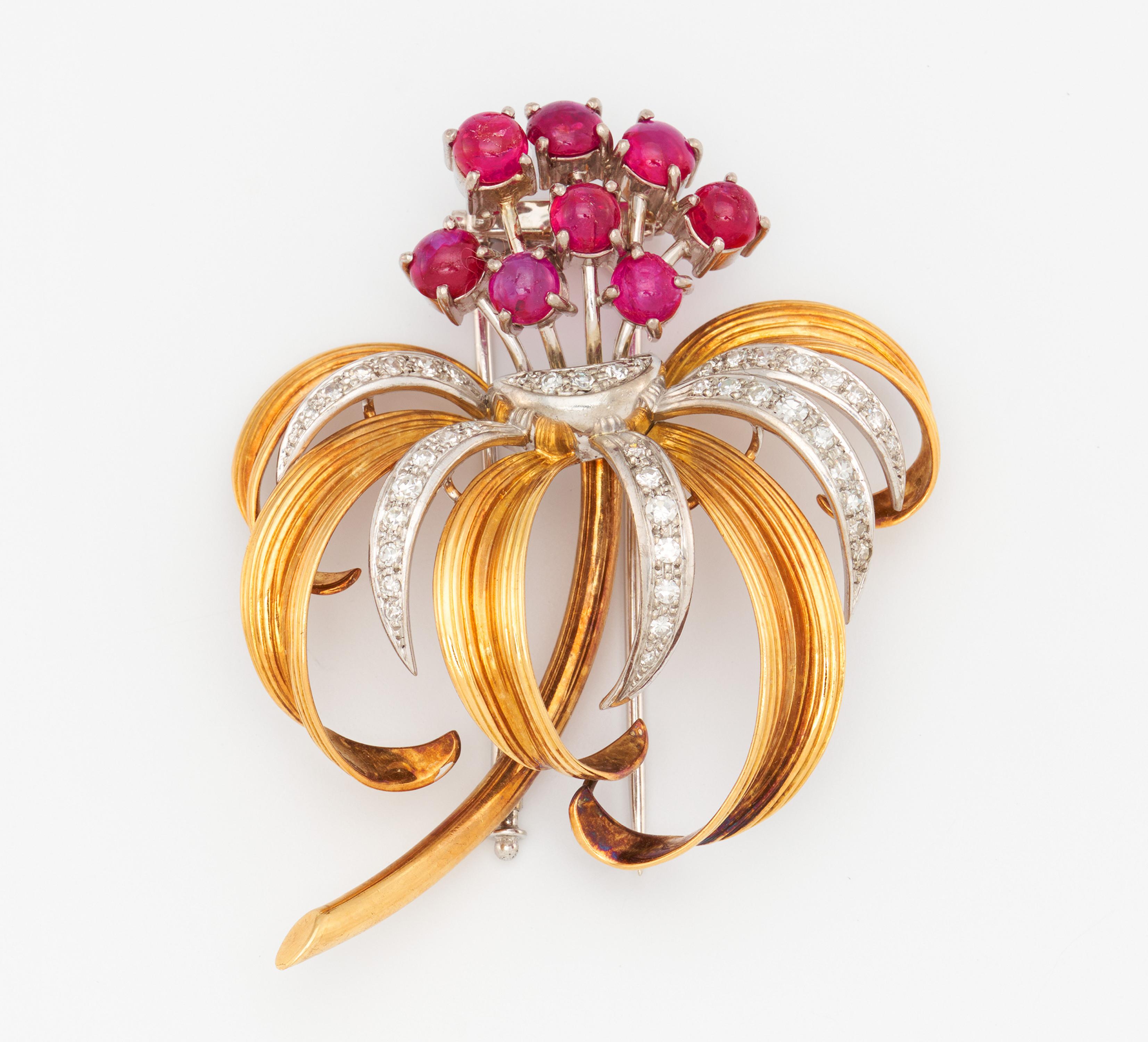 Diamanten: Ca. 43 Brillanten Ø ca. 0,8 - 2,4 mm.