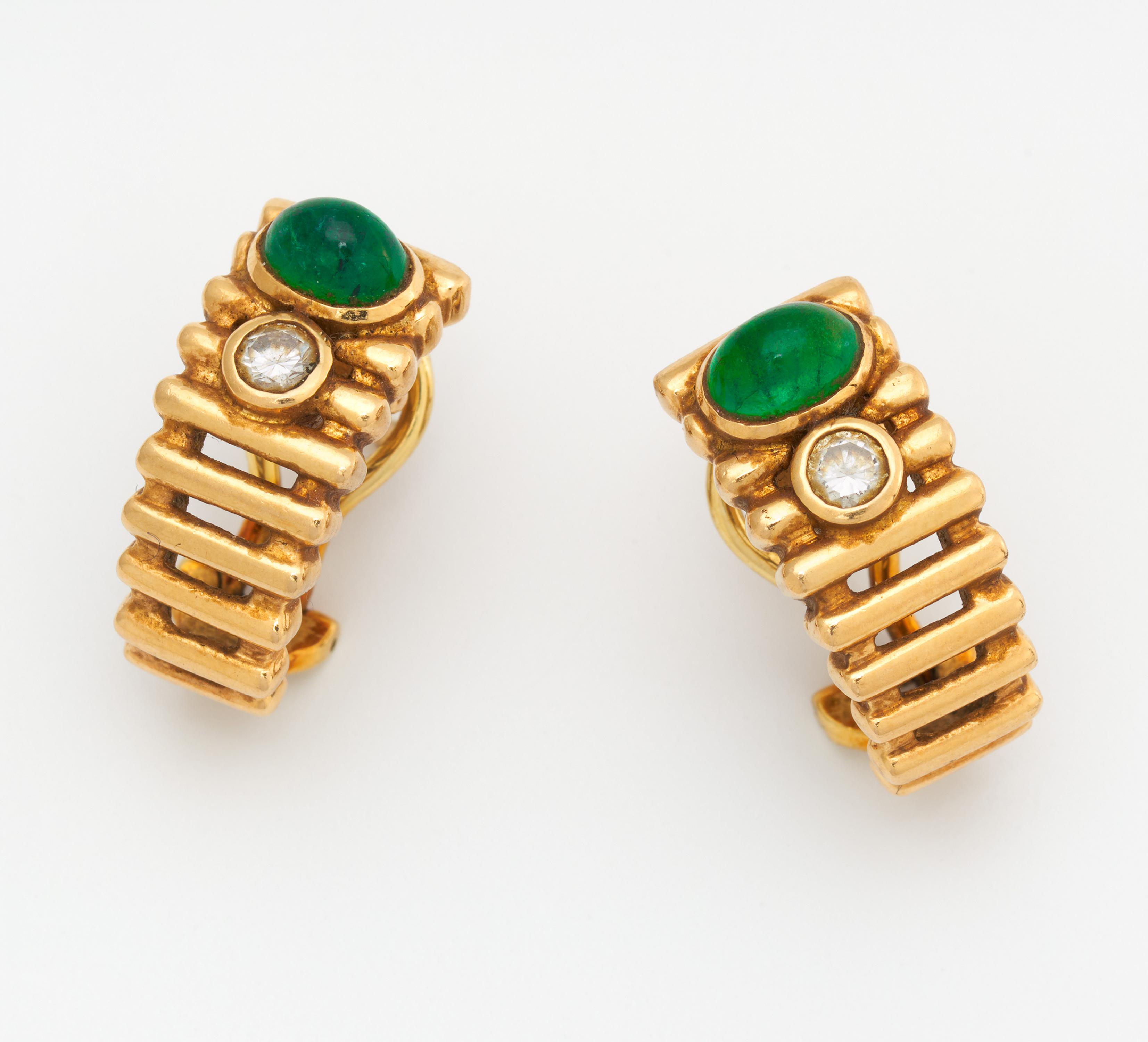 Edelsteine: 2 Smaragd-Cabochons 5,7 x 4,1 mm.