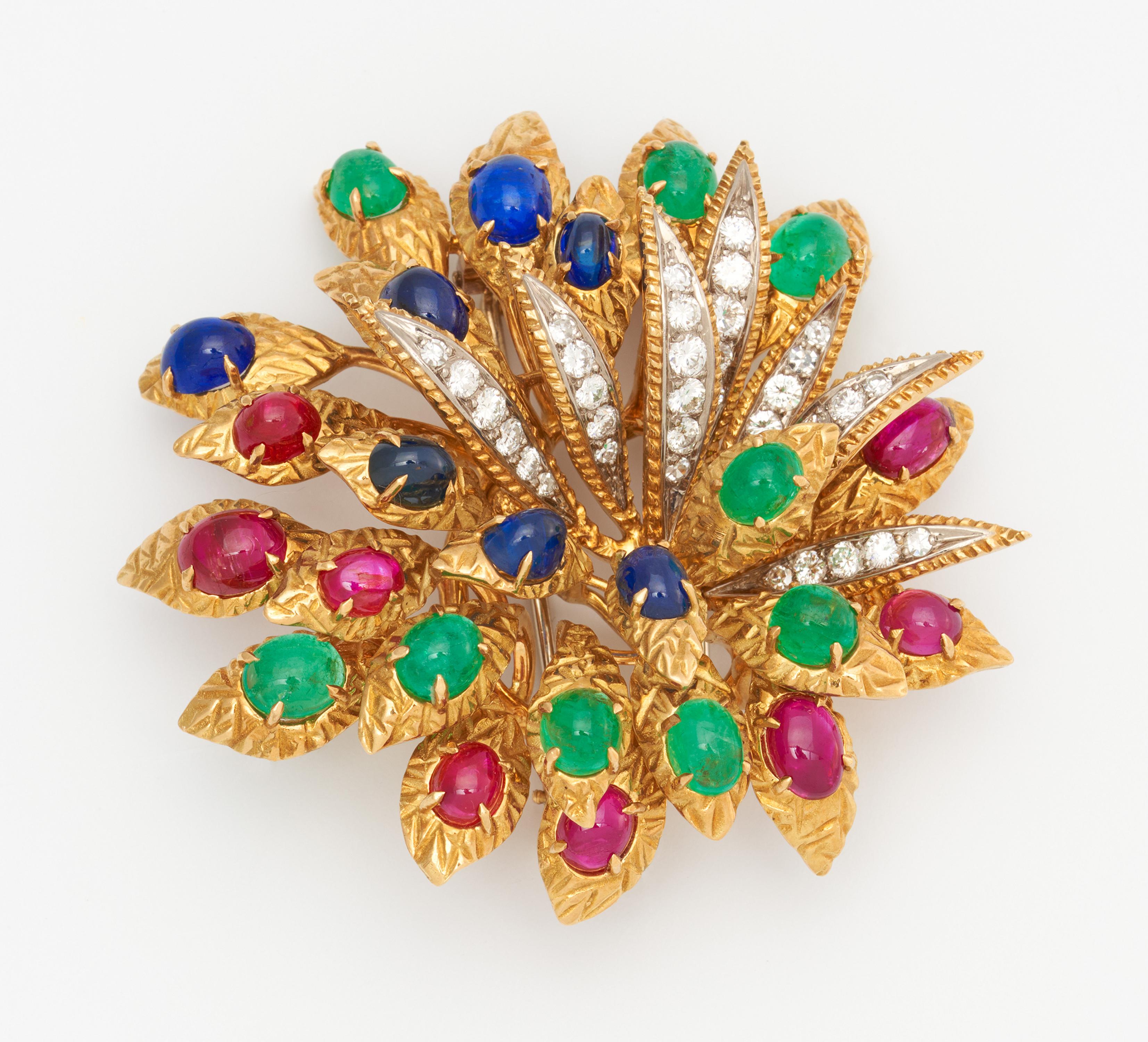 Edelsteine: 23 ovale Farbstein-Cabochons, wohl Smaragd, Saphir und Rubin, 5,0 - 5,5 x 2,8 - 3,3 mm.