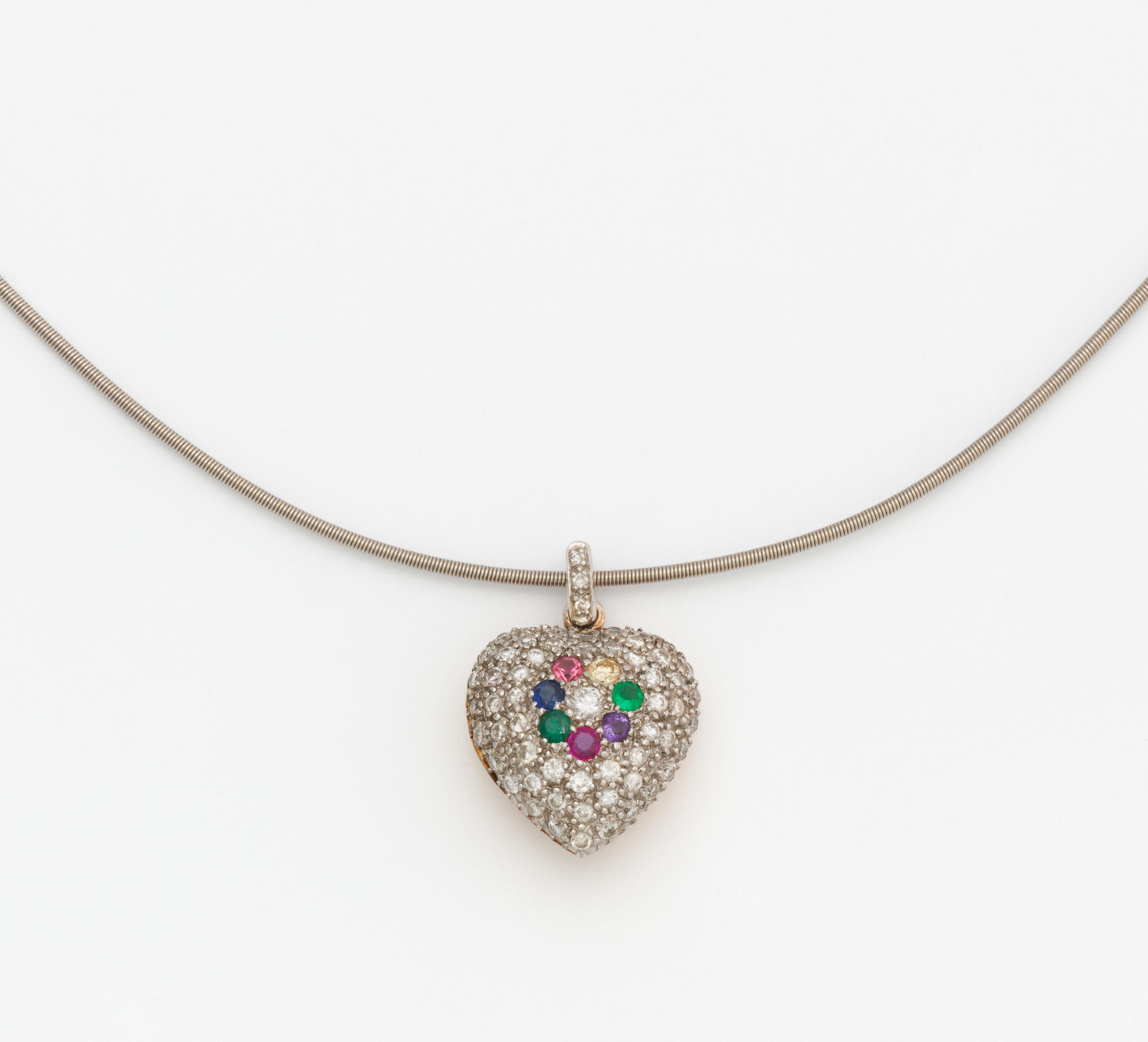 Material: Reif 950/- Platin, Punze, Herzanhänger 750/- Gelb- und Weißgold.