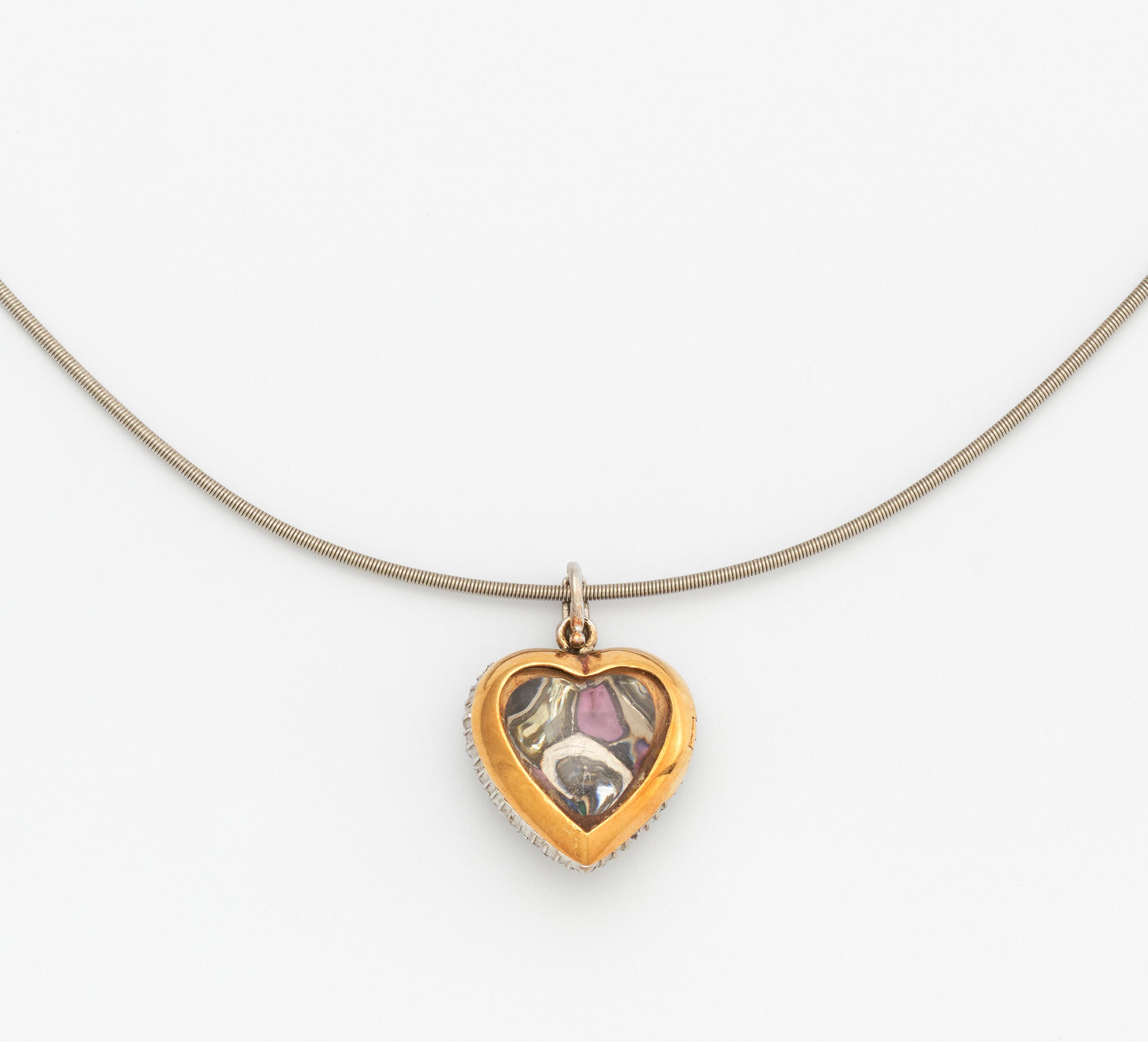 Rückseite des Herz mit eingeschliffenem Cabochon, wohl Glas.