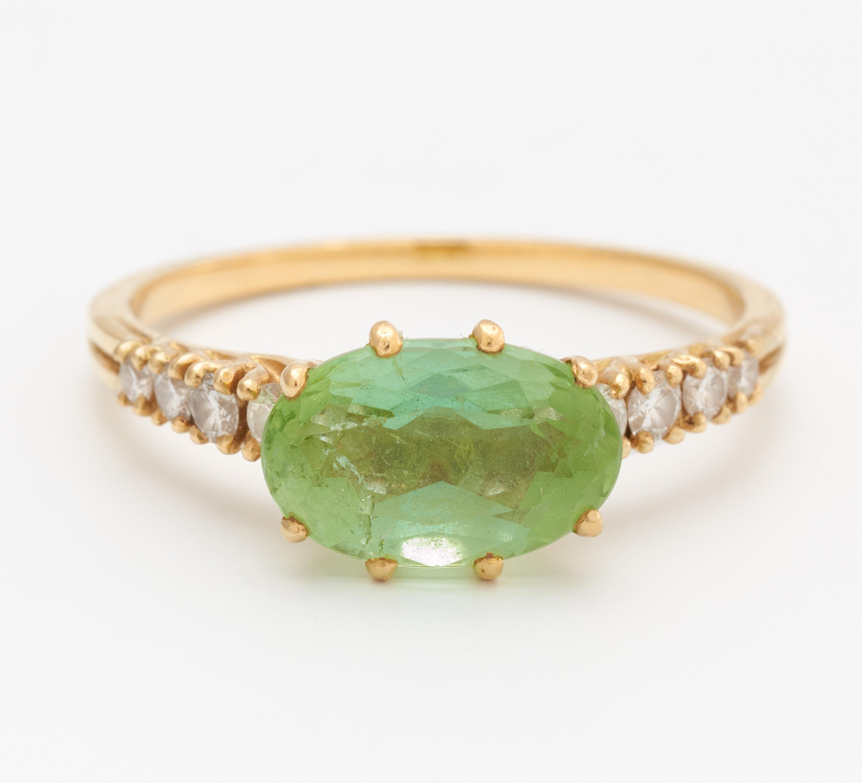 Edelsteine: 1 grünlicher Farbstein, wohl Andalusit 7,2 x 11,1 x 5,5 mm.