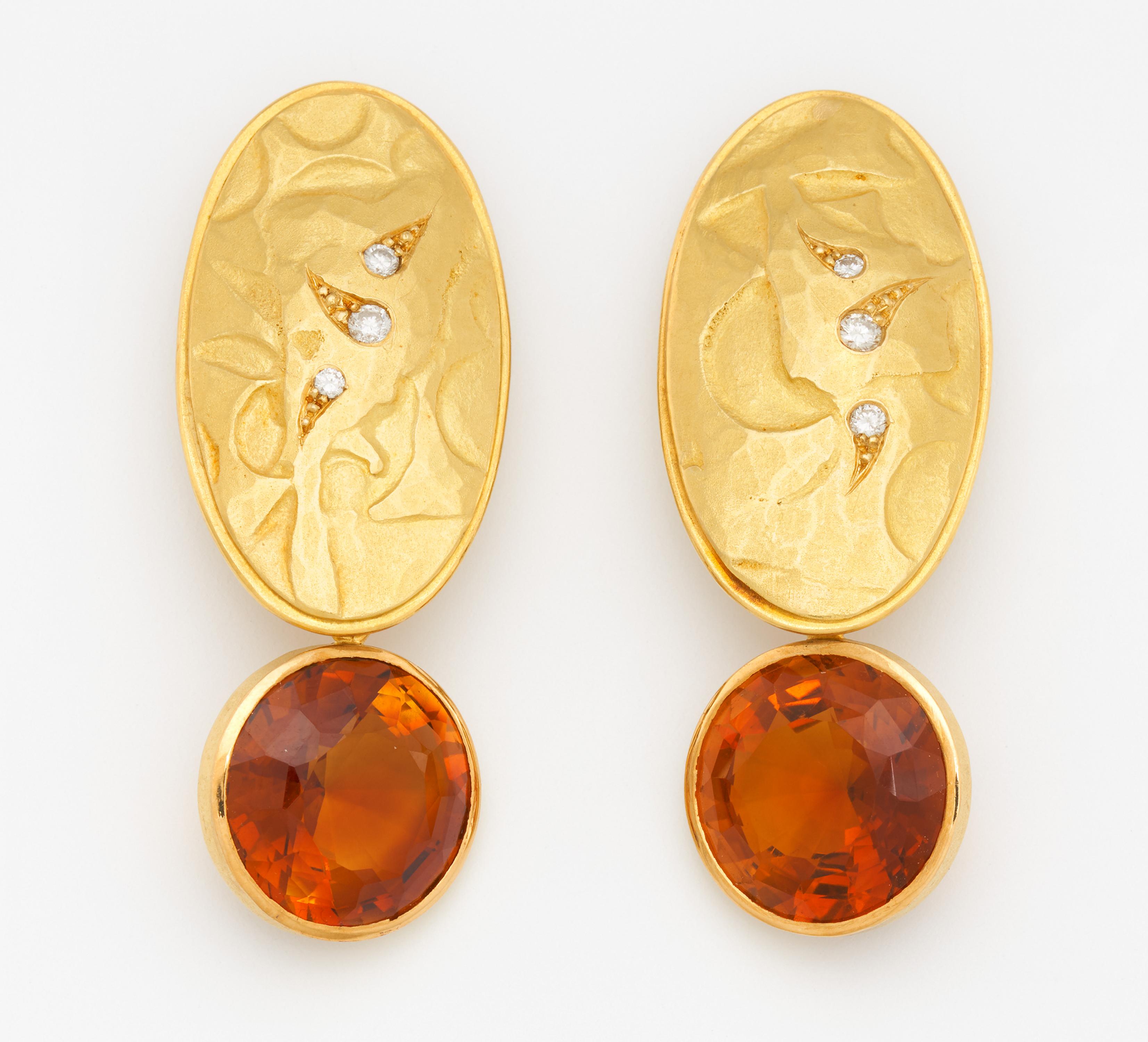 Edelsteine: 2 dunkel gebrannte, runde, facettierte Citrine Ø 14,7 mm.