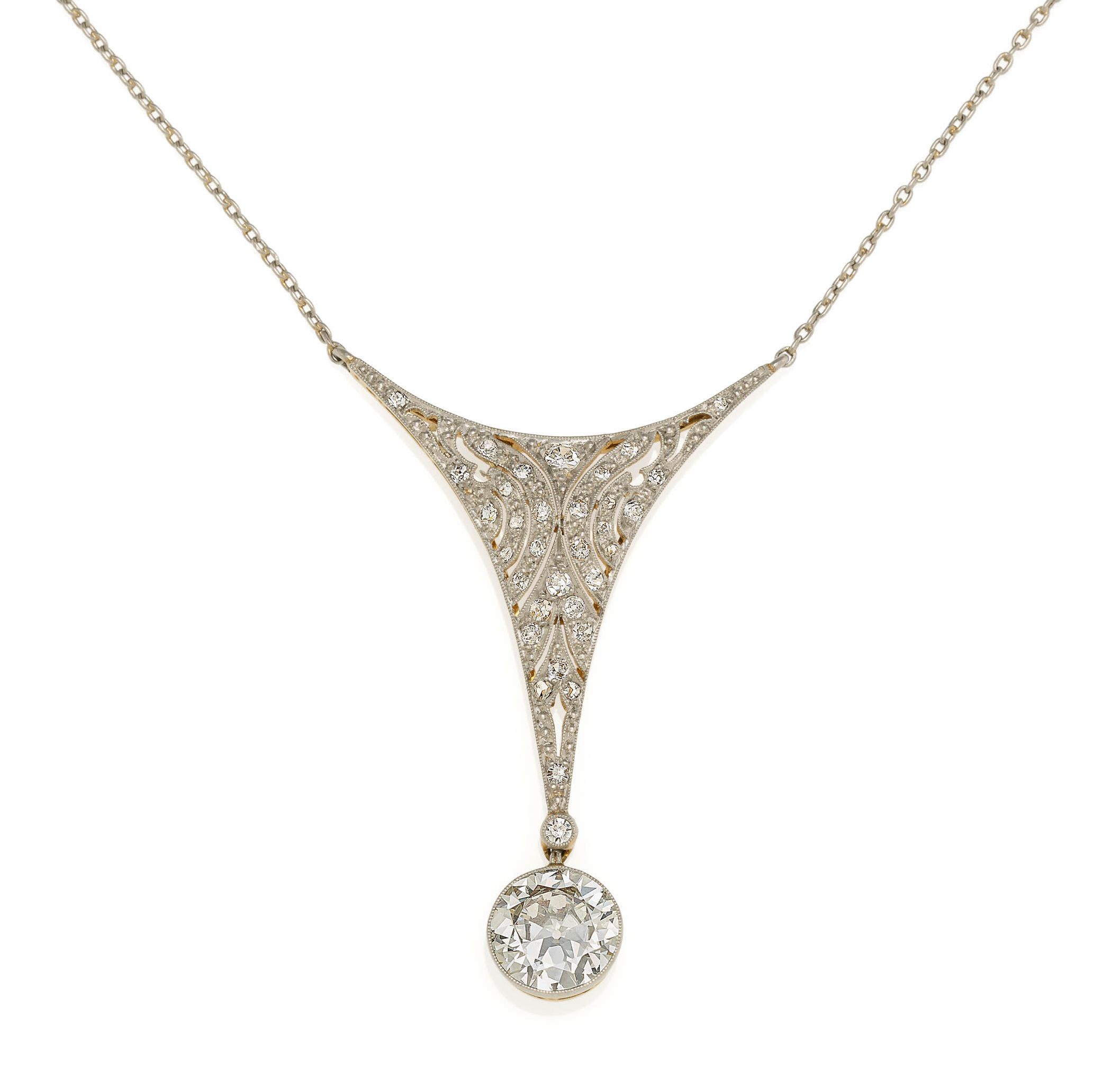 Diamanten: 1 Diamant im Alt-Schliff ca. 1,5 ct. L/P1, ca. 44 Diamanten im Achtkant- und Alt-Schliff zus. ca. 0,3 ct.