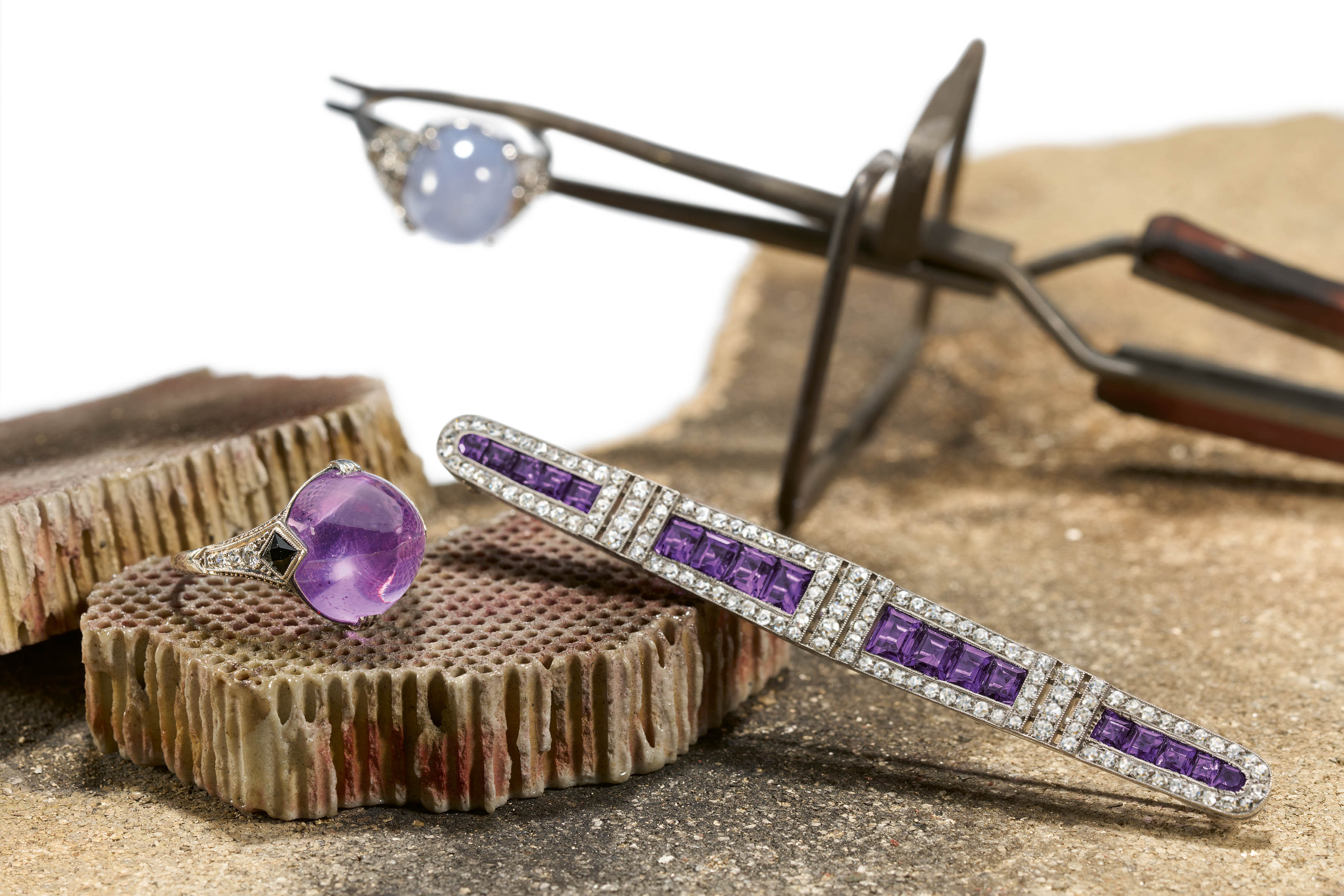 Edelsteine: 1 Amethyst im Cabochon-Schliff ca. 10,0 ct.