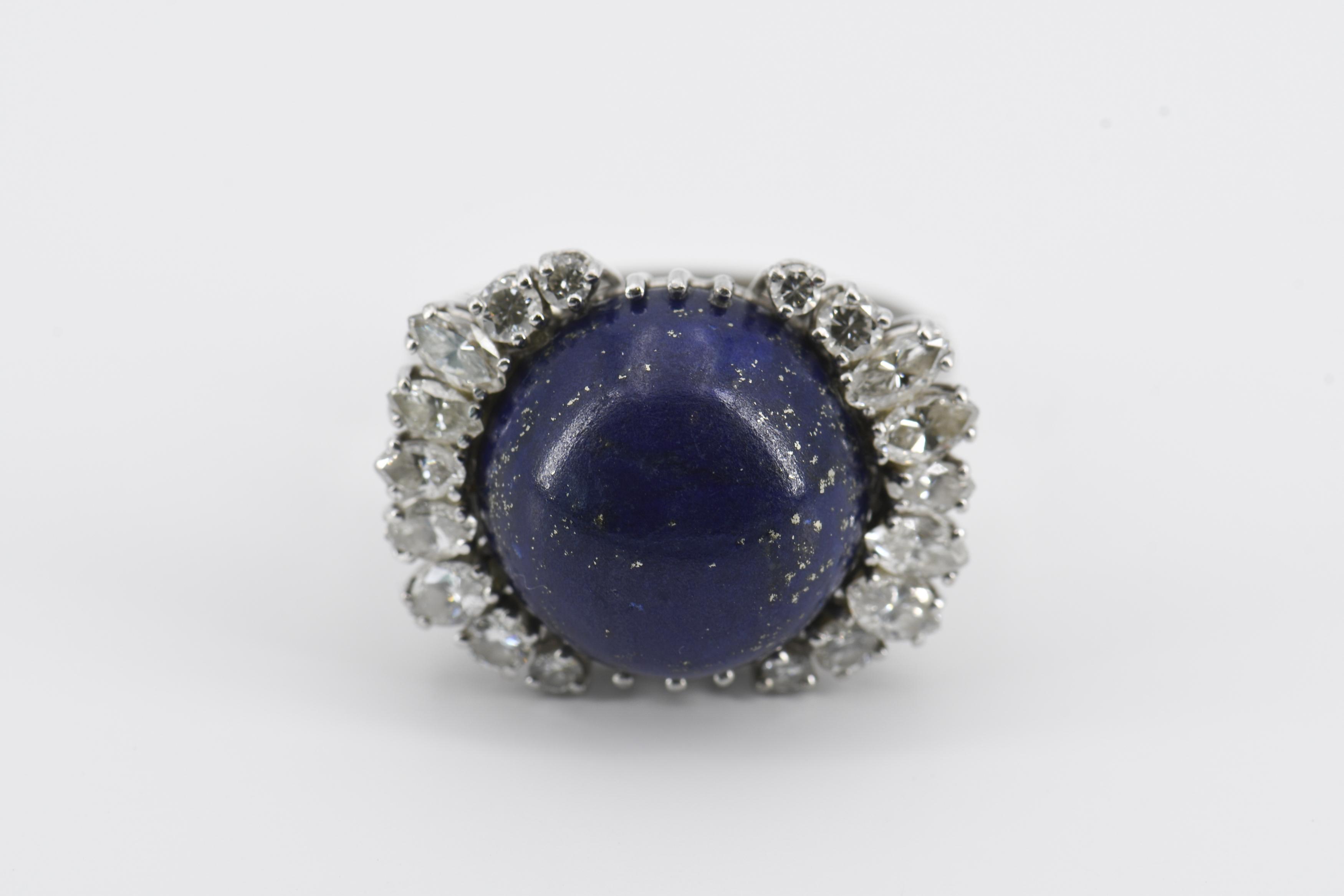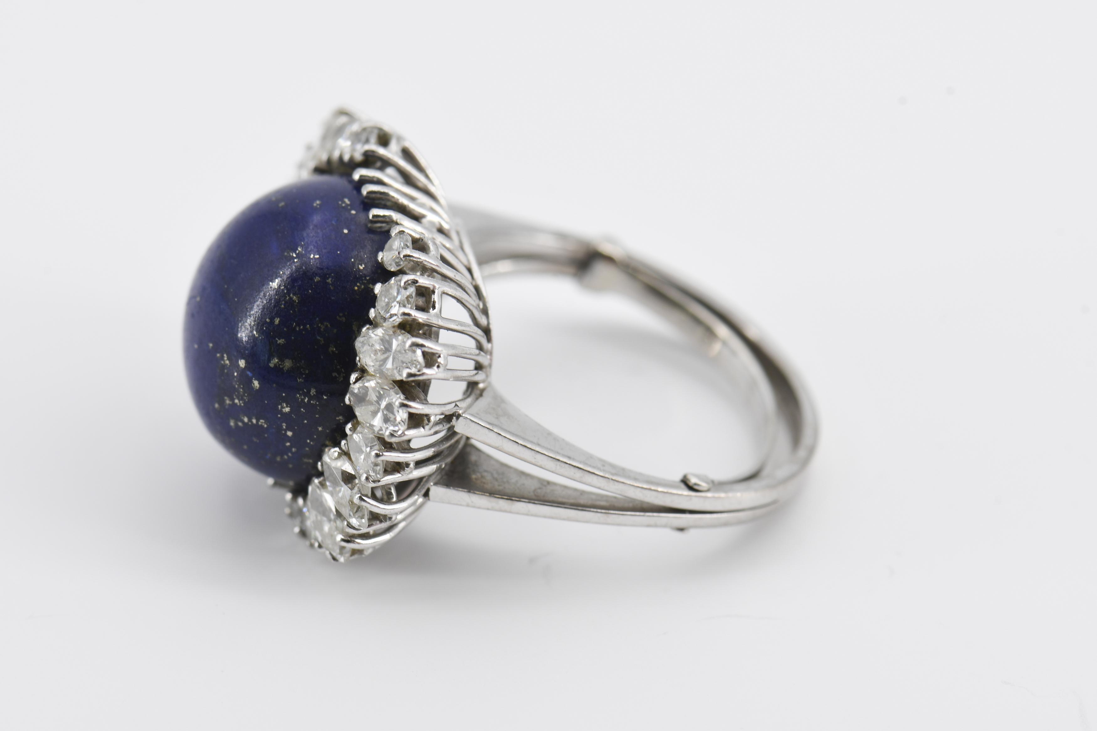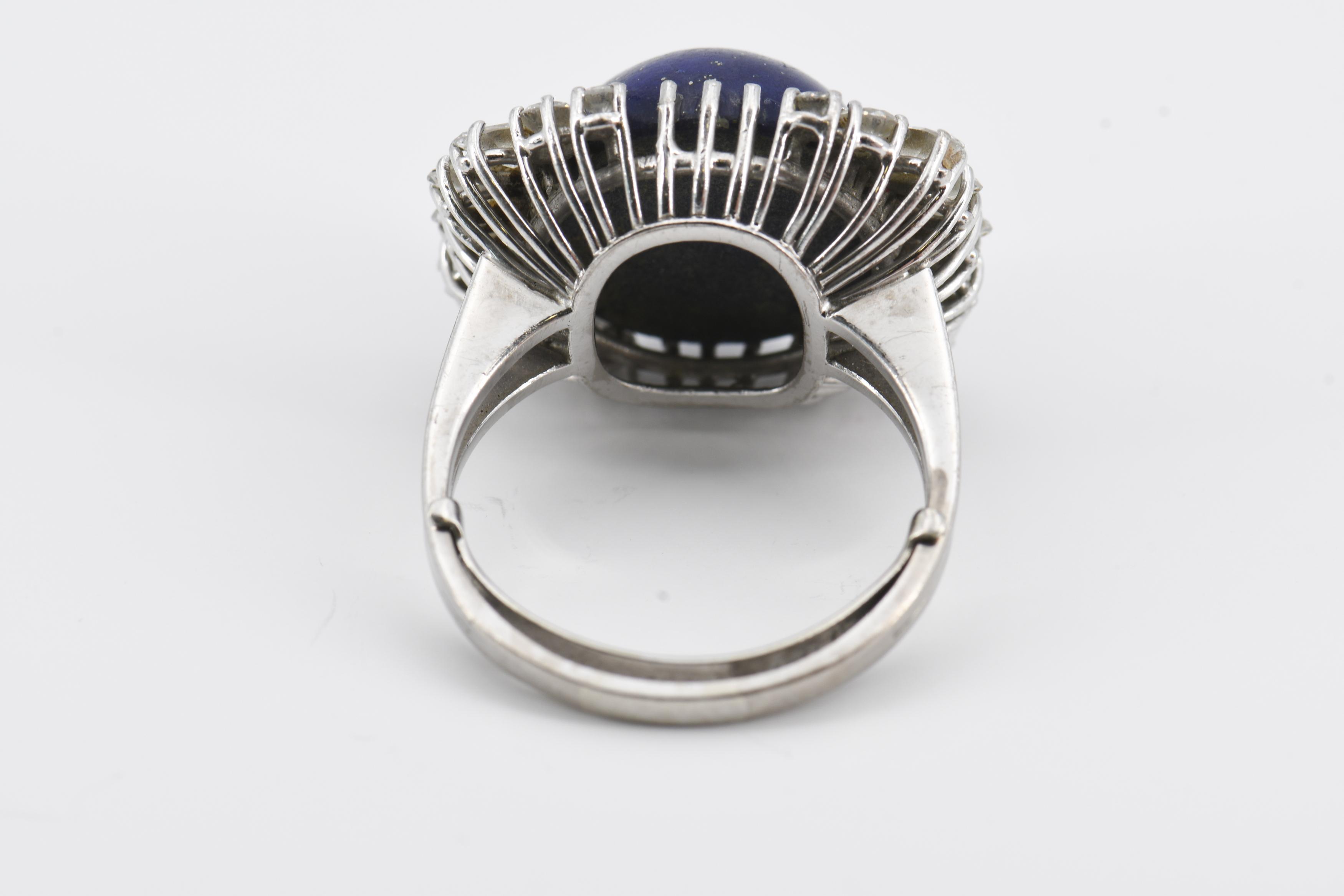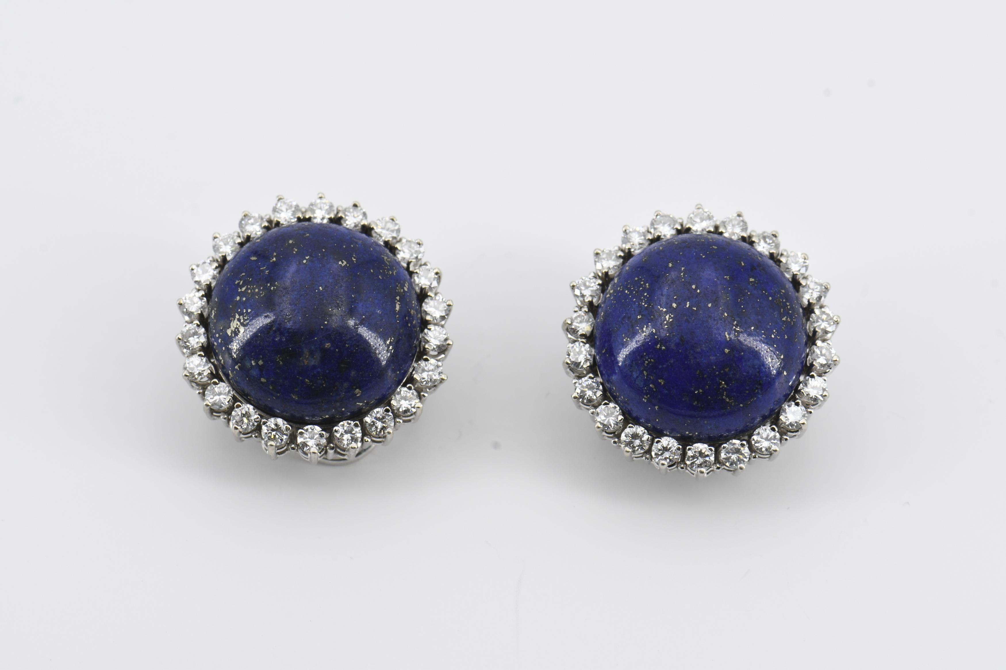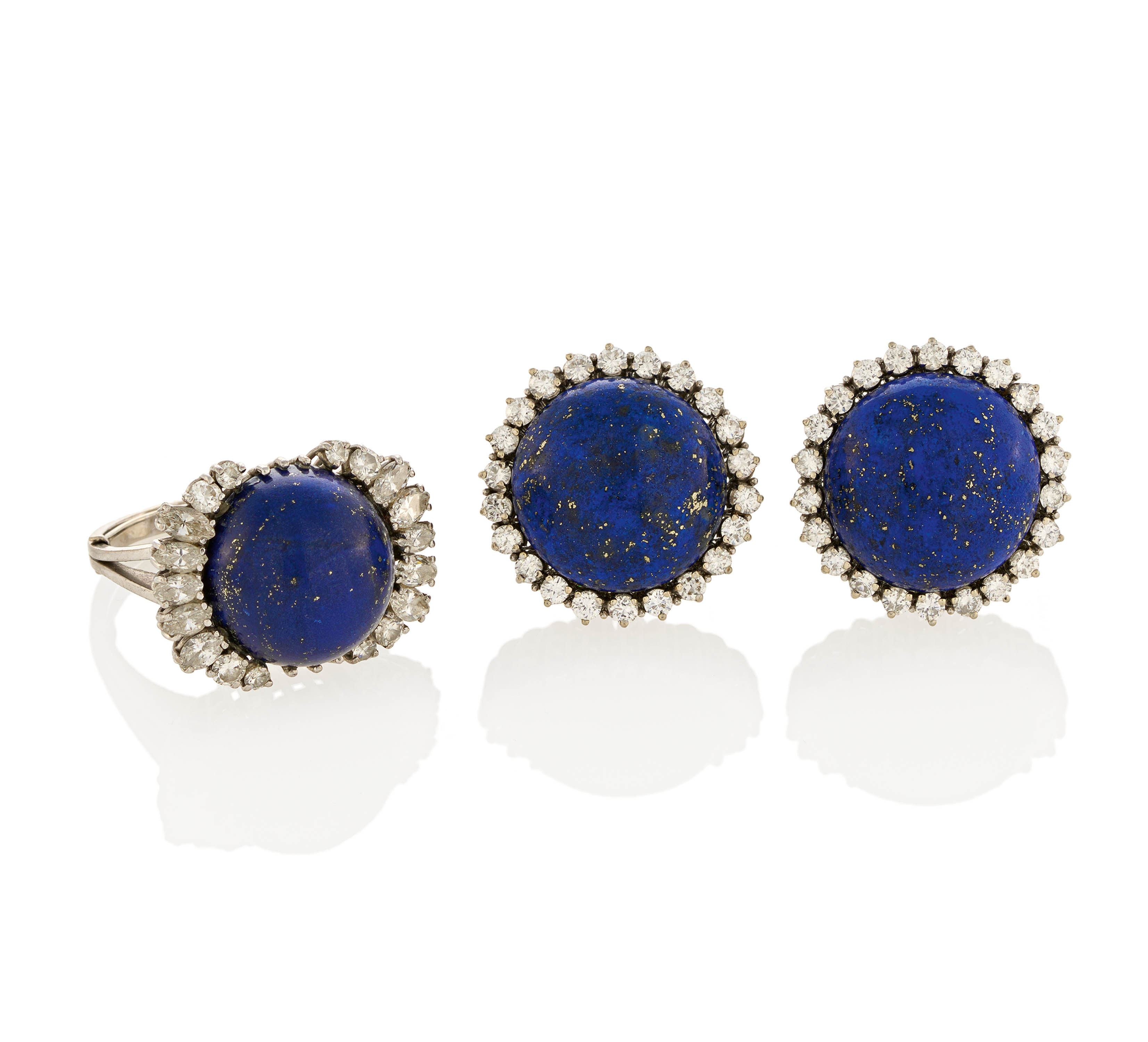 LAPISLAZULI-DIAMANT-SET: RING UND OHRCLIPS.