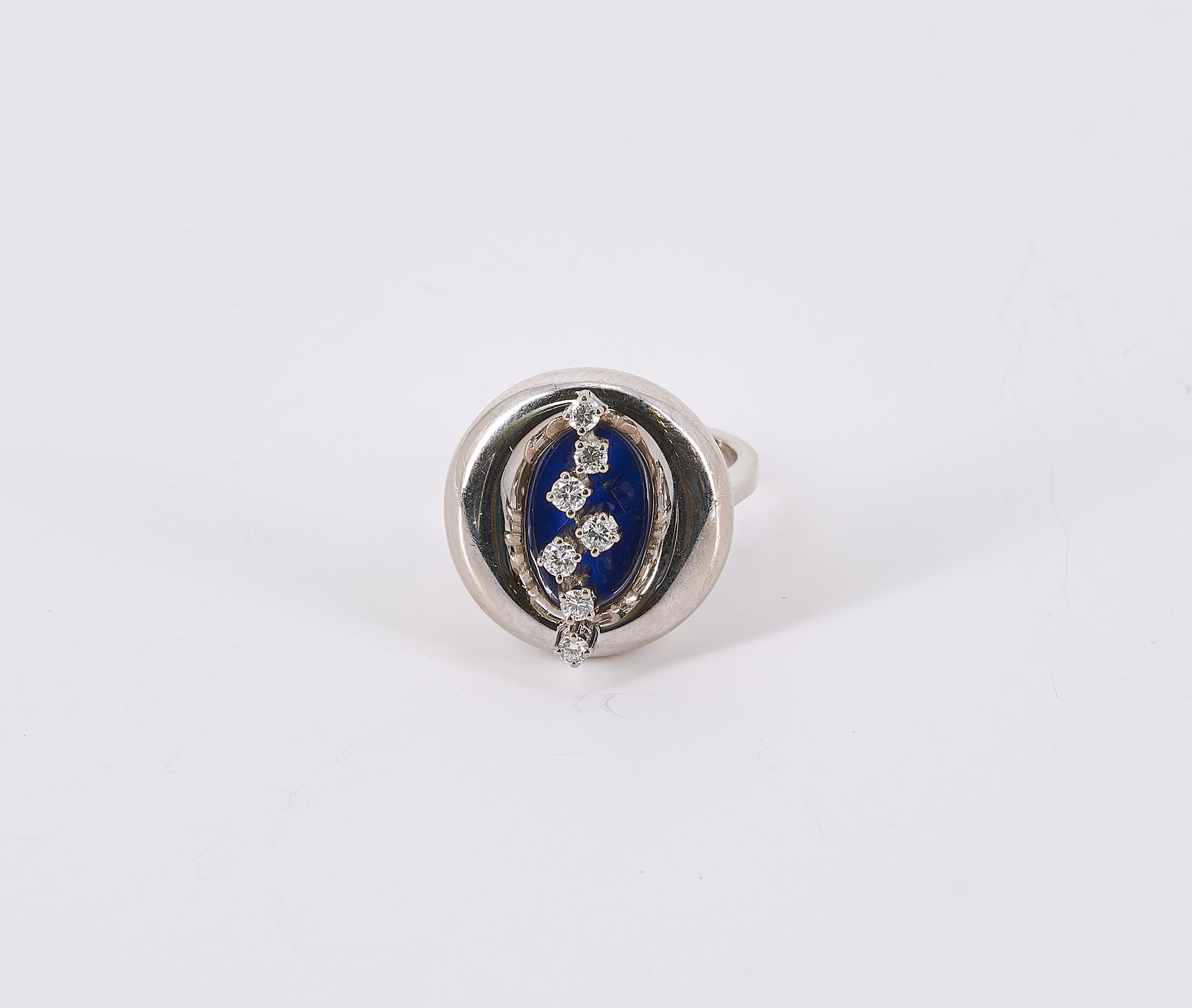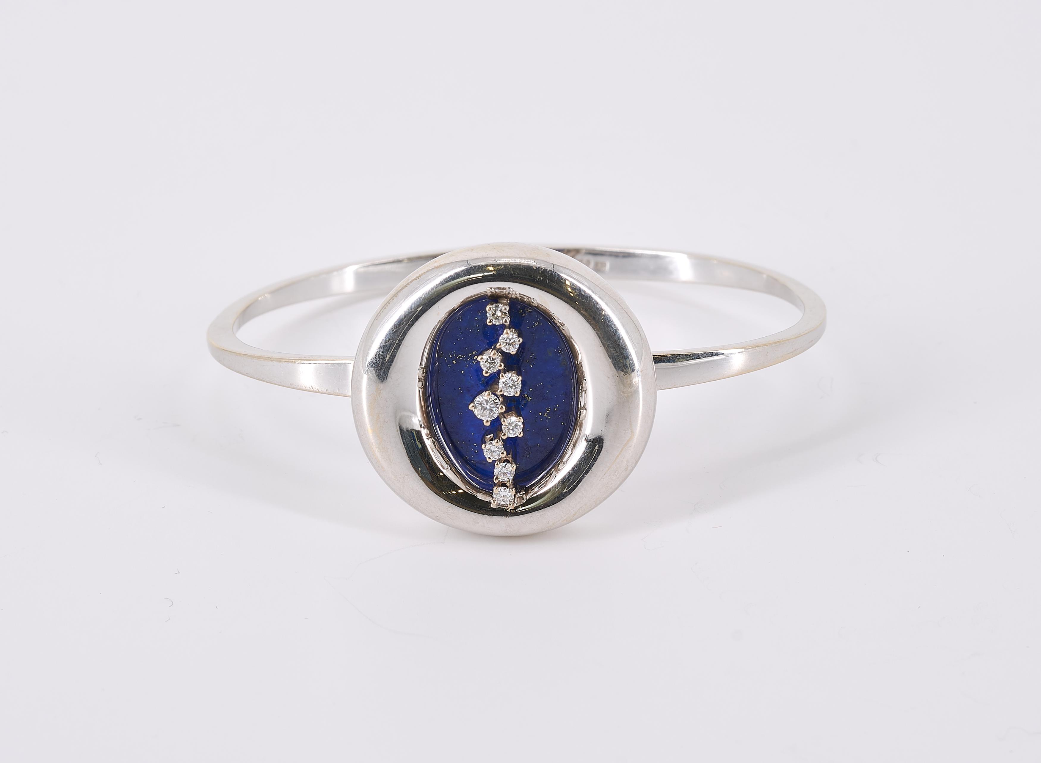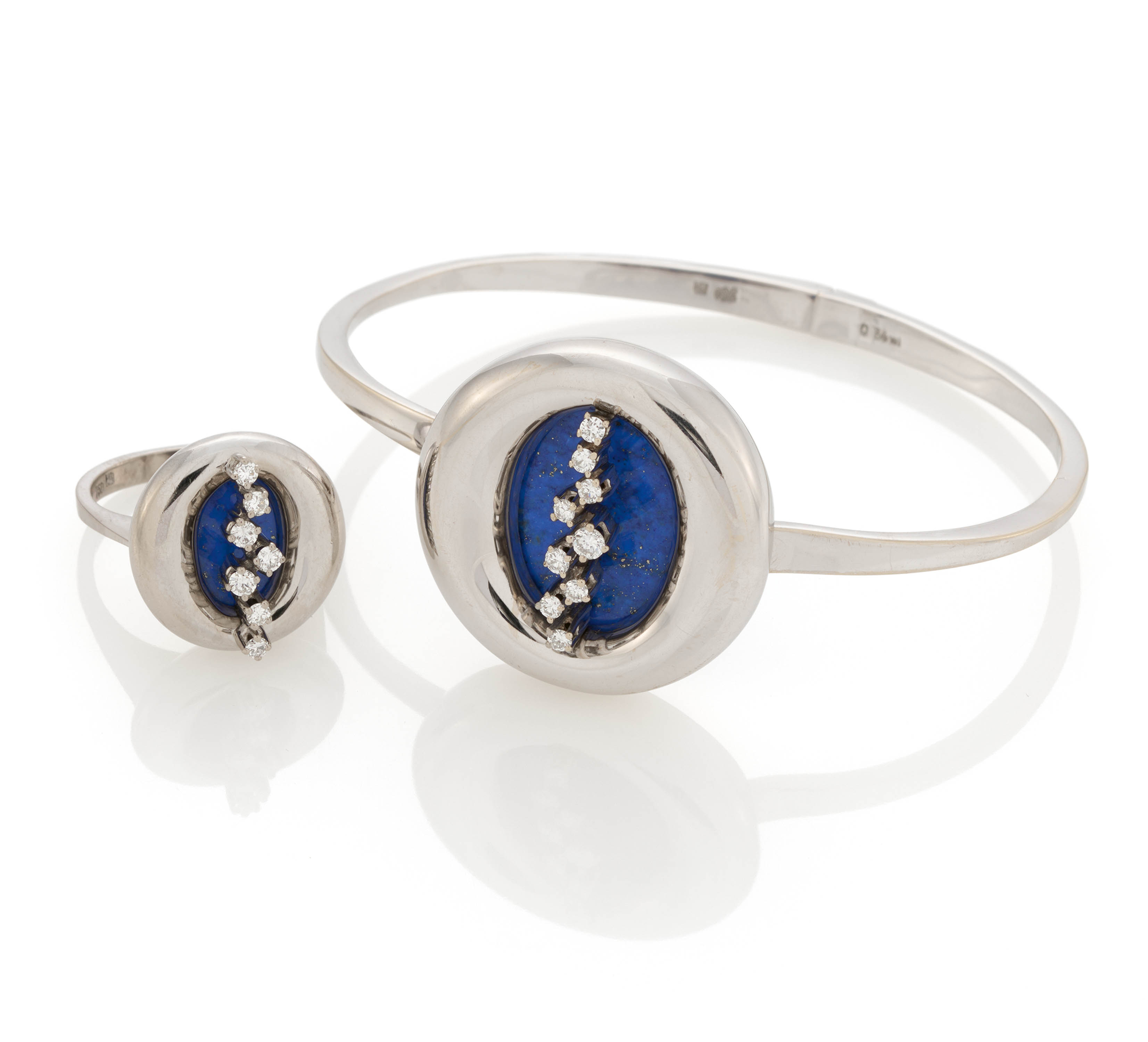 LAPISLAZULI-DIAMANT-SET: ARMREIF UND RING.