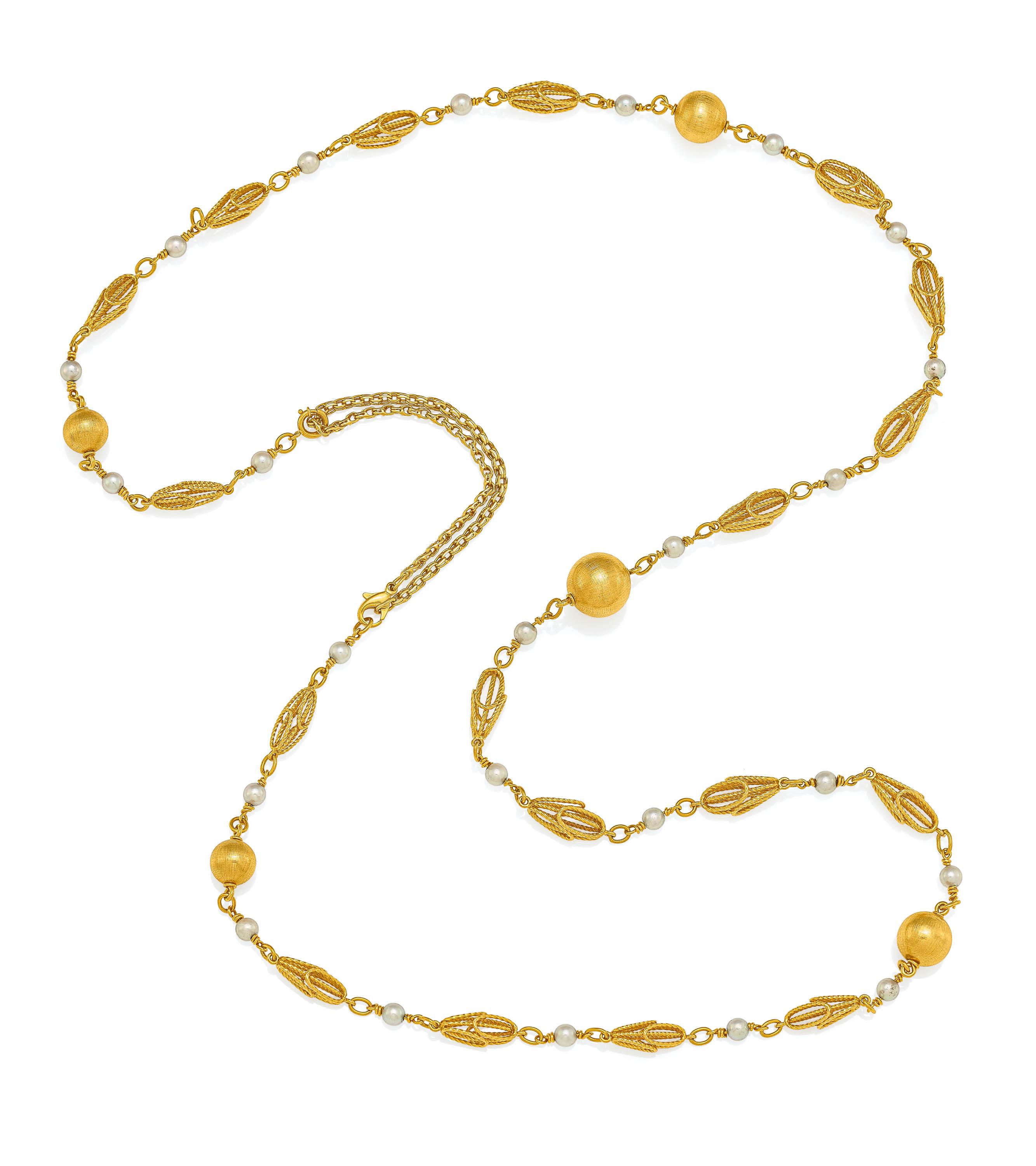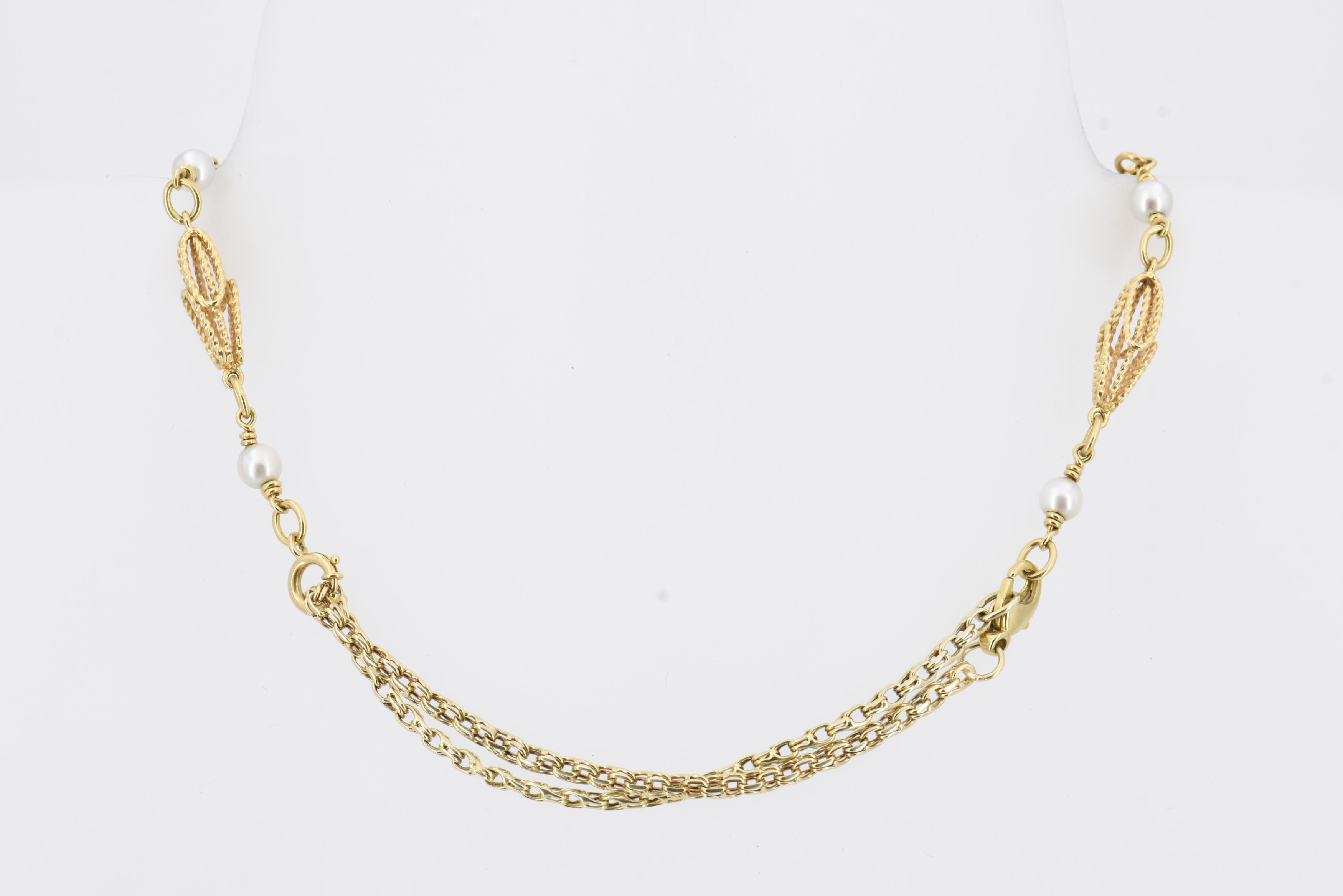 Org. Substanzen: 24 kleine Zuchtperlen Ø ca. 5,4 mm, crème-anthrazitfarben.