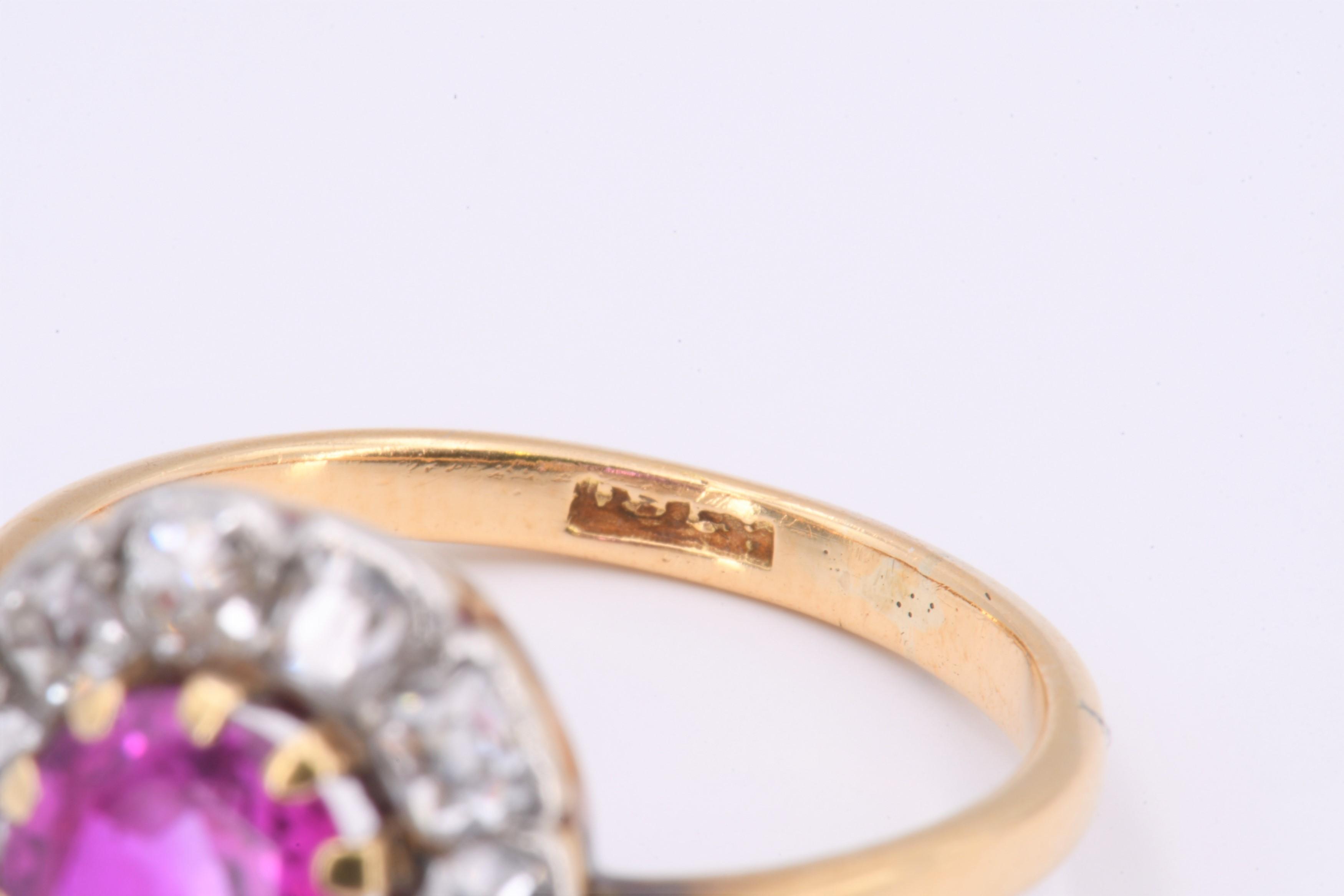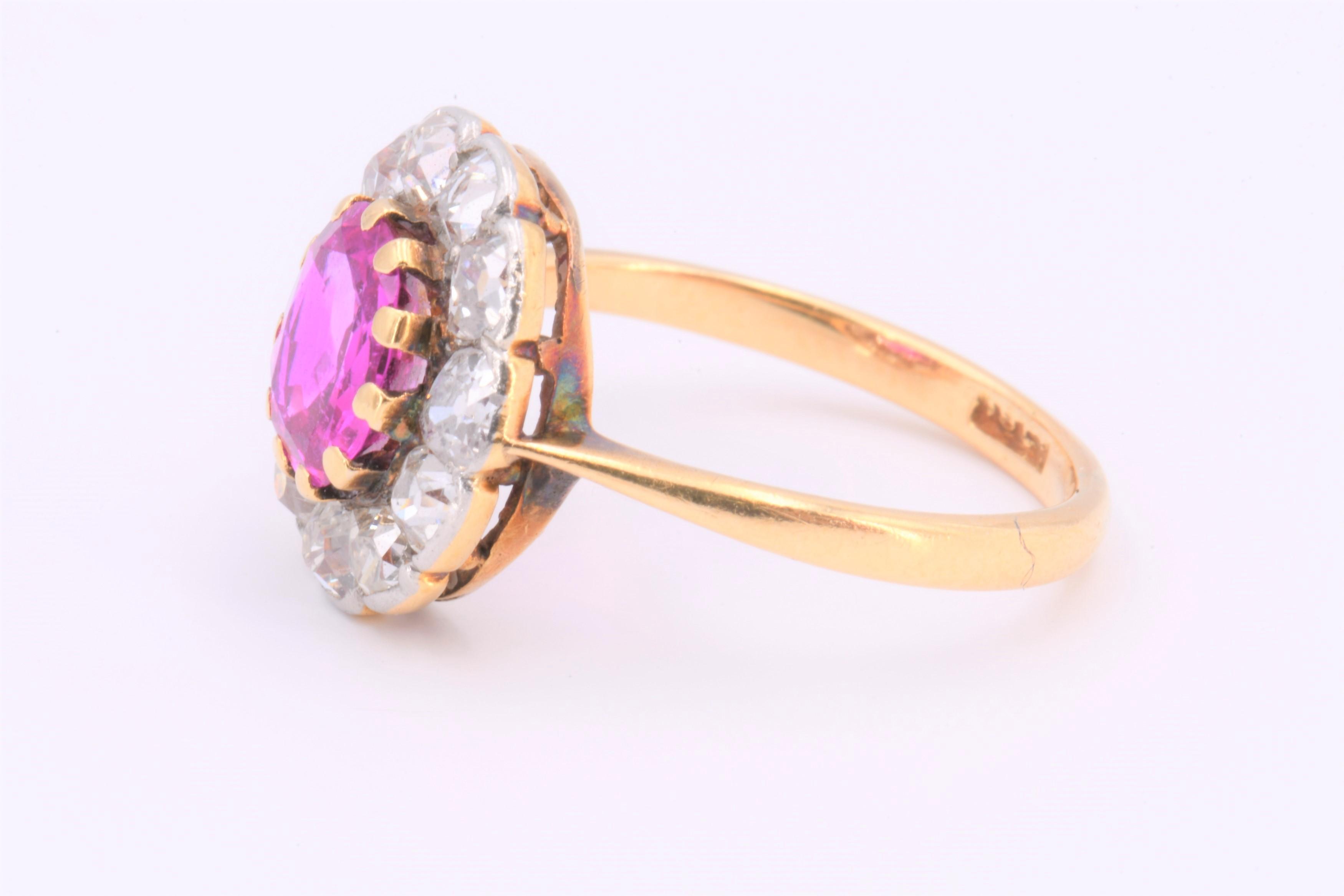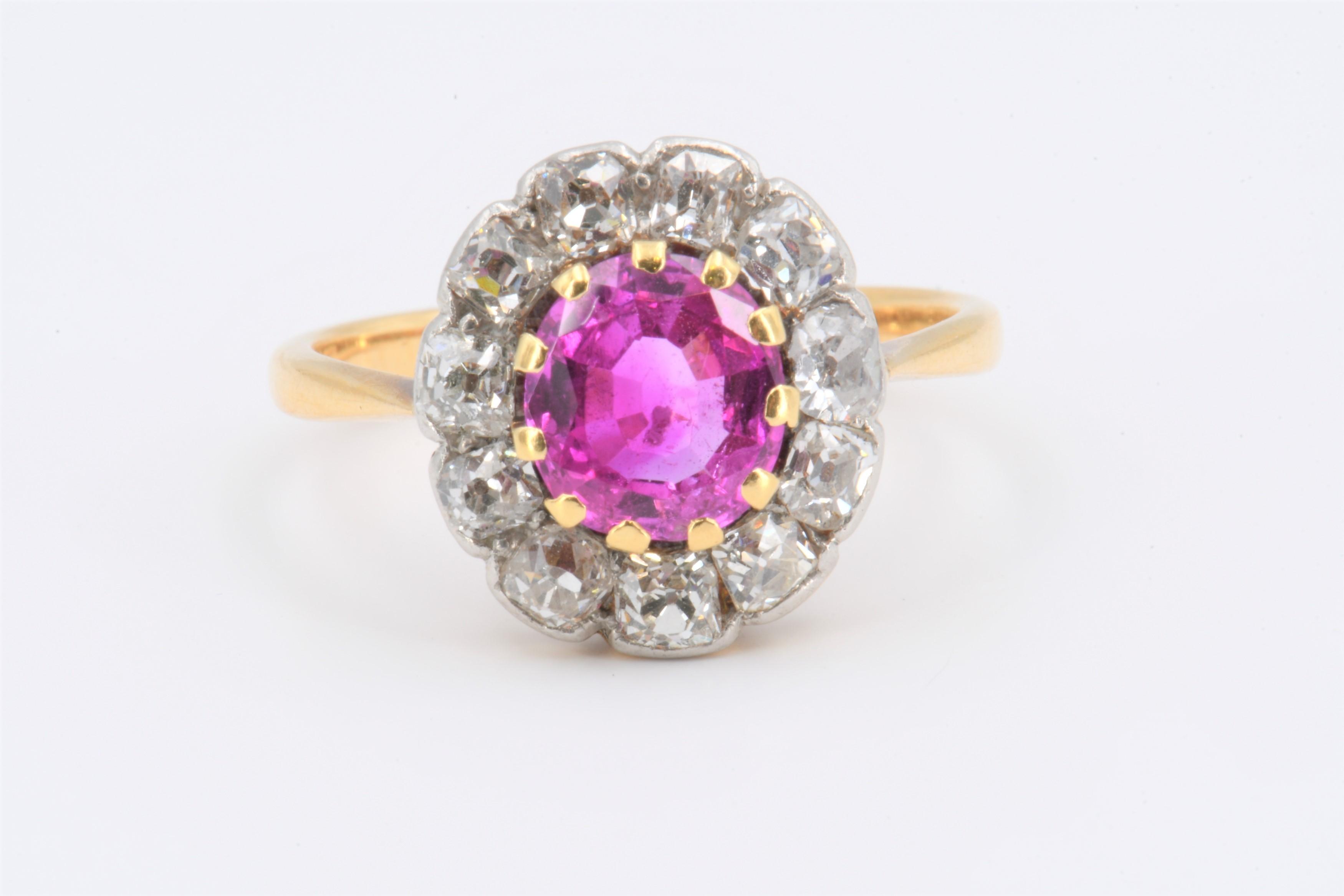Edelsteine: 1 ovaler, facettierter Korund, wohl pinker Saphir, ca. 1,2 ct., intensive Farbe.