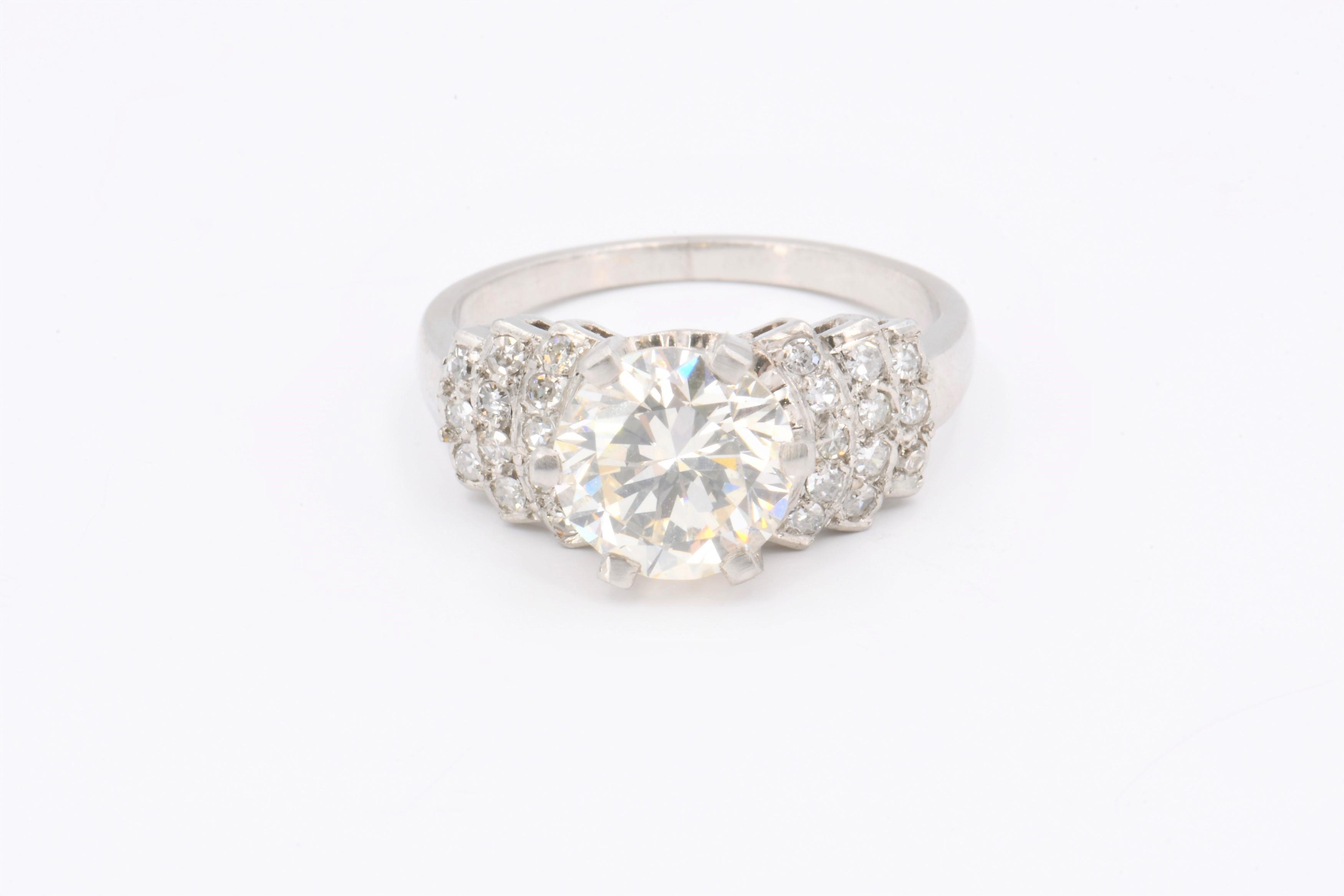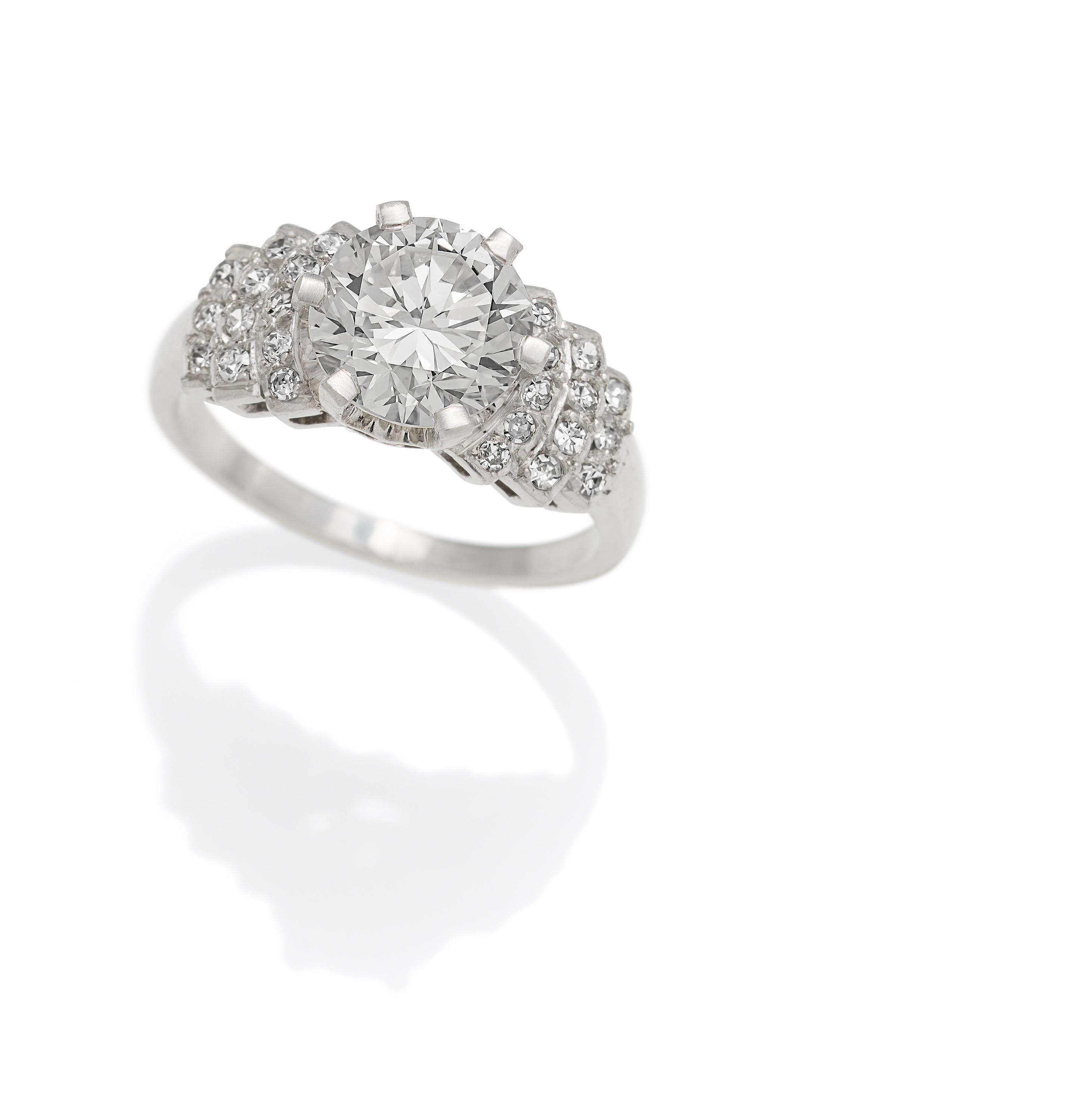 Diamanten: 1 Brillant ca. 2,2 ct., H-I/VS., 24 Diamanten im 8/8-Schliff zus. ca. 0,1 ct., F-G/VS-SI.