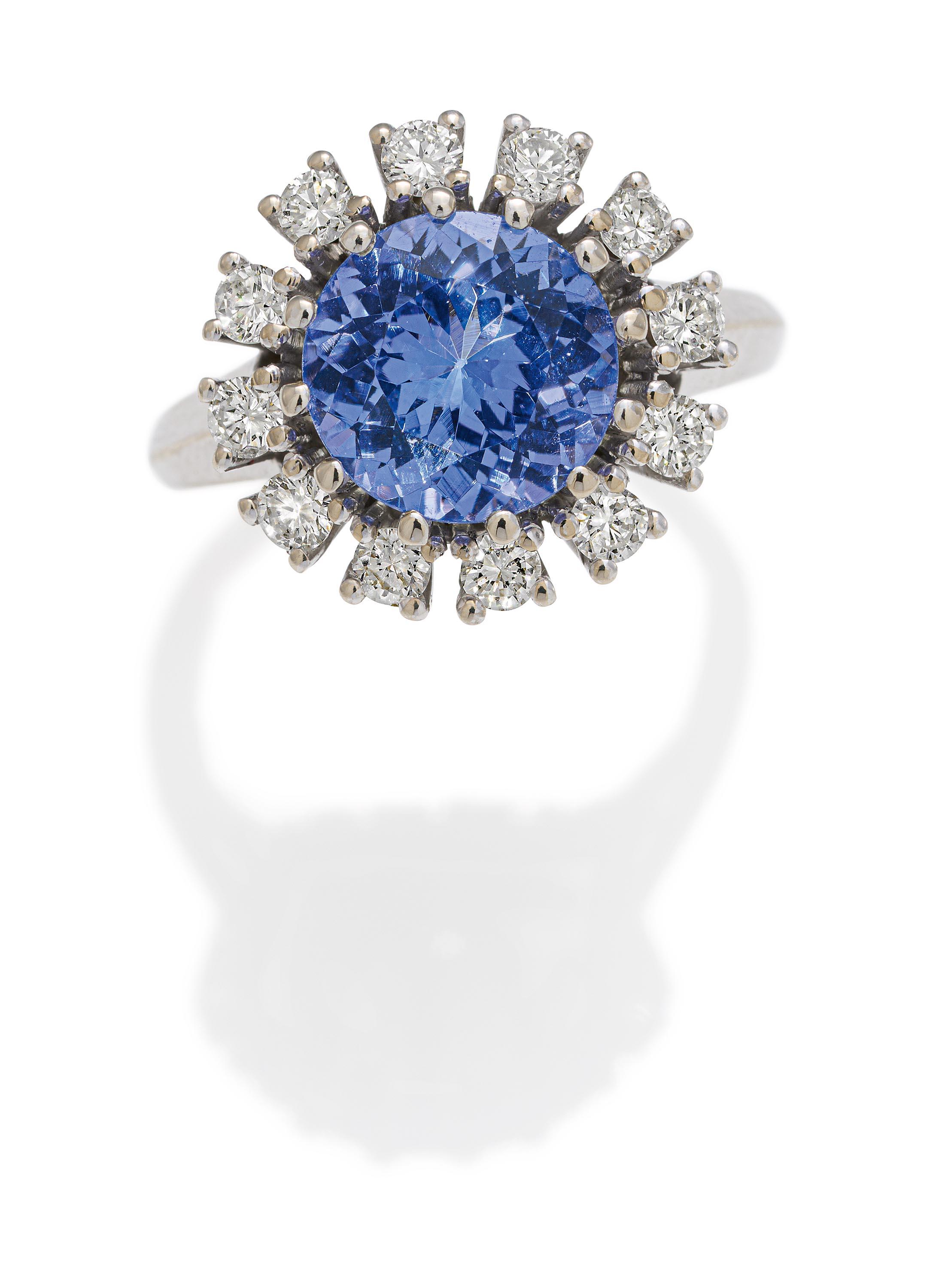 Edelsteine: 1 runder, facettierter Tansanit Ø ca. 8,8 mm, Höhe ca. 4,8 mm.
