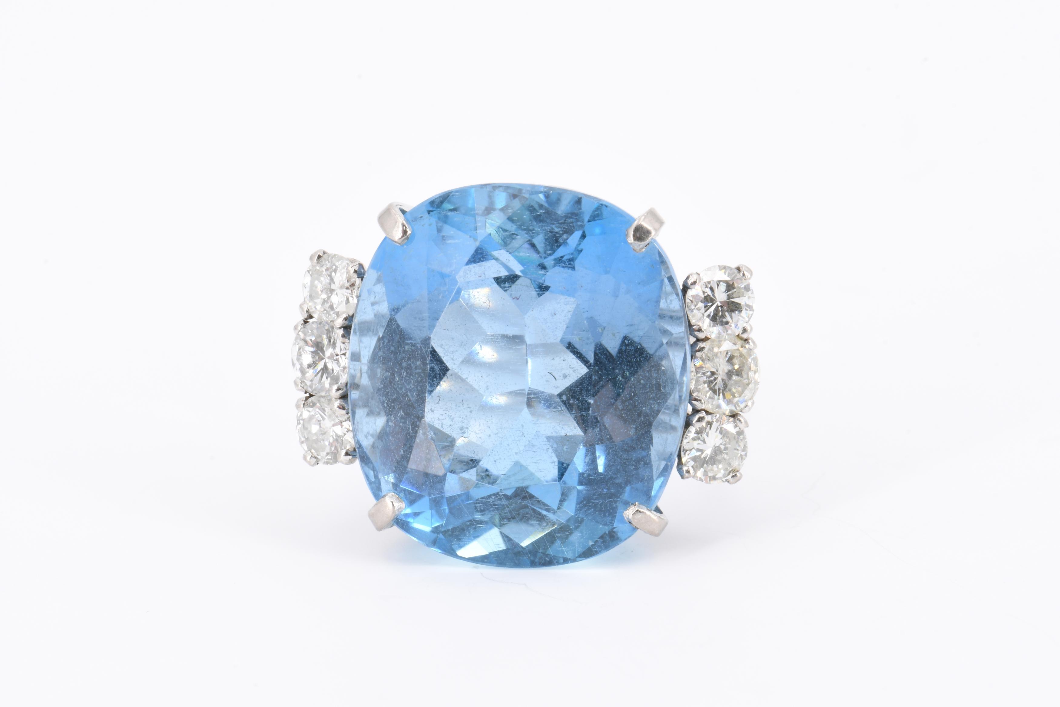 Edelsteine: 1 Aquamarin im Kissen-Schliff ca. 27,4 ct., sehr intensives schönes Blau.