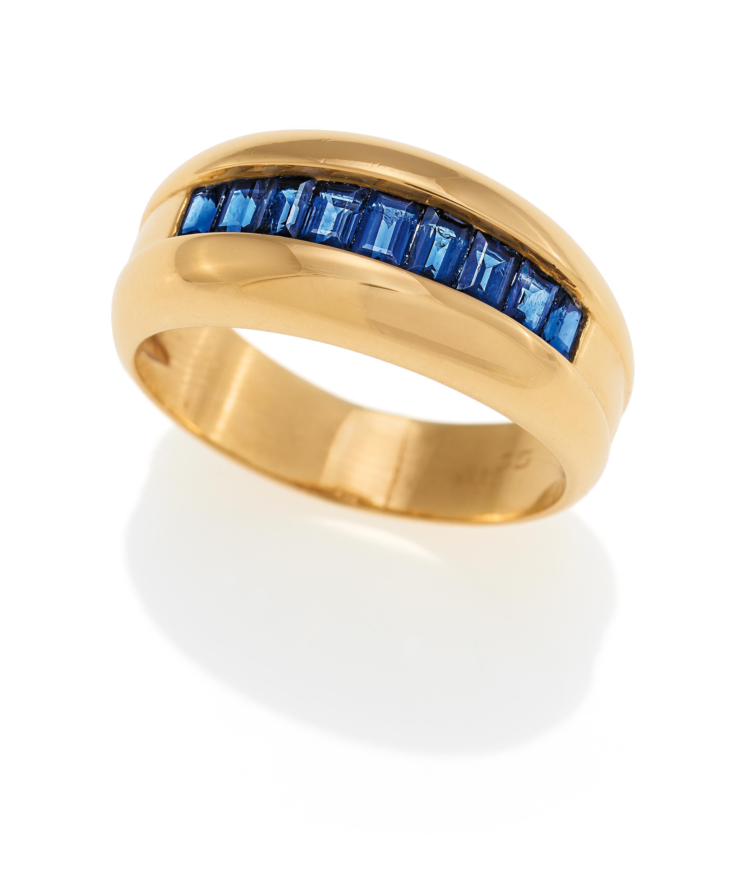 Edelsteine: 9 Saphire im Baguette-Schliff zus. ca. 1,1 ct.