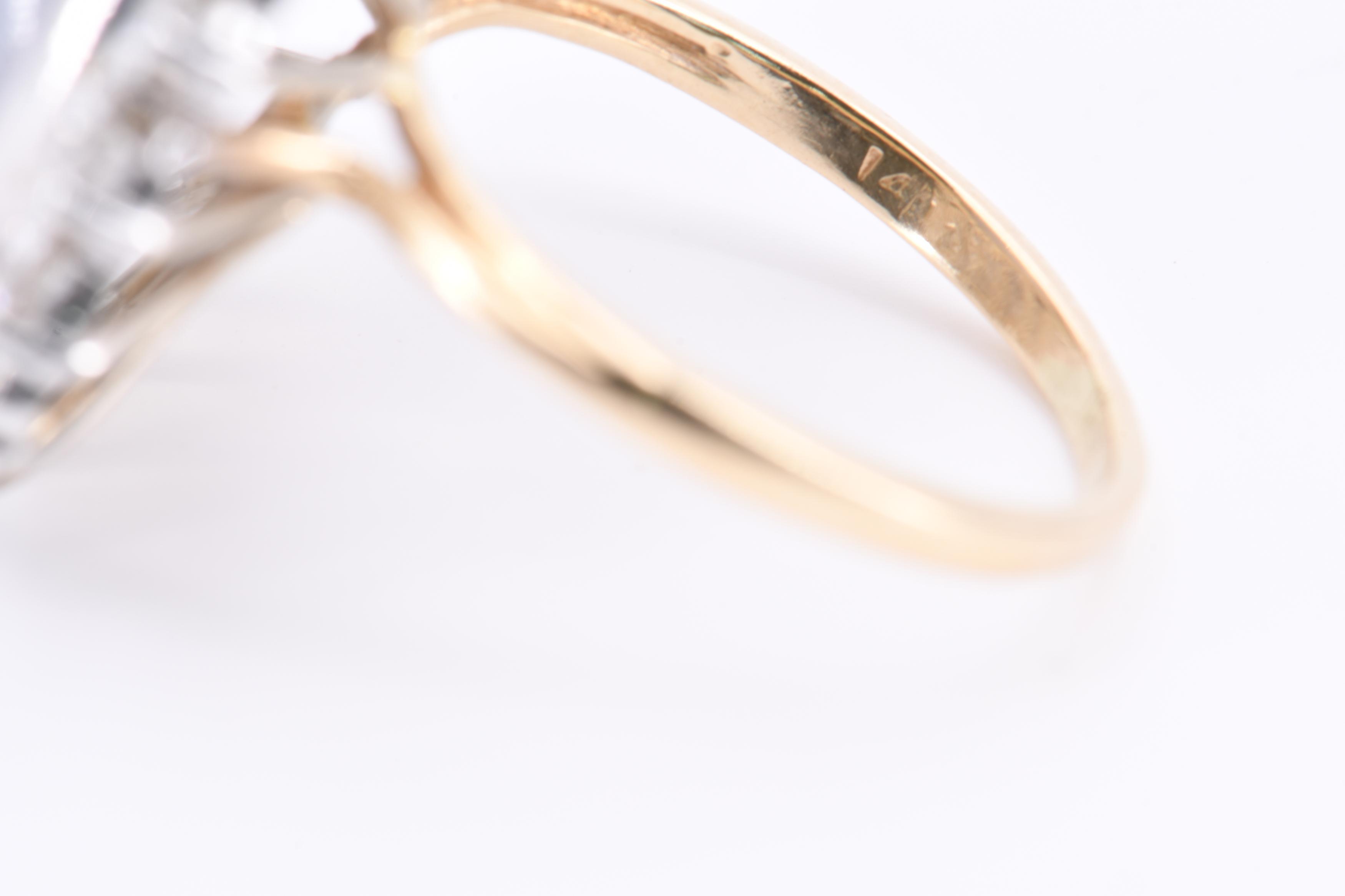 Material: 585/- Gelbgold, Platin, Punze, getestet.