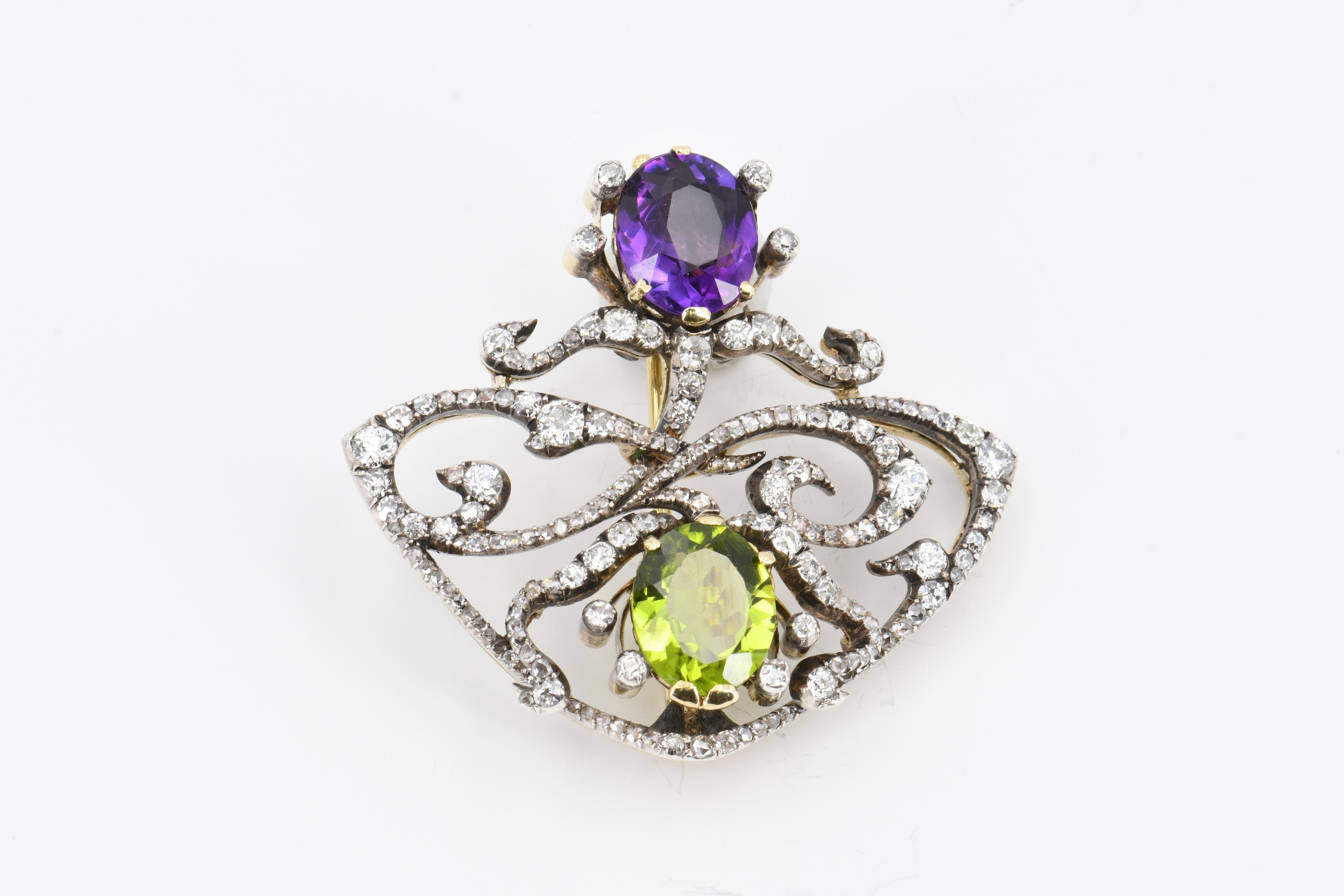 Edelsteine: 1 ovaler, facettierter Amethyst ca. 3,6 ct., 1 ovaler, facettierter Peridot ca. 3,9 ct.