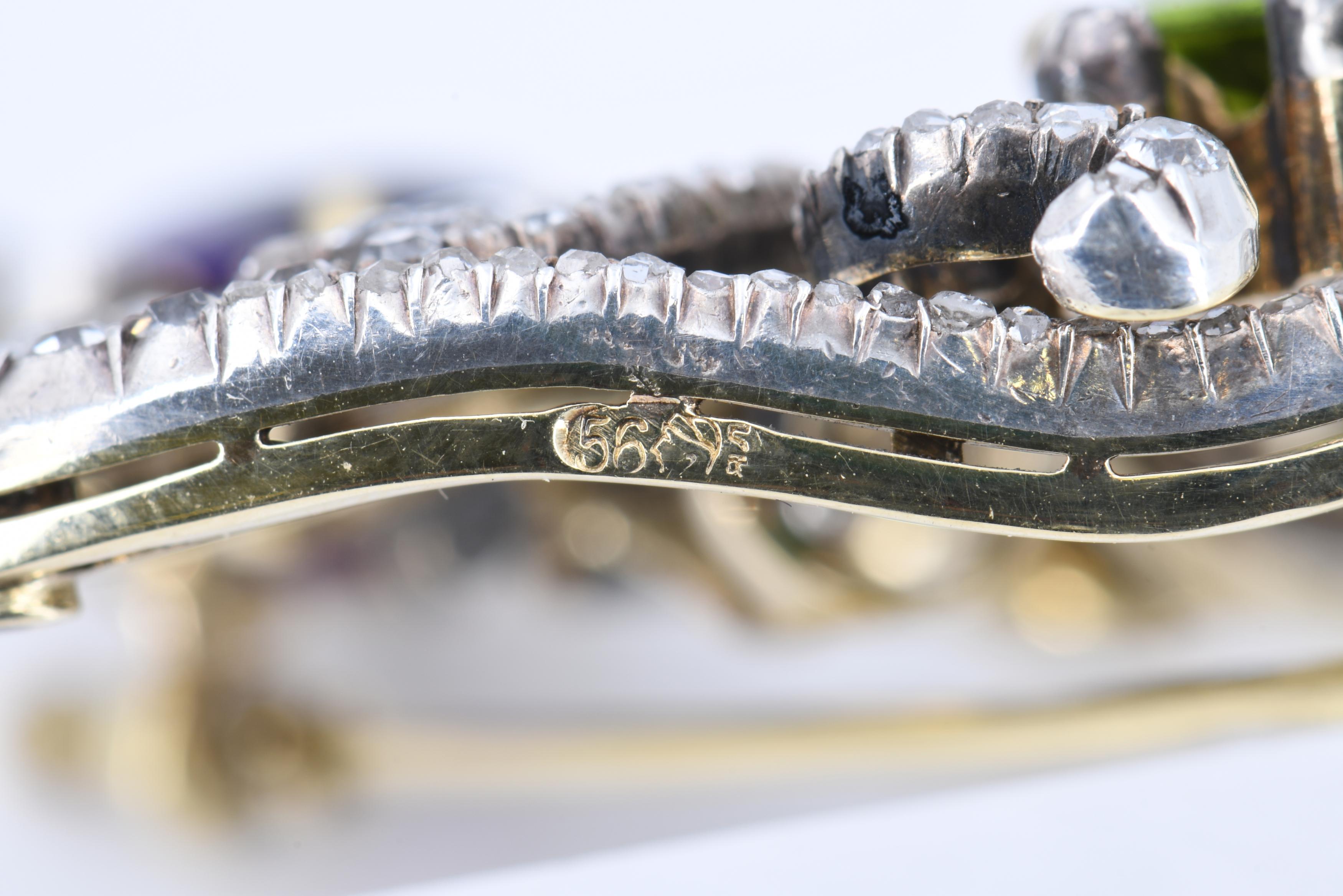 Diamanten: Ca. 58 Diamanten im Alt-Schliff zus. ca. 1,5 ct., M-O/SI-P, ca. 108 Diamanten im Rosen-Schliff.