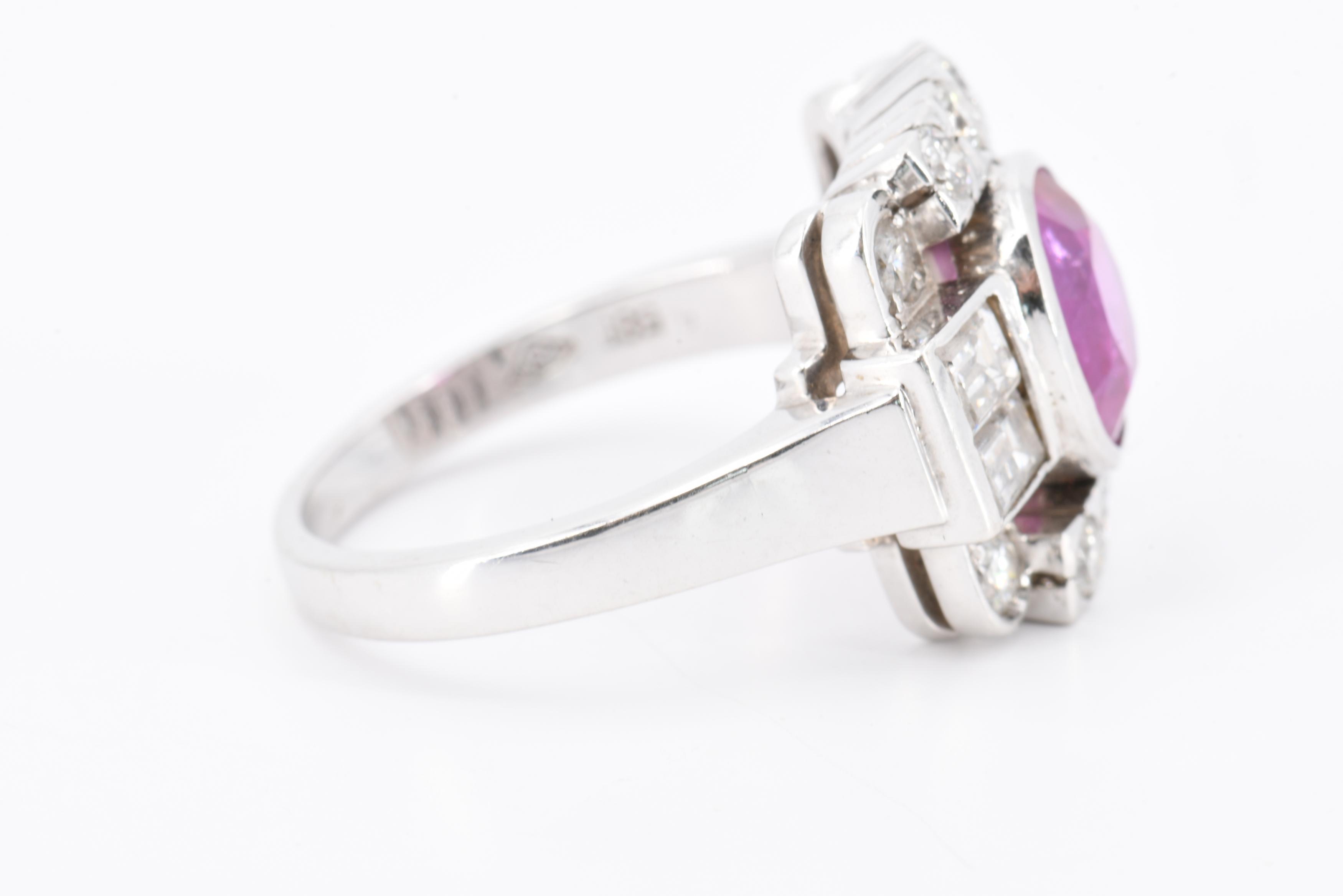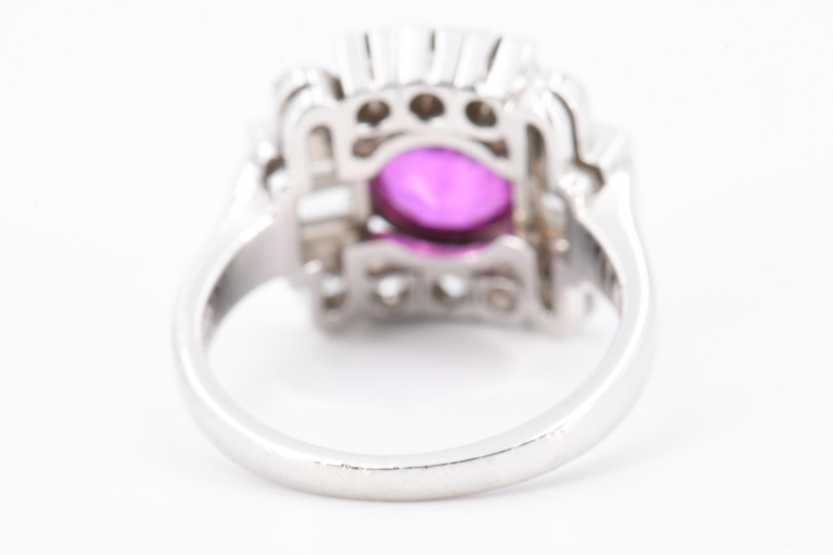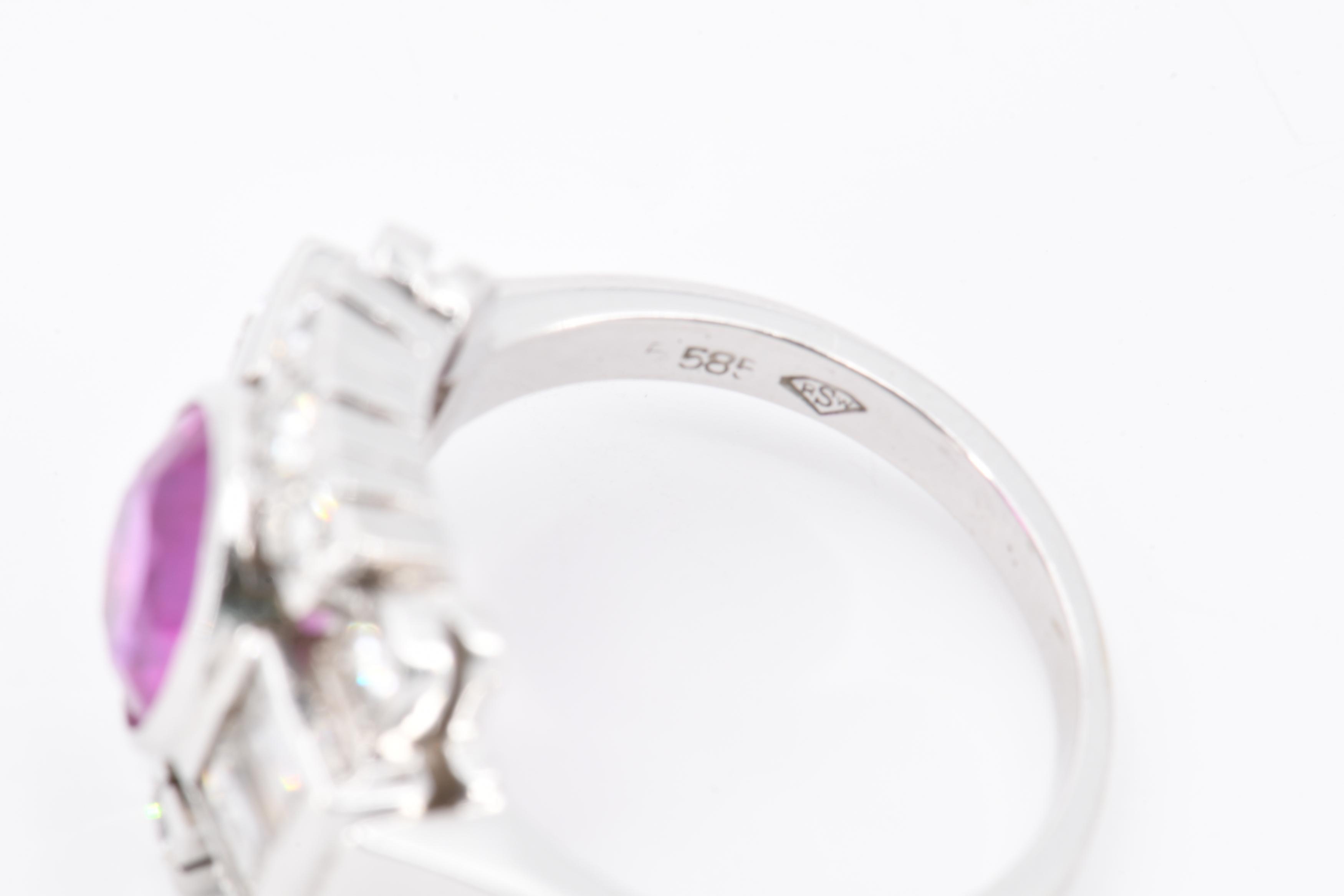 Edelsteine: 1 ovaler, facettierter Saphir im Stern-/Treppen-Schliff, 7,90 x 7,20 x 5,44 mm, Herkunft: Burma, keine Hinweise auf Hitzebehandlung, sehr schönes intensives Pink.