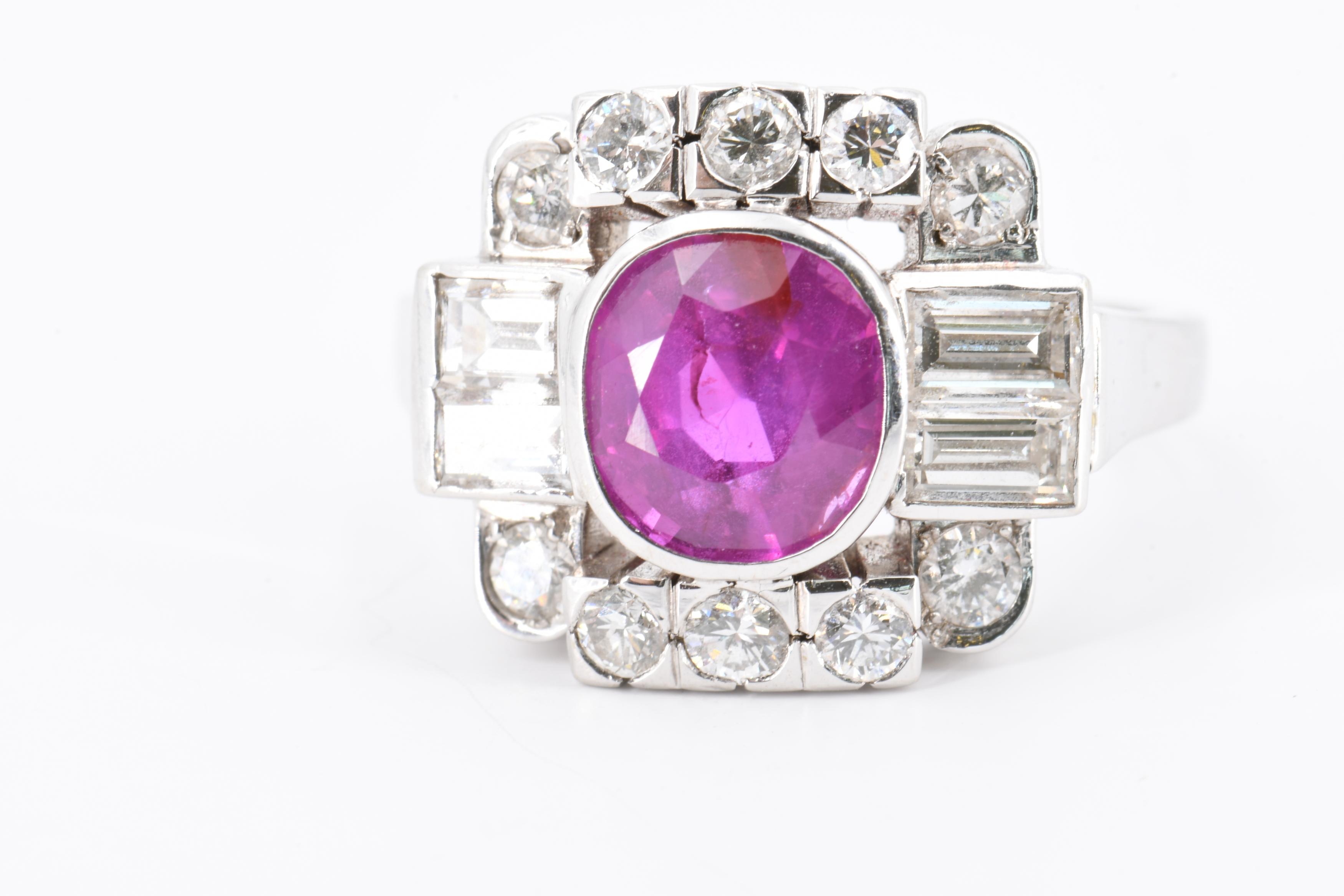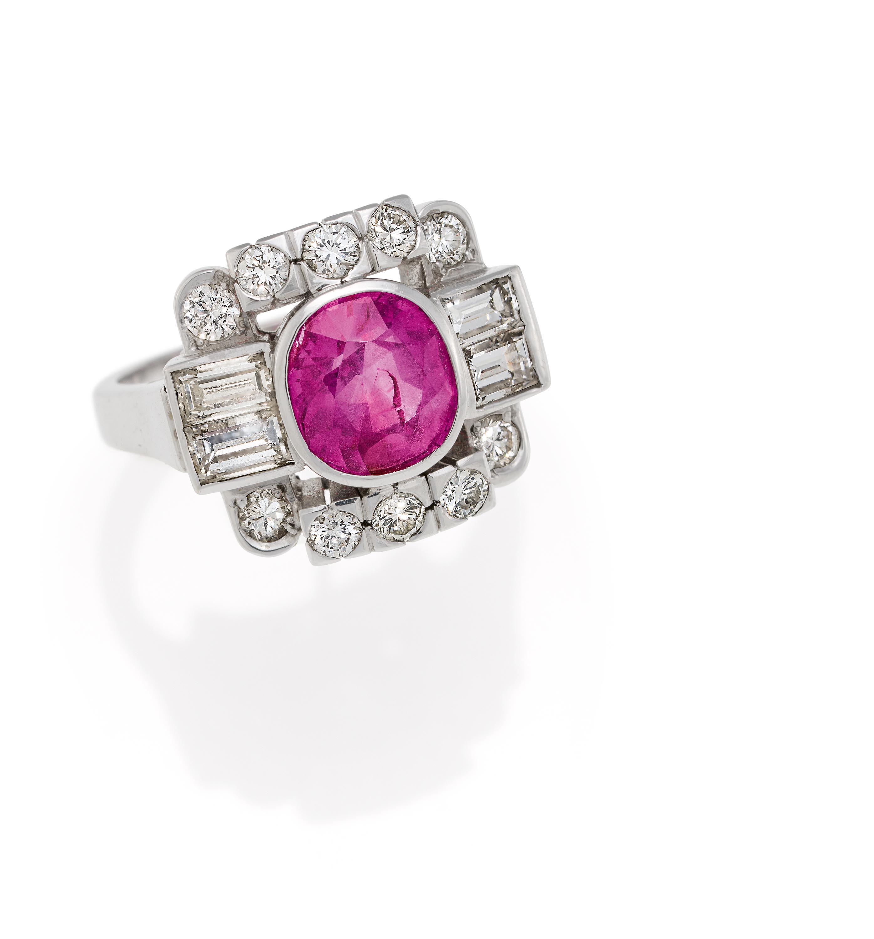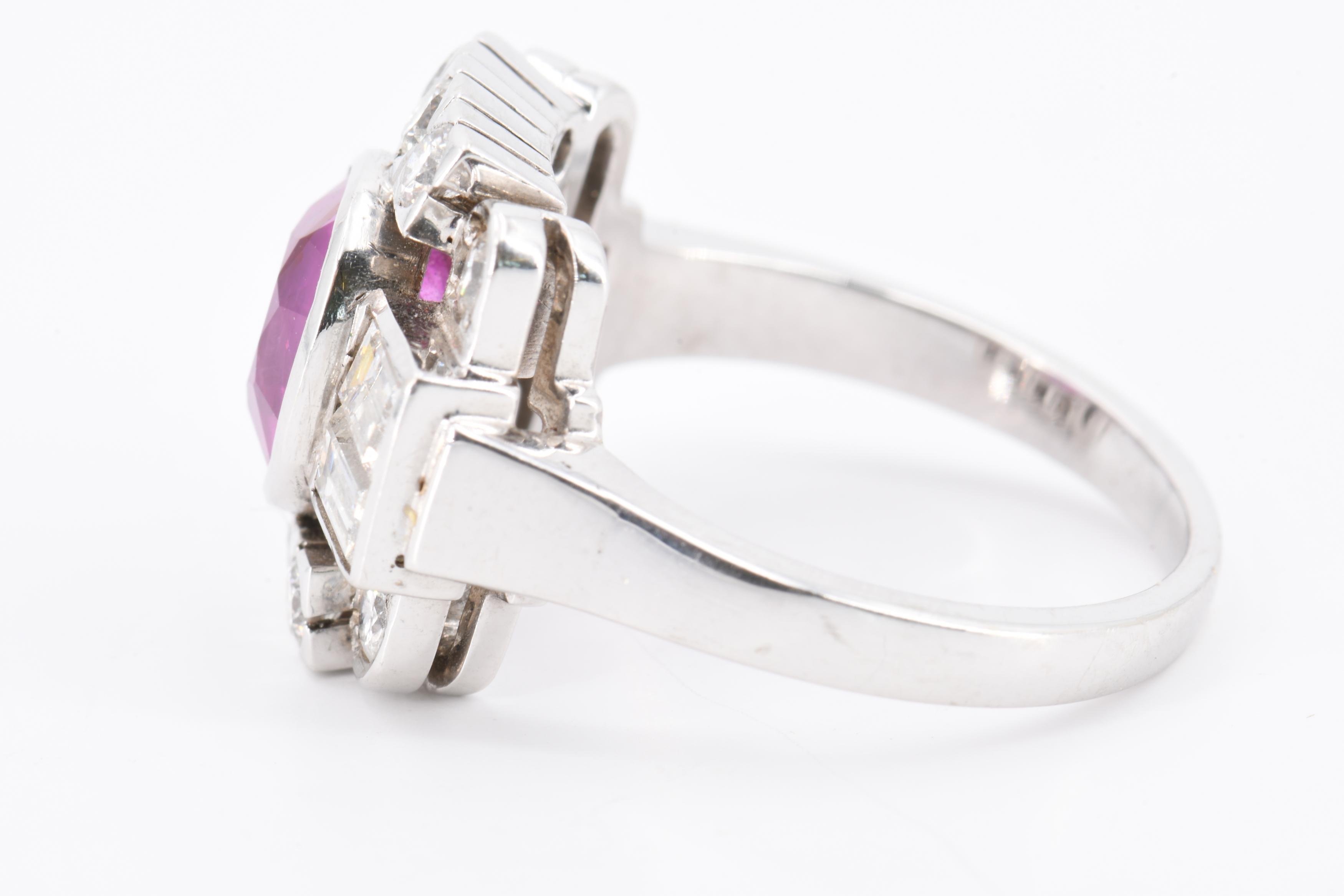 Edelsteine: 1 ovaler, facettierter Saphir im Stern-/Treppen-Schliff, 7,90 x 7,20 x 5,44 mm, Herkunft: Burma, keine Hinweise auf Hitzebehandlung, sehr schönes intensives Pink.