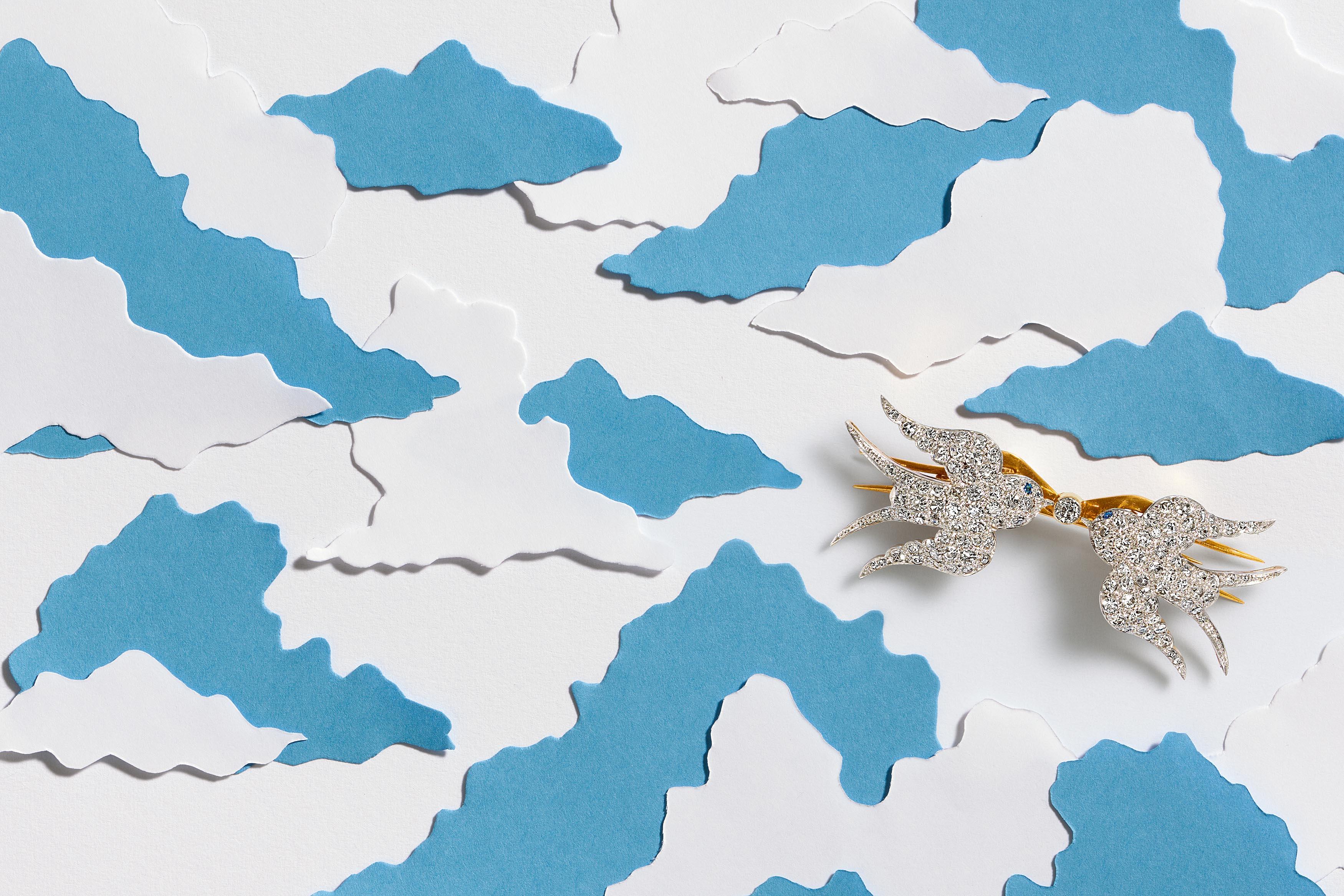 Diamanten: 10 Diamanten im Alt-Schliff zus. ca. 0,3 ct., 4 Diamanten im Karree-Schliff zus. ca. 0,7 ct., I-K/SI.