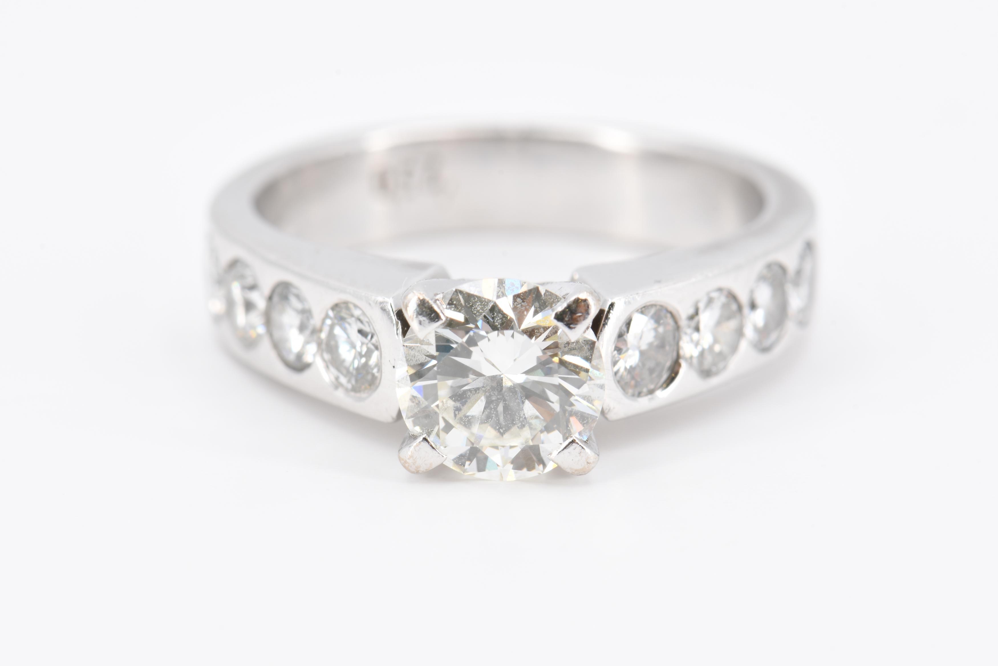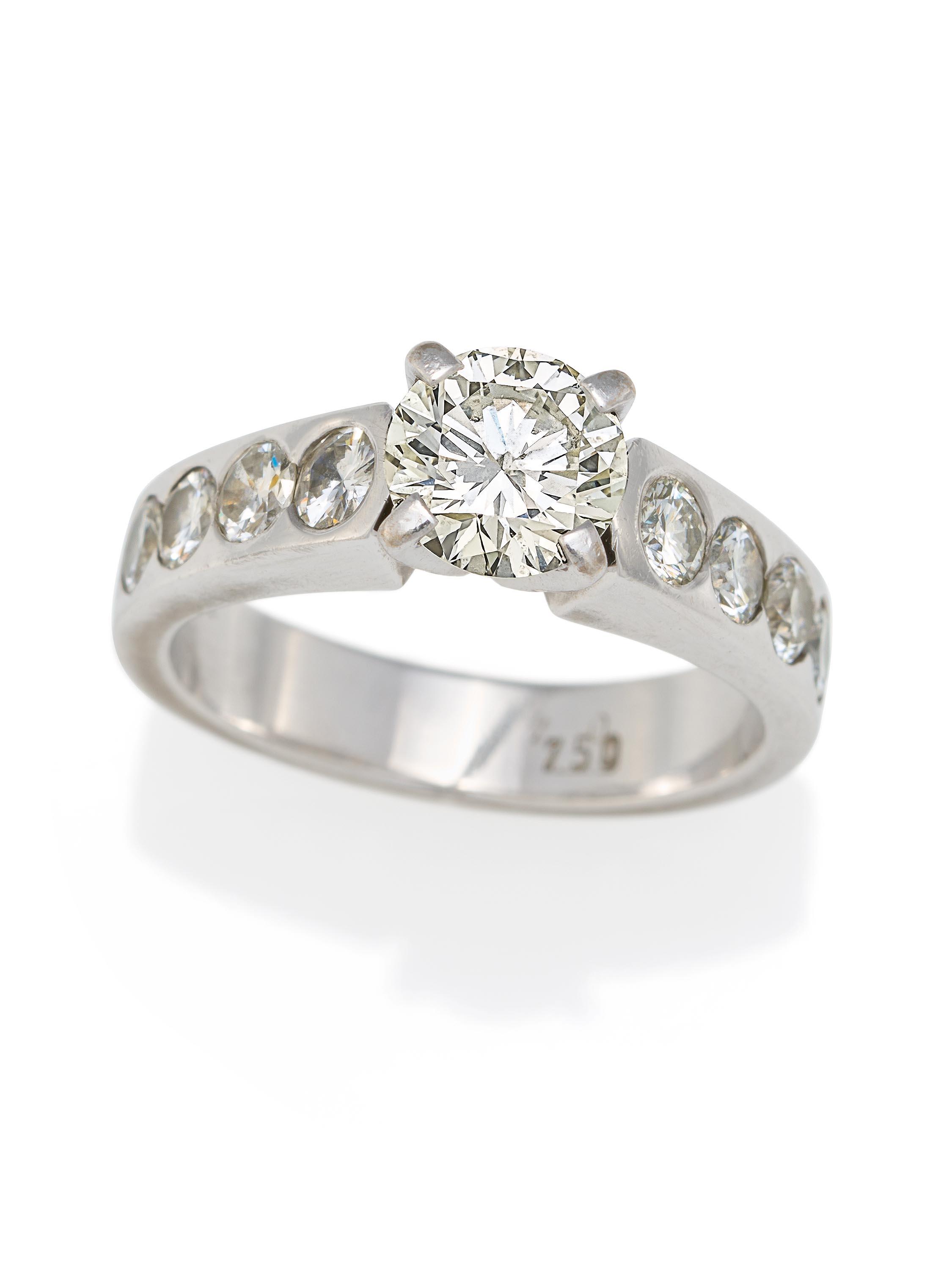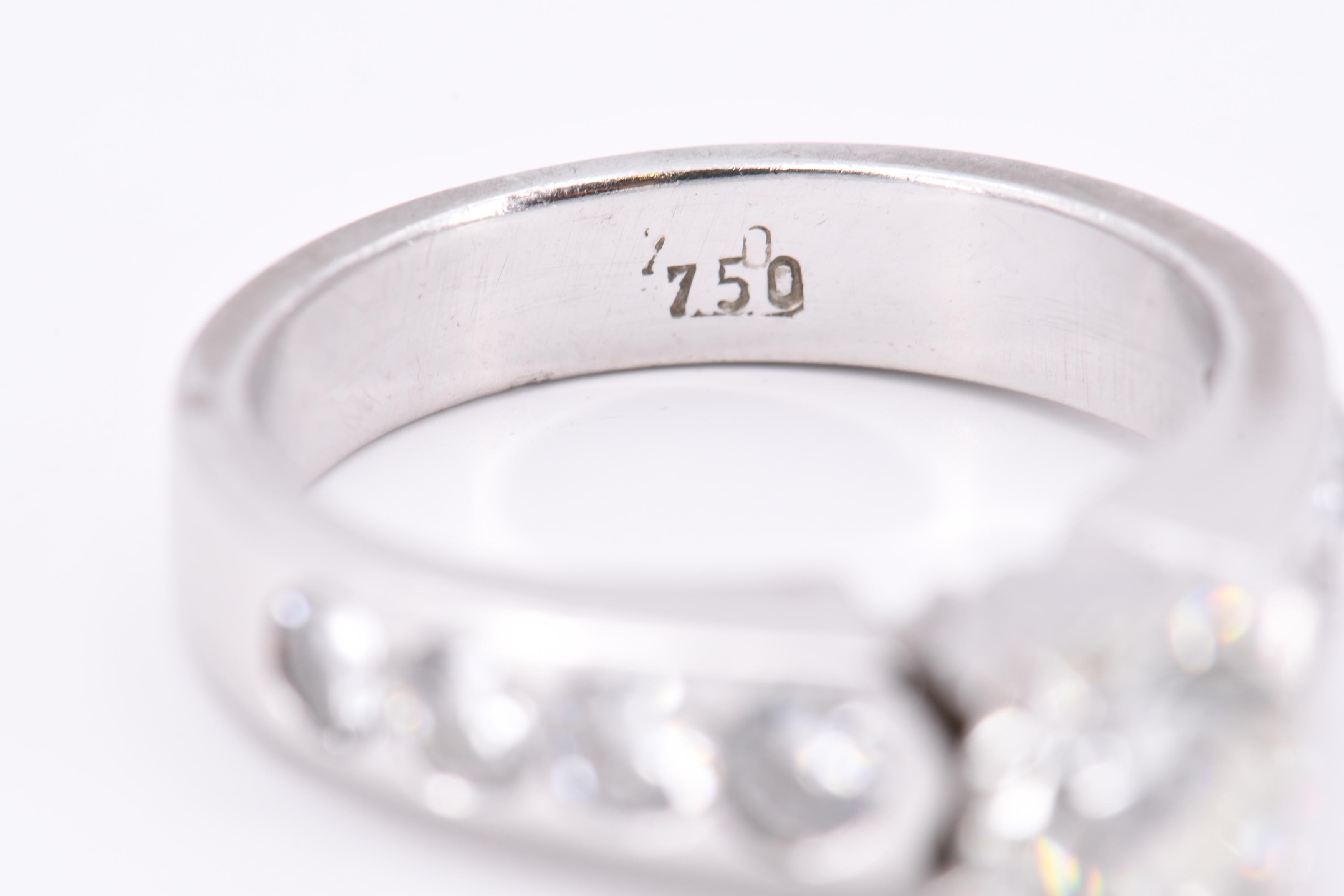 Diamanten: 1 Brillant Ø ca. 6,45 - 6,48 mm, rückseitig geschlossen gefasst, I/VS2, 8 Brillanten Ø ca. 2,6 mm.
