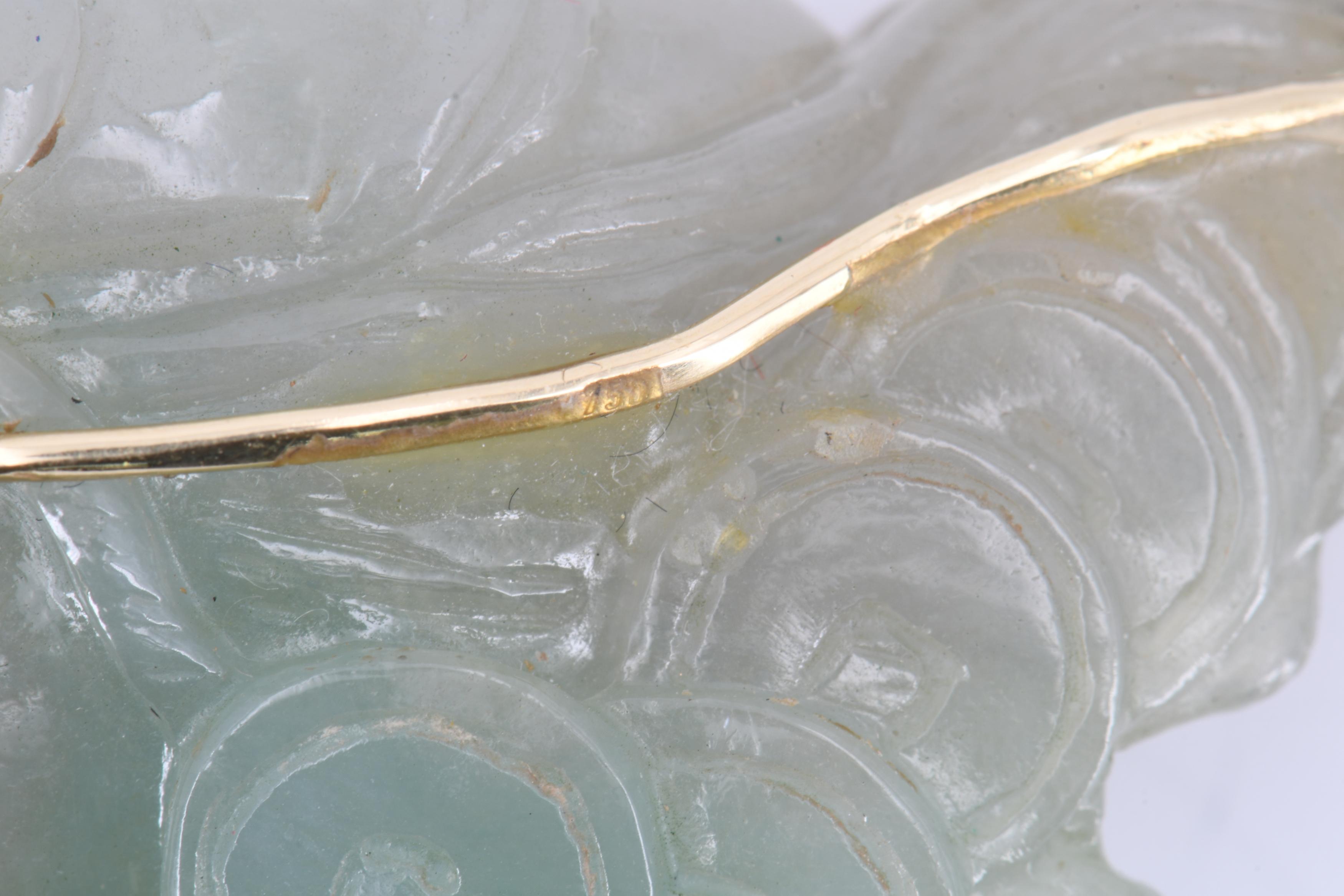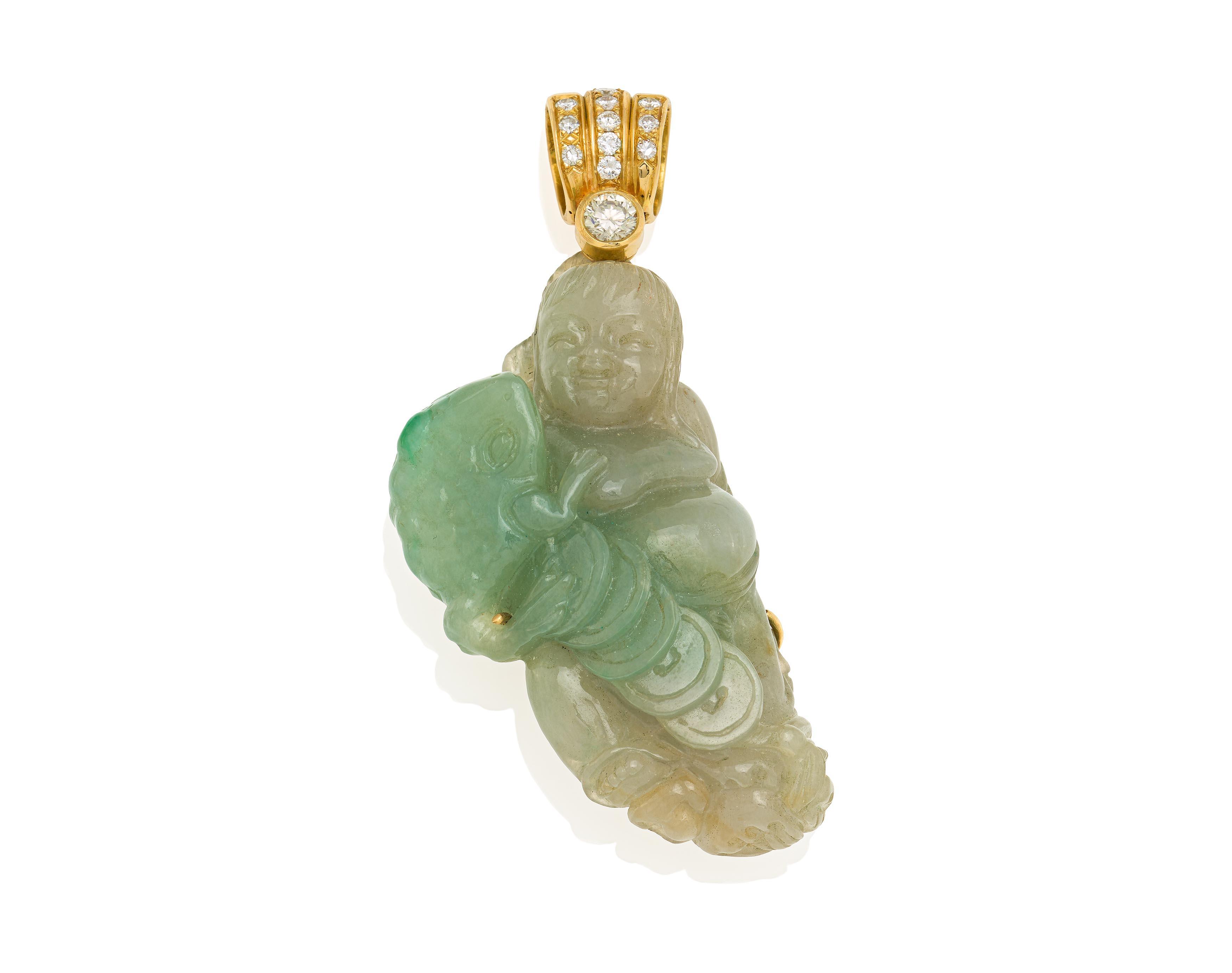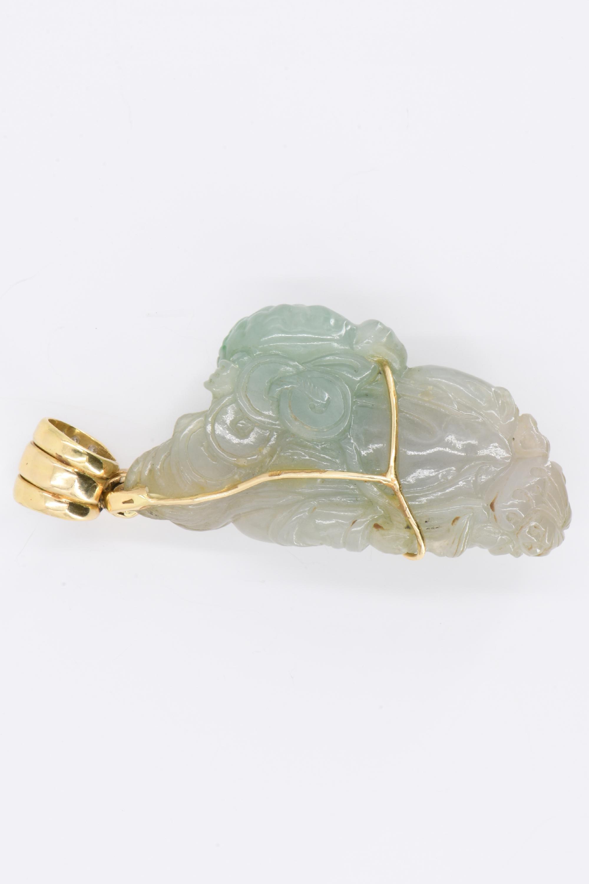 Edelsteine: 1 geschnitzter grüner Farbstein, wohl Jadeit, Buddha-Motiv.