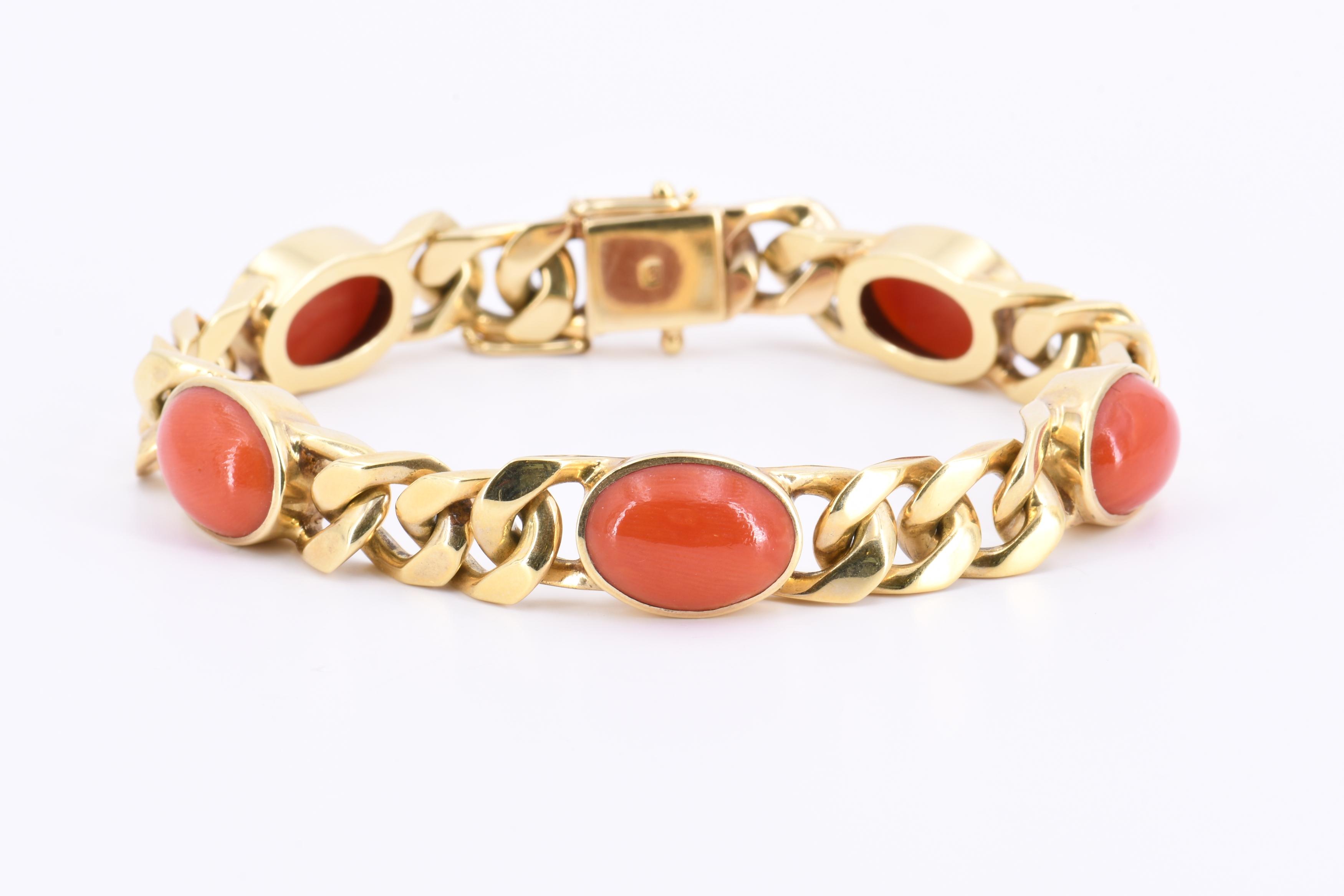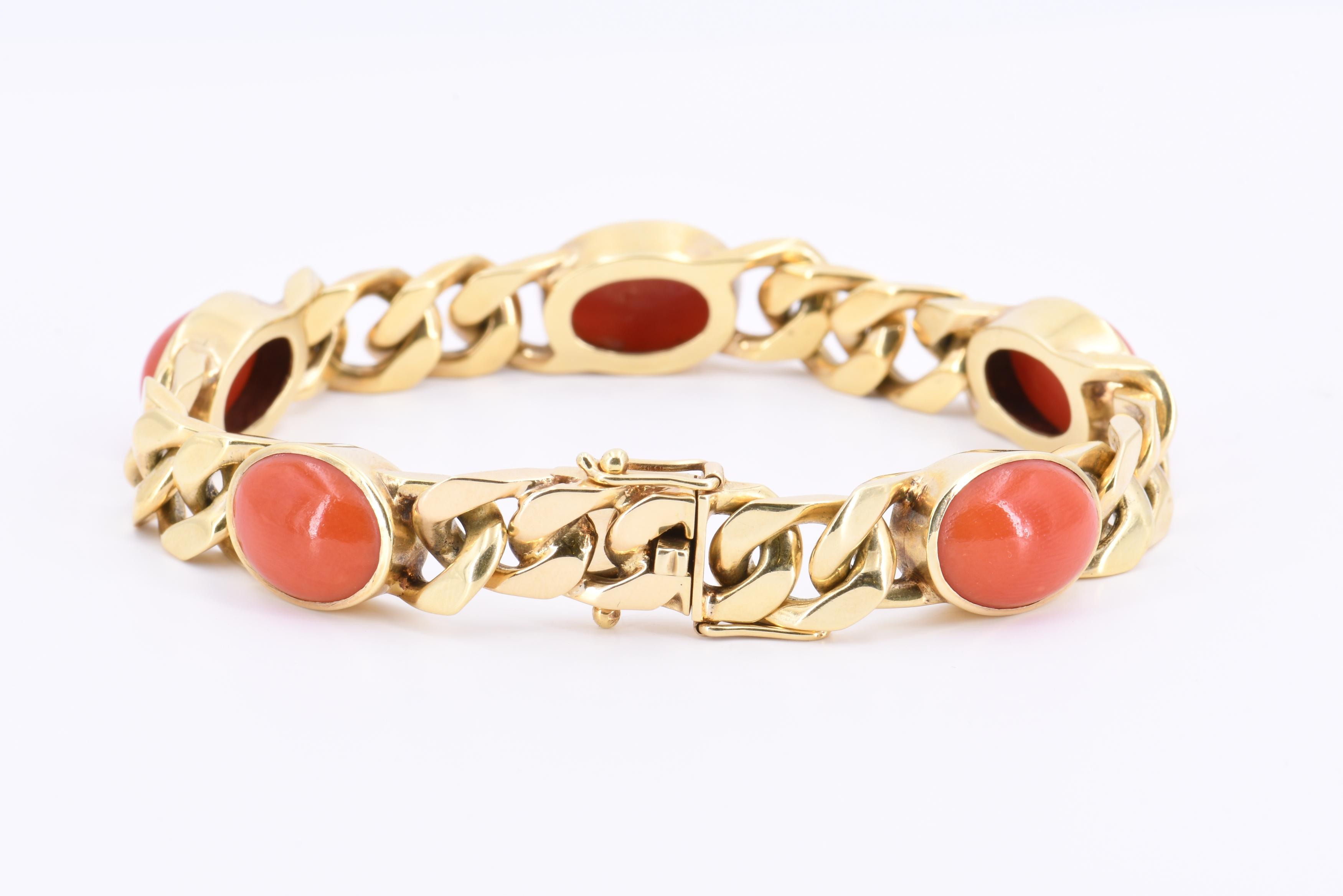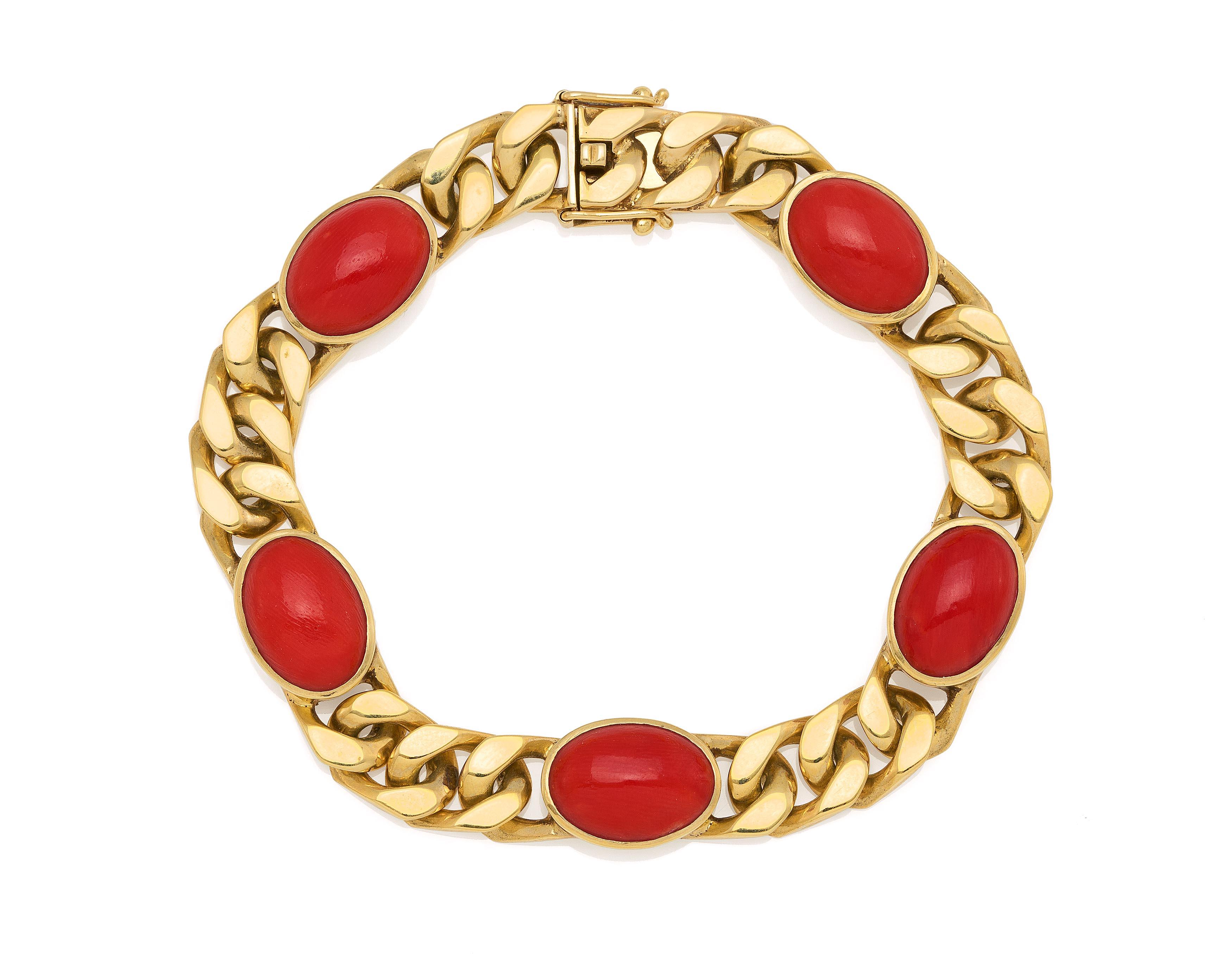 Org. Substanzen: 5 Sardegna-Korallen im Cabochon-Schliff zus. ca. 17,5 ct., 13,5 x 9,5 mm.
