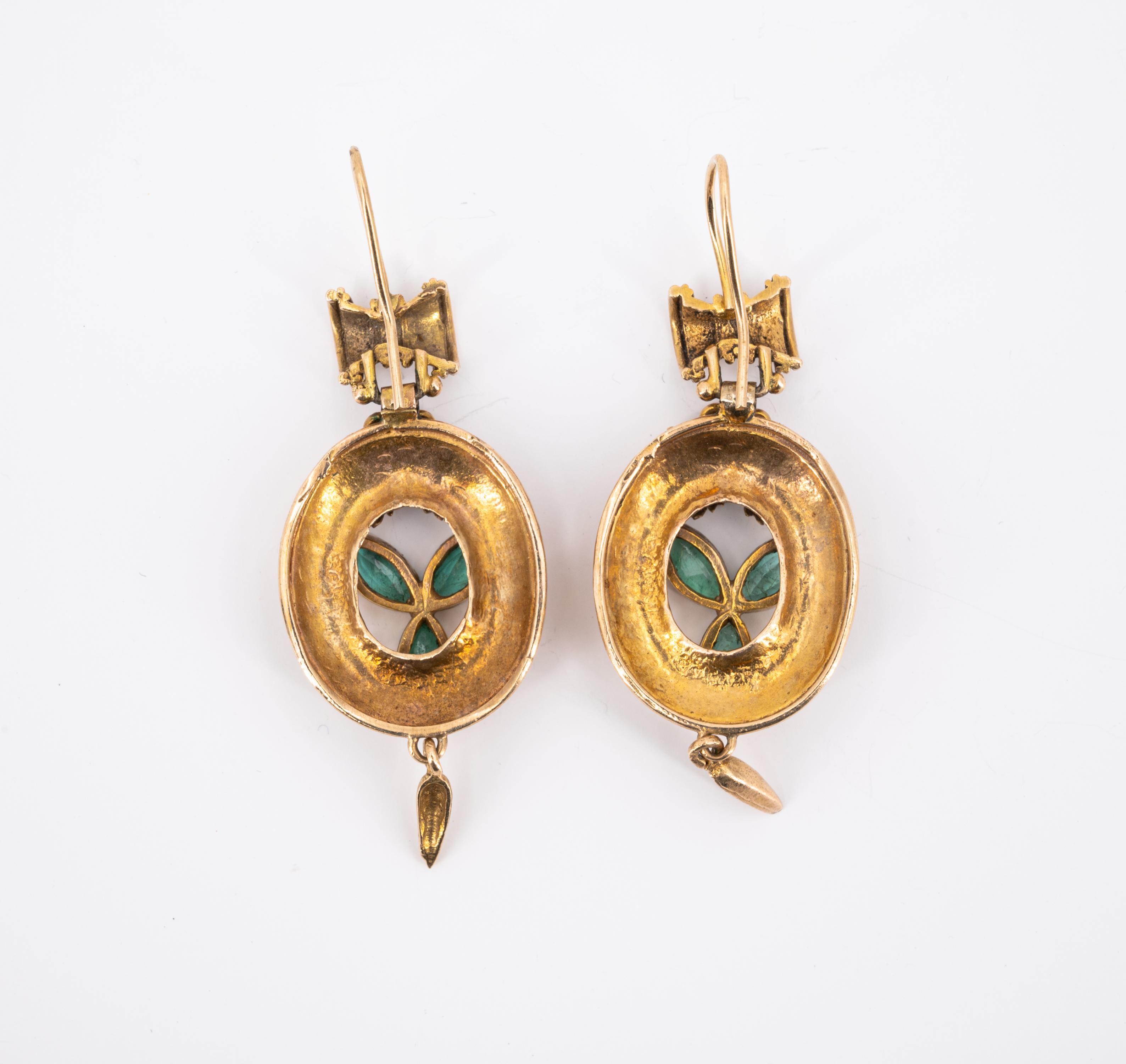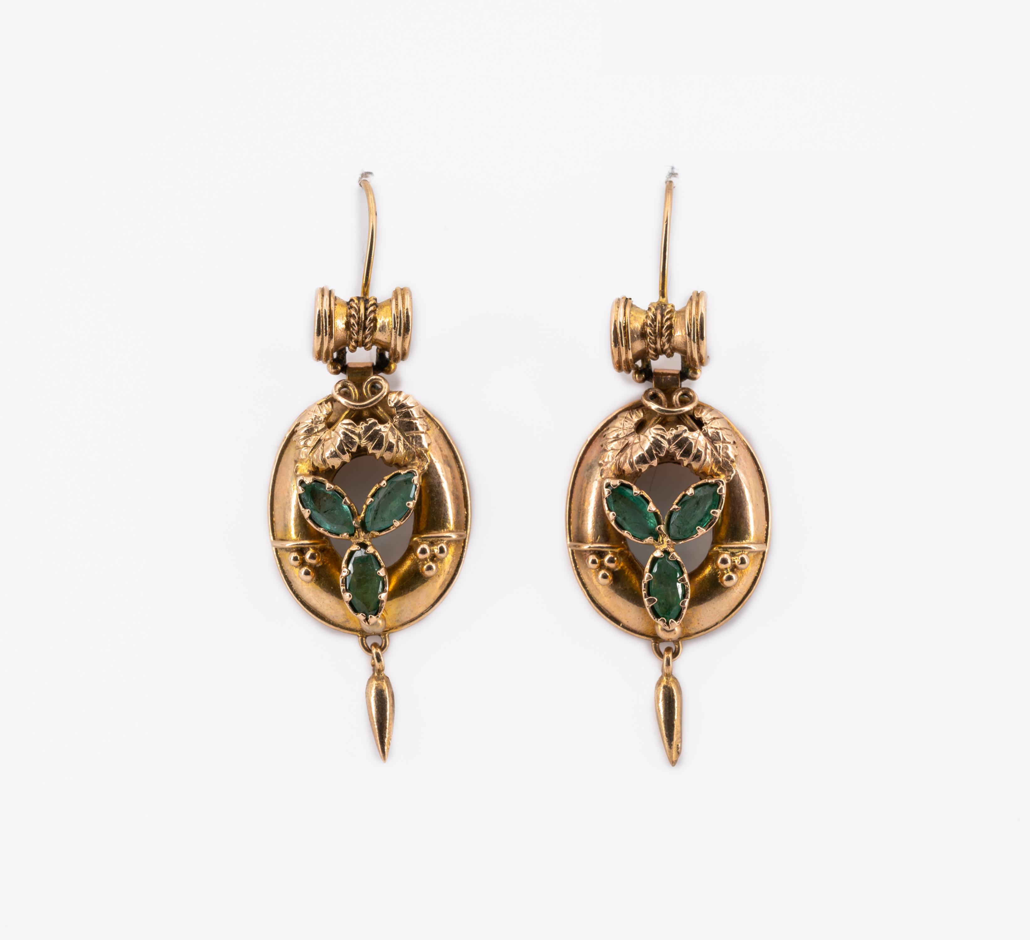 Edelsteine: 6 grüne, Farbsteine im Navette-Schliff 6,5 x 3,1 mm.