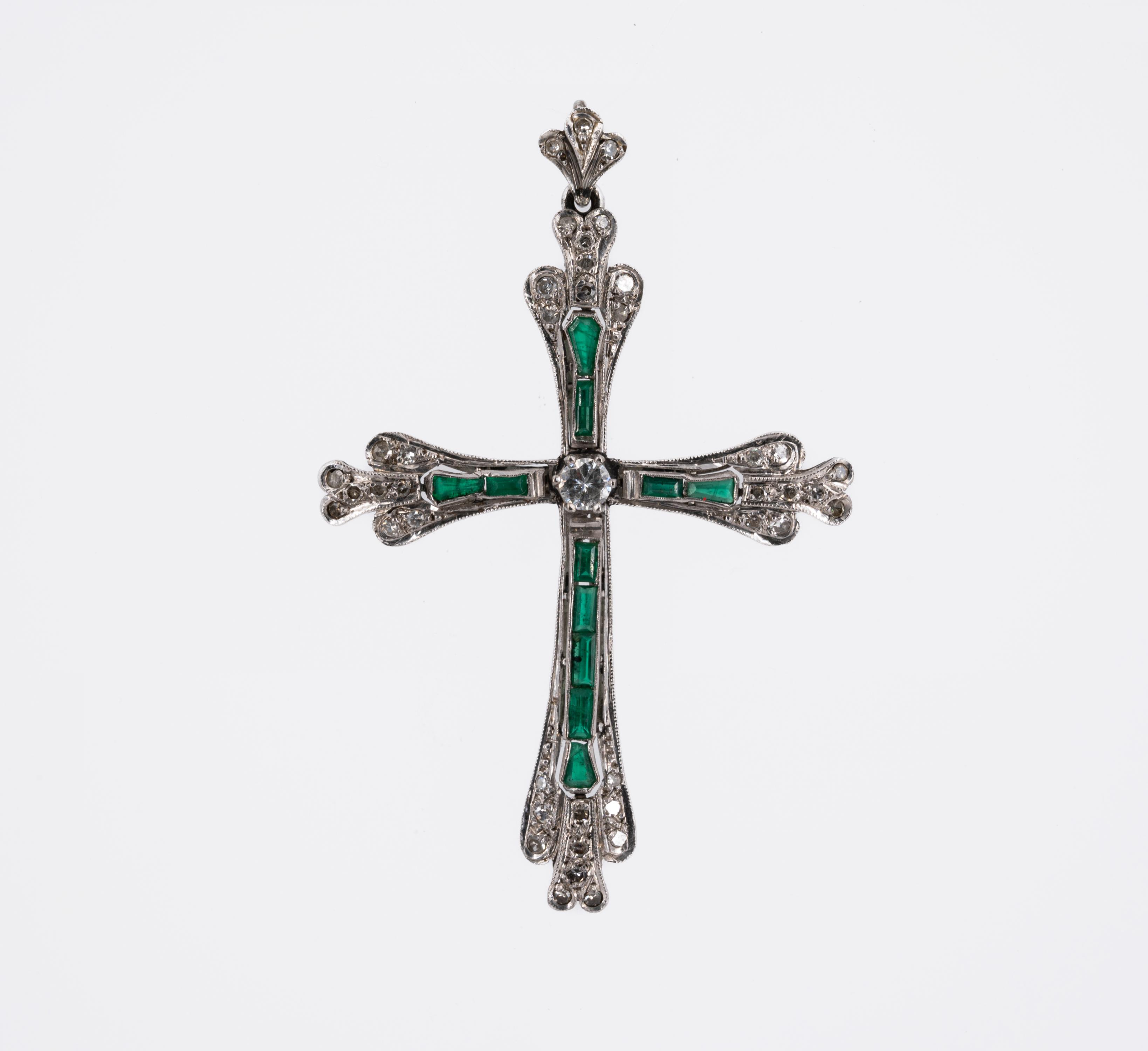 Edelsteine: 11 rechteckige, facettierte, grüne Farbsteine, wohl Smargde.