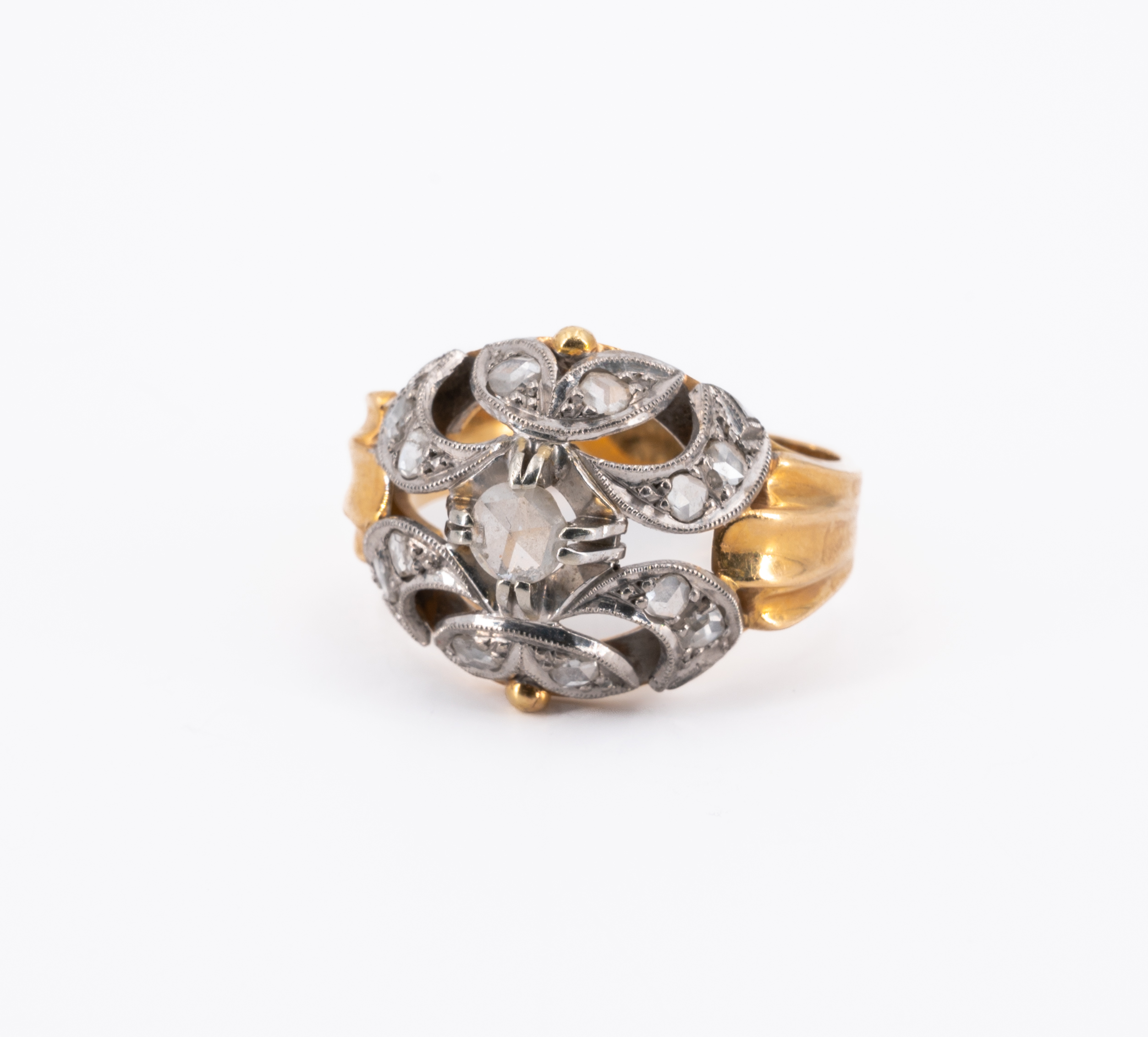 Diamanten: 13 Diamanten im Rosen-Schliff Ø ca. 2,1 - 4,0 mm.