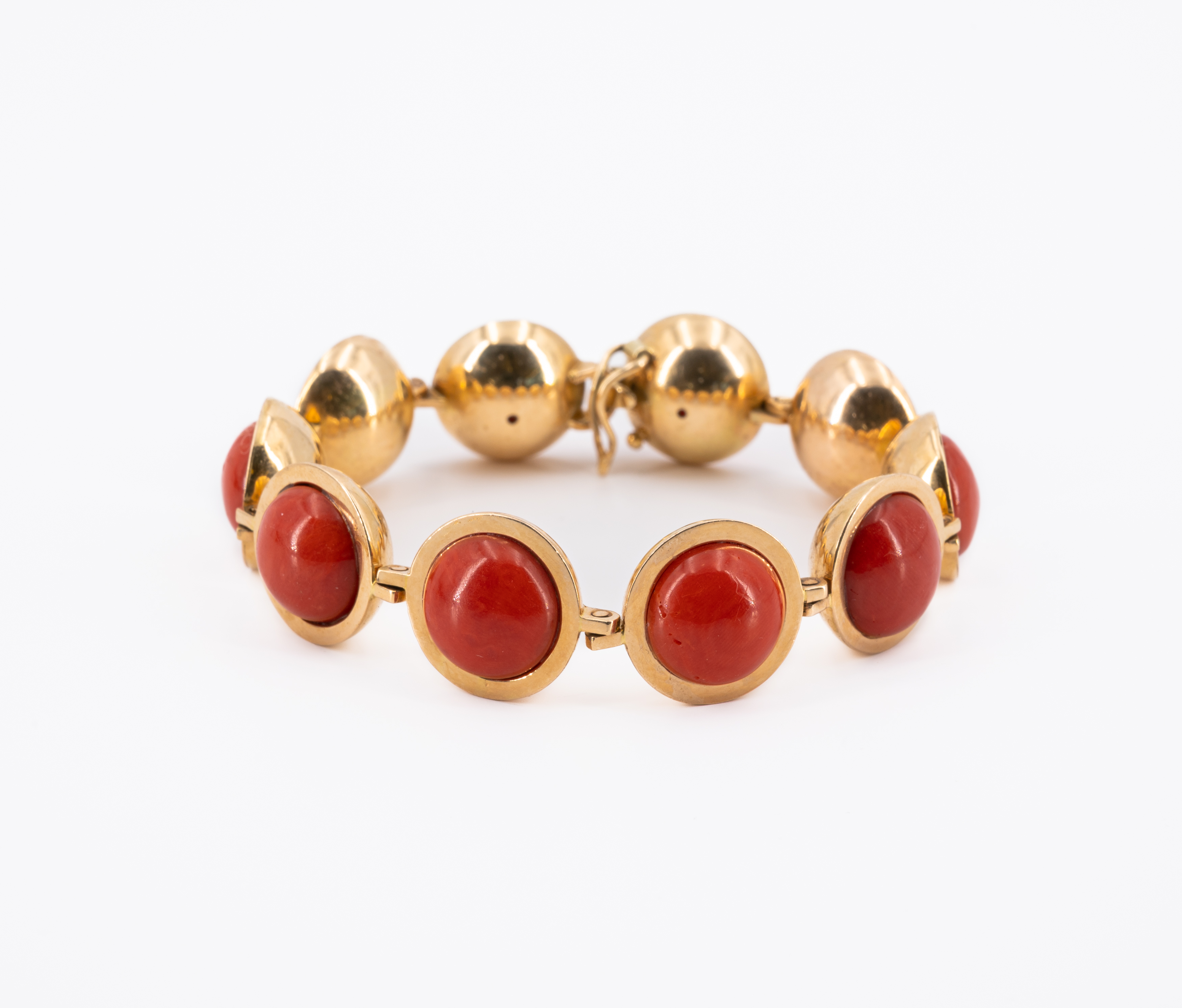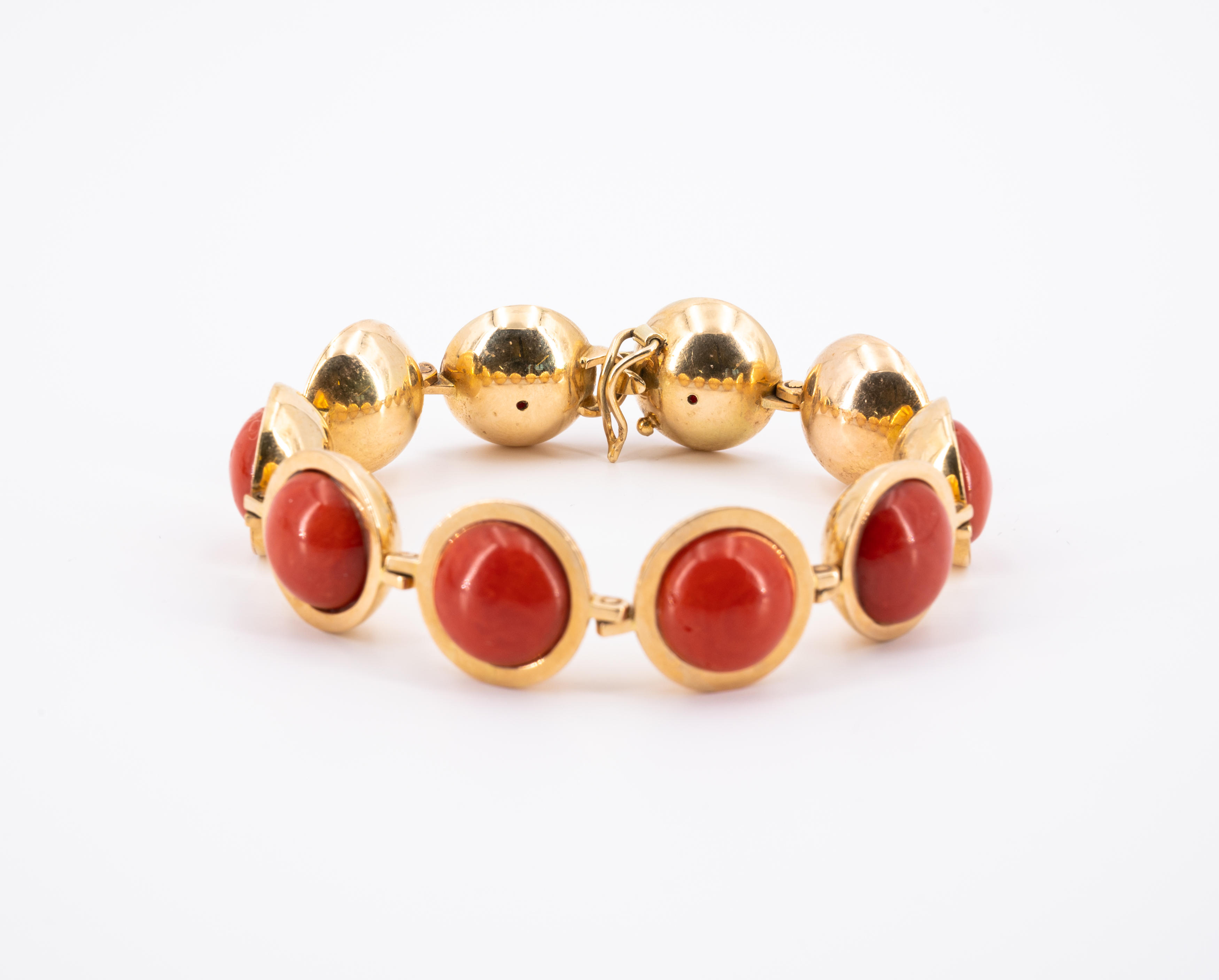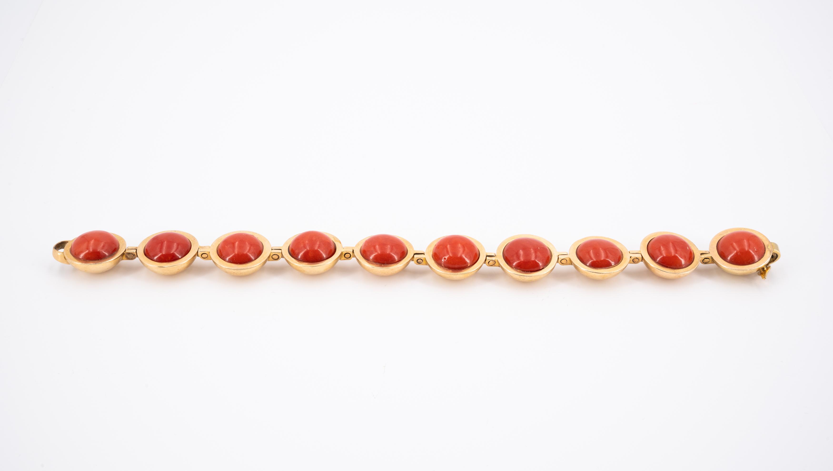 Org. Substanzen: 10 Korall-Cabochons Ø ca. 11,0 - 12,2 mm.