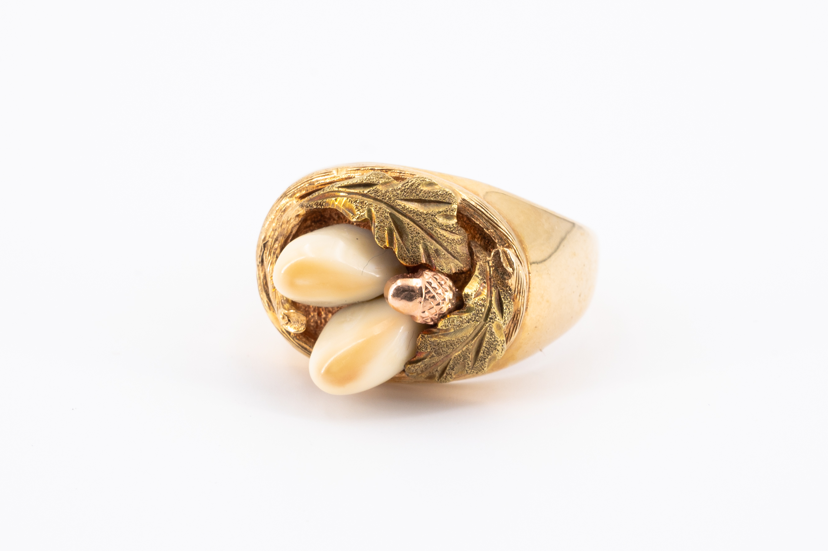 Material: 585/- Gelb-, Weiß- und Rotgold, Punze.