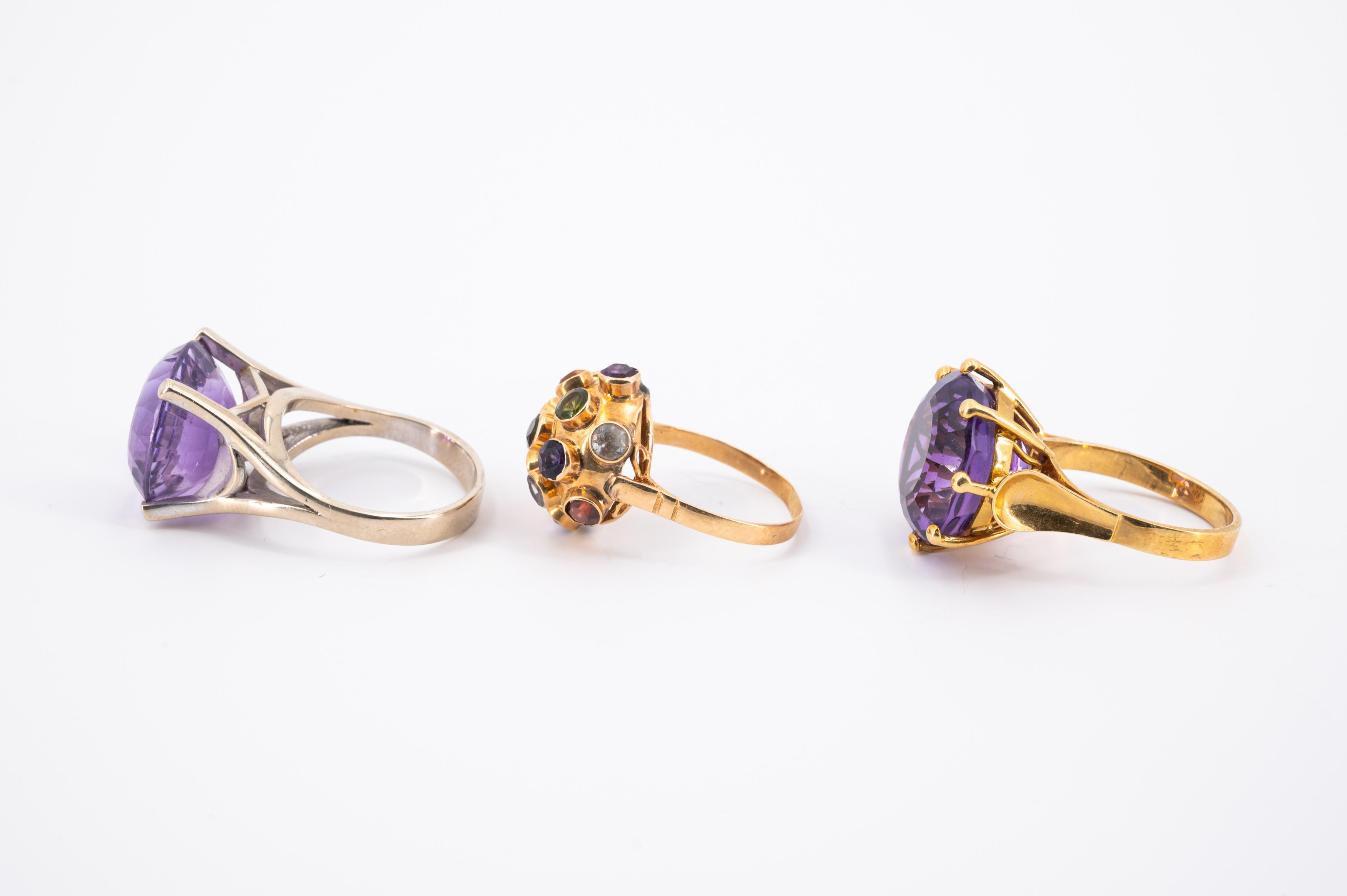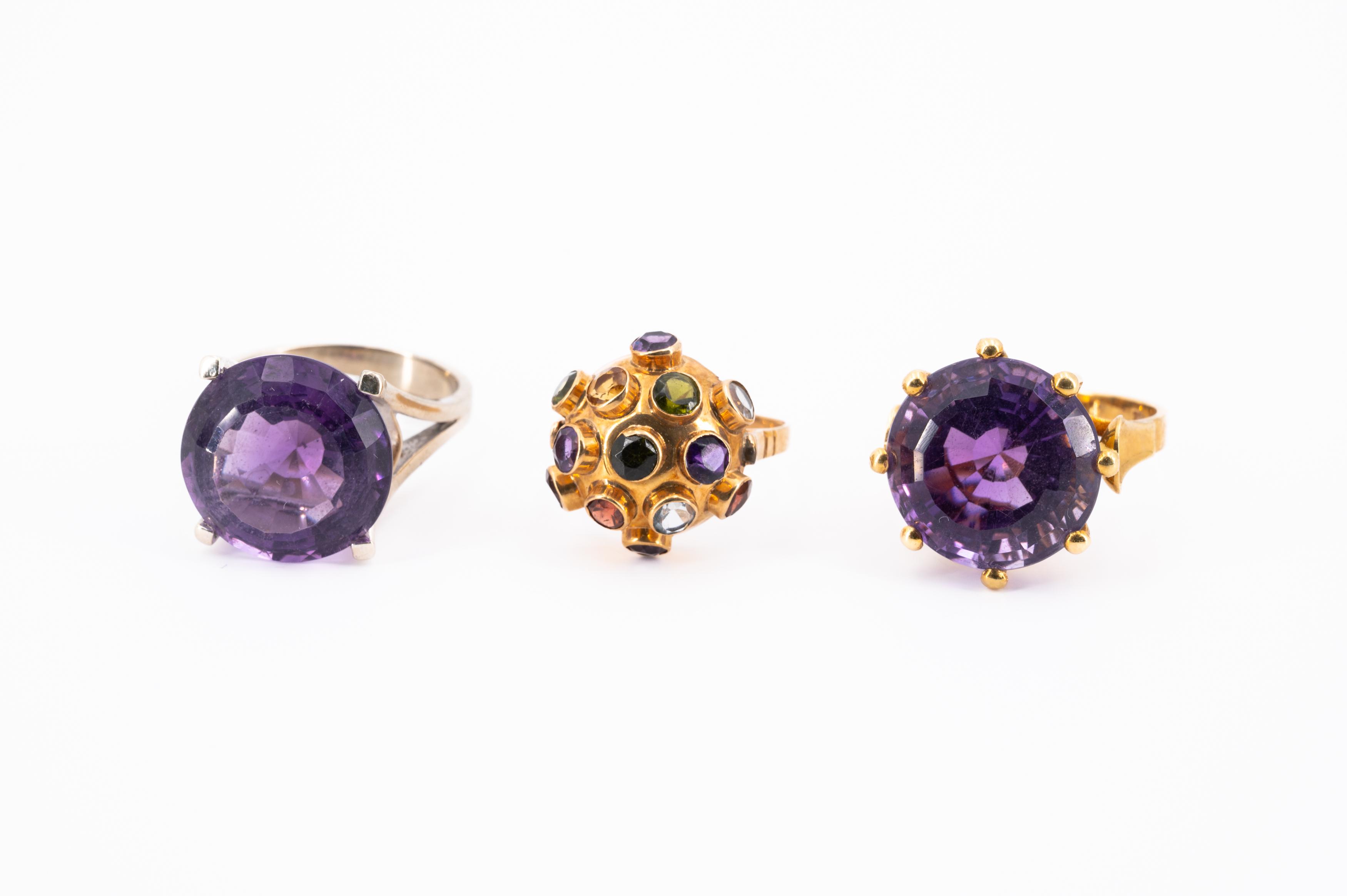KONVOLUT: DREI FARBSTEIN-RINGE.