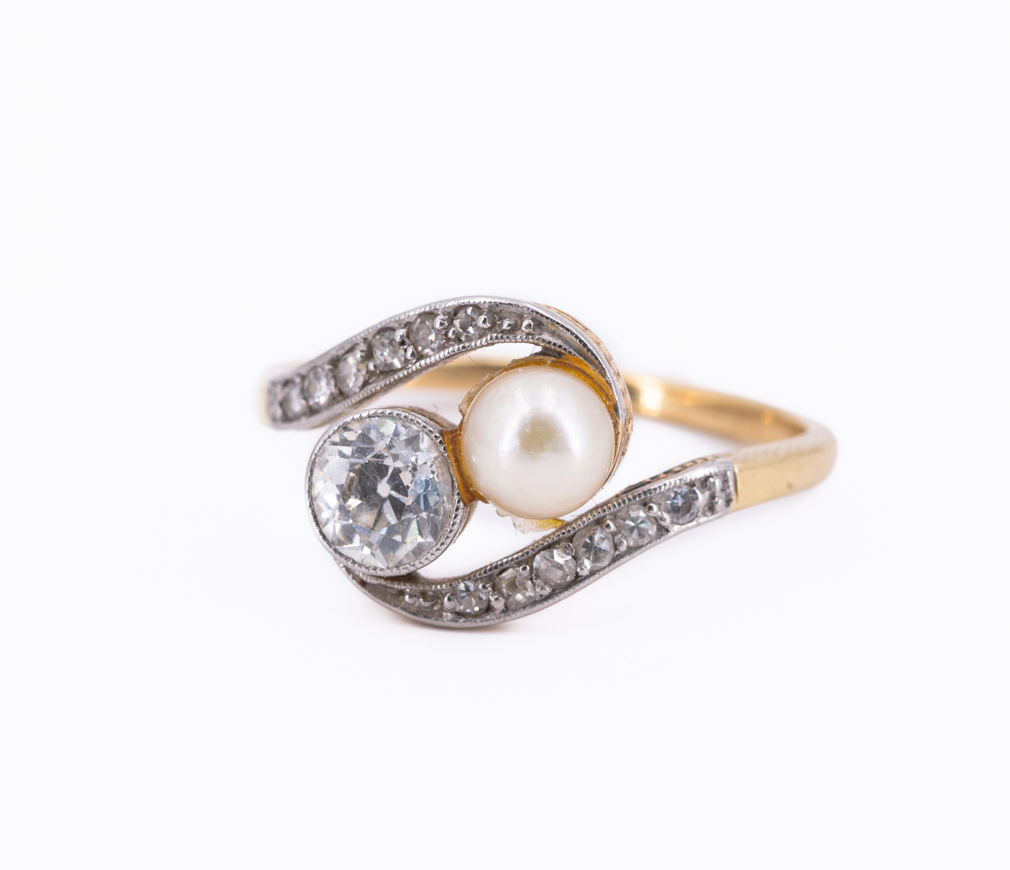 Diamanten: 1 Diamant im Alt-Schliff ca. 0,4 ct., 12 Diamanten im Rosen-Schliff Ø ca. 1,0 - 1,6 mm.