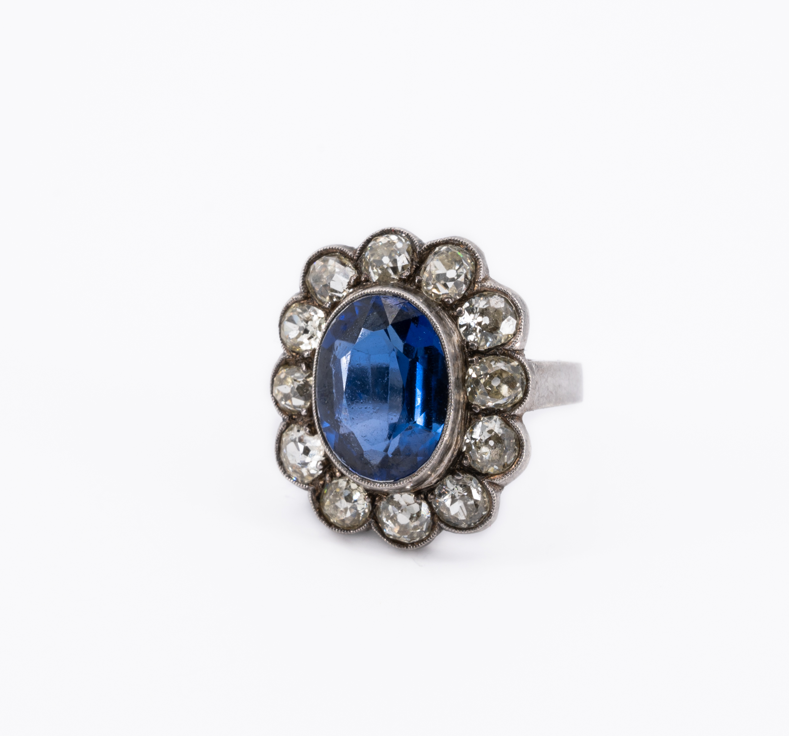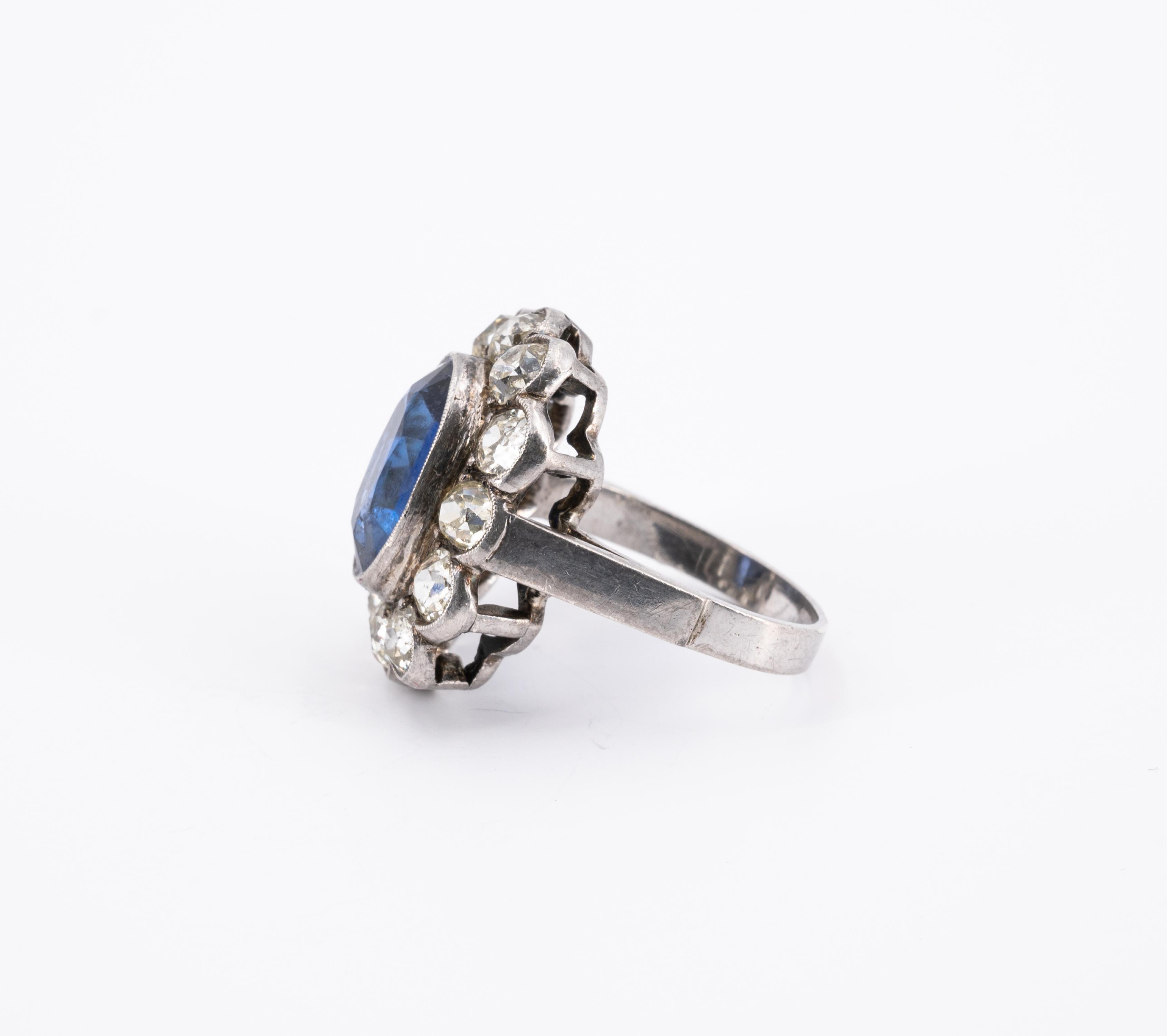 Edelsteine: 1 synthetischer Saphir 12,3 x 9,2 x 4,6 mm.