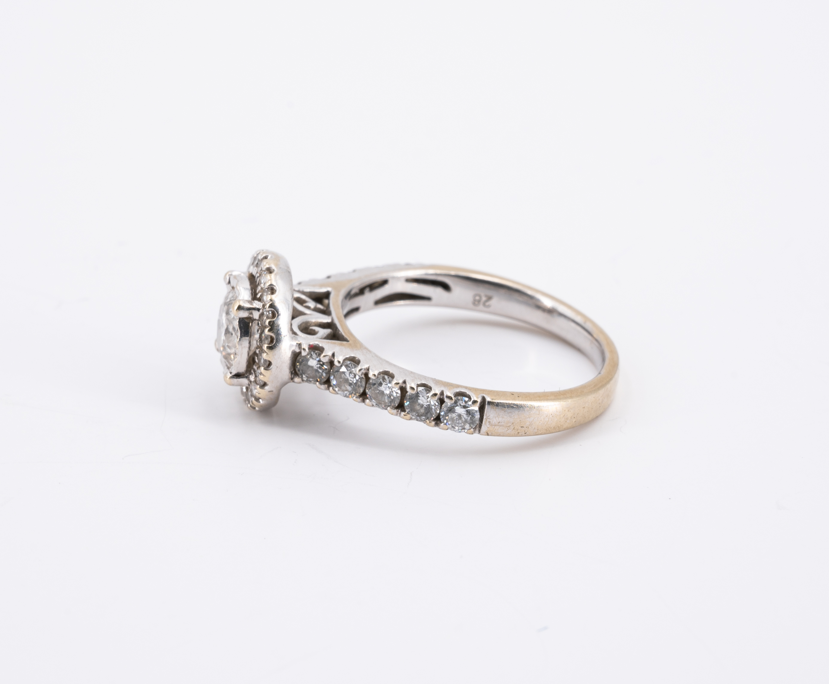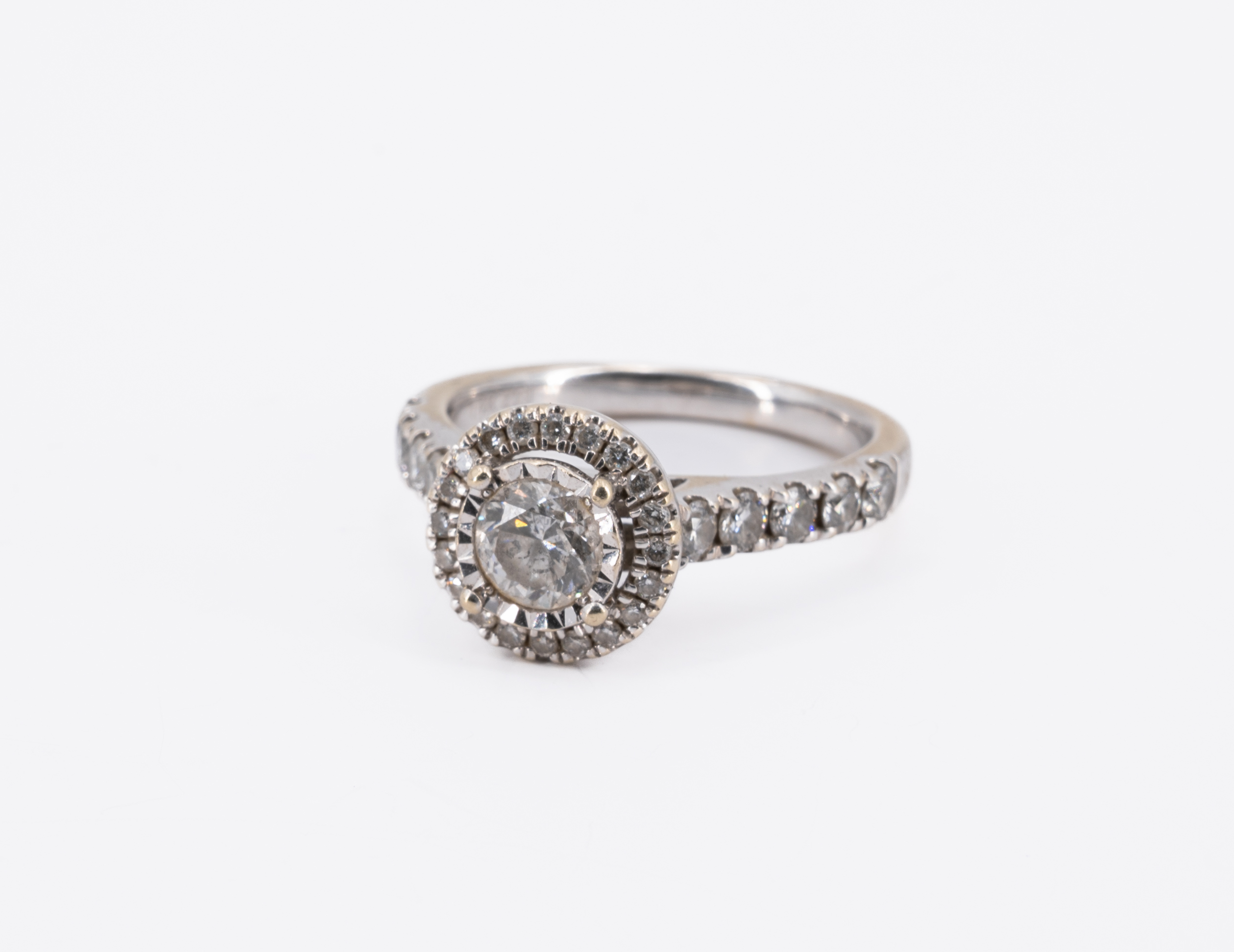 Diamanten: 1 Brillant ca. 0,5 ct., 31 Brillanten Ø ca. 1,0 - 2,9 mm.