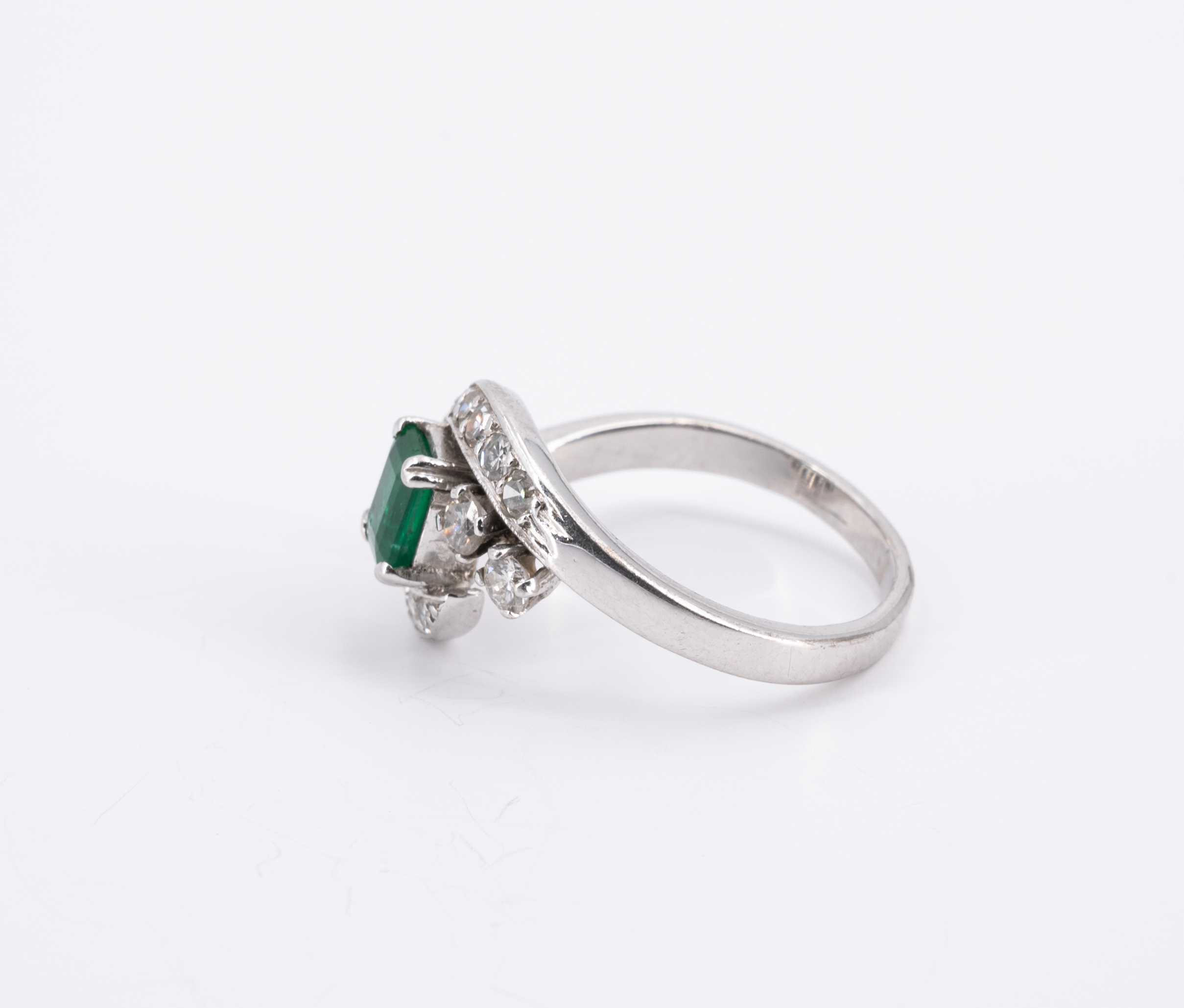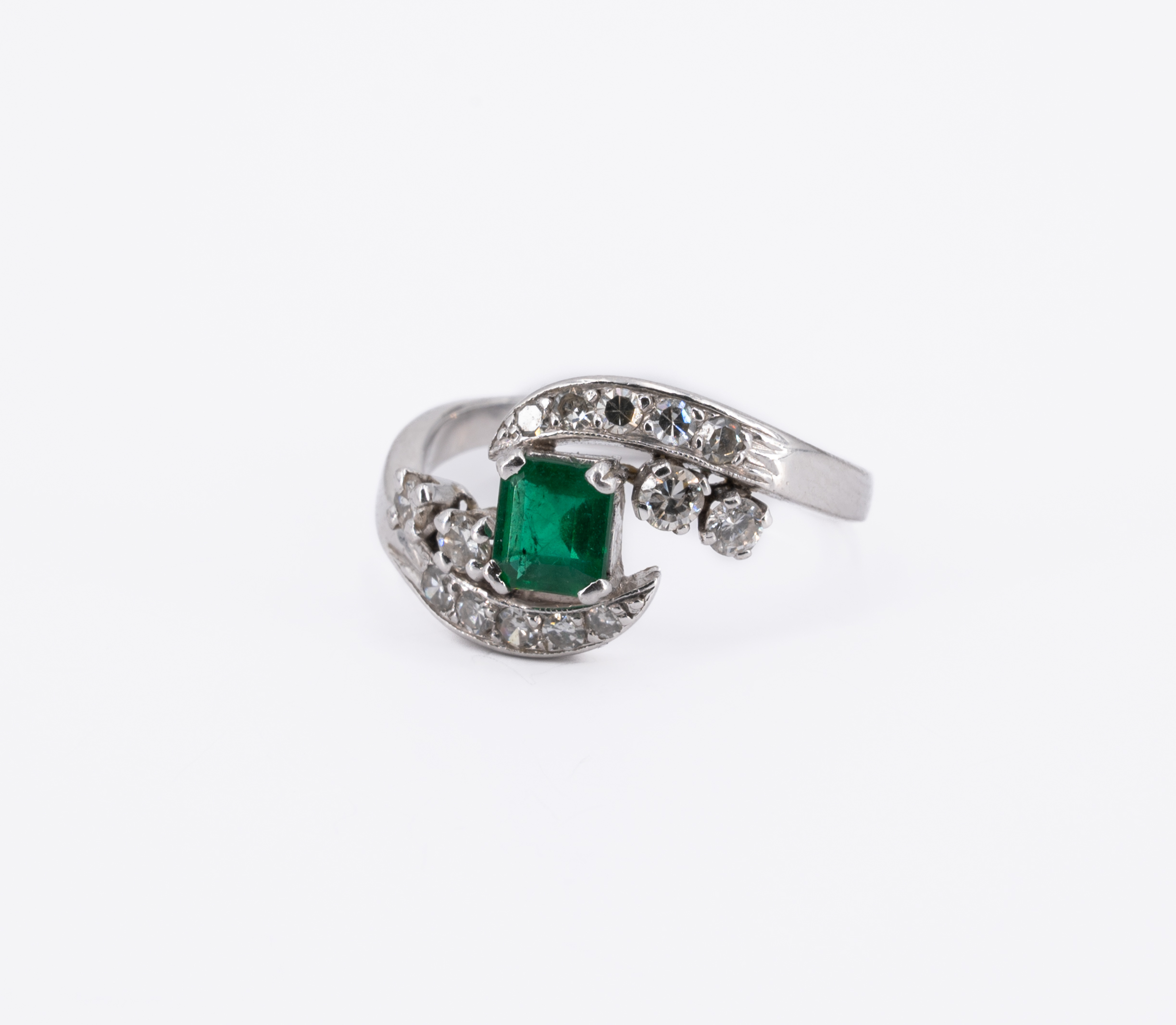 Edelsteine: 1 Smaragd im Emerald-Schliff ca. 0,4 ct.