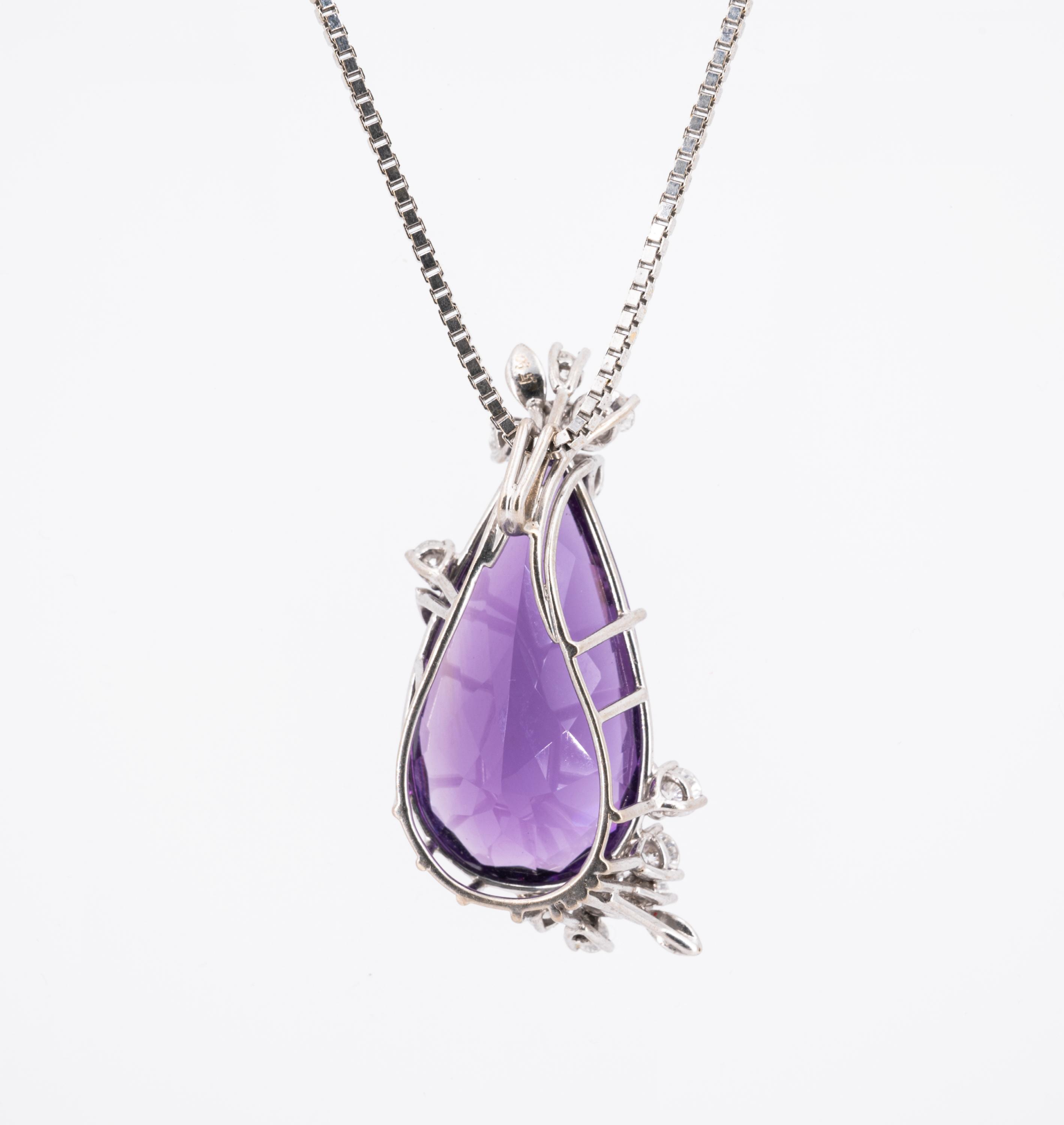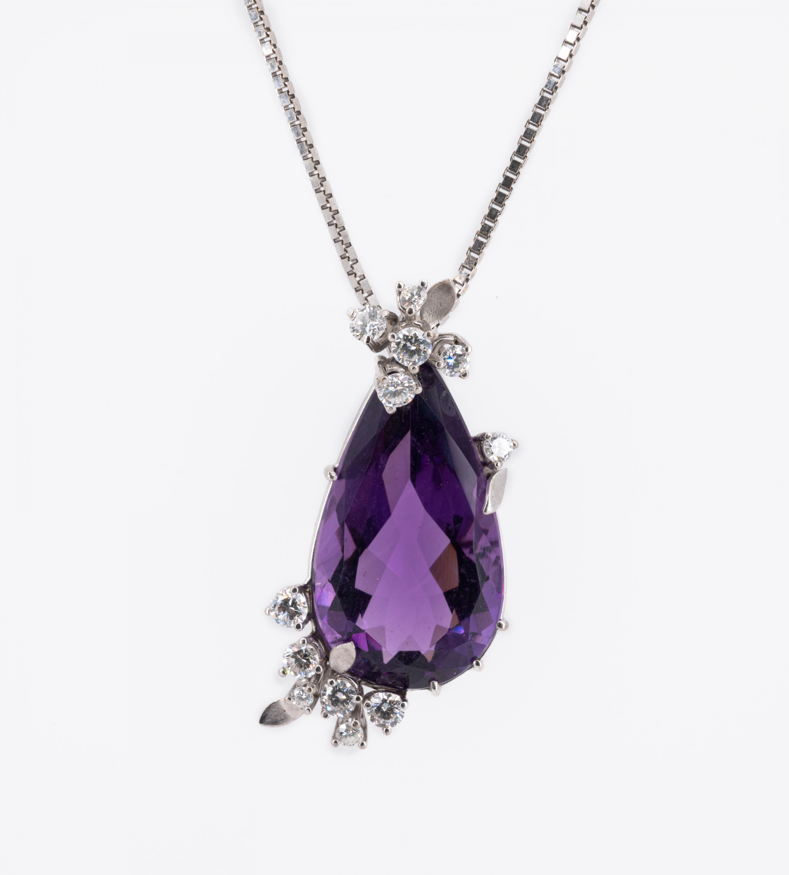Edelsteine: 1 Amethyst im Tropfen-Schliff ca. 2,8 x 1,6 x 1,0 cm.
