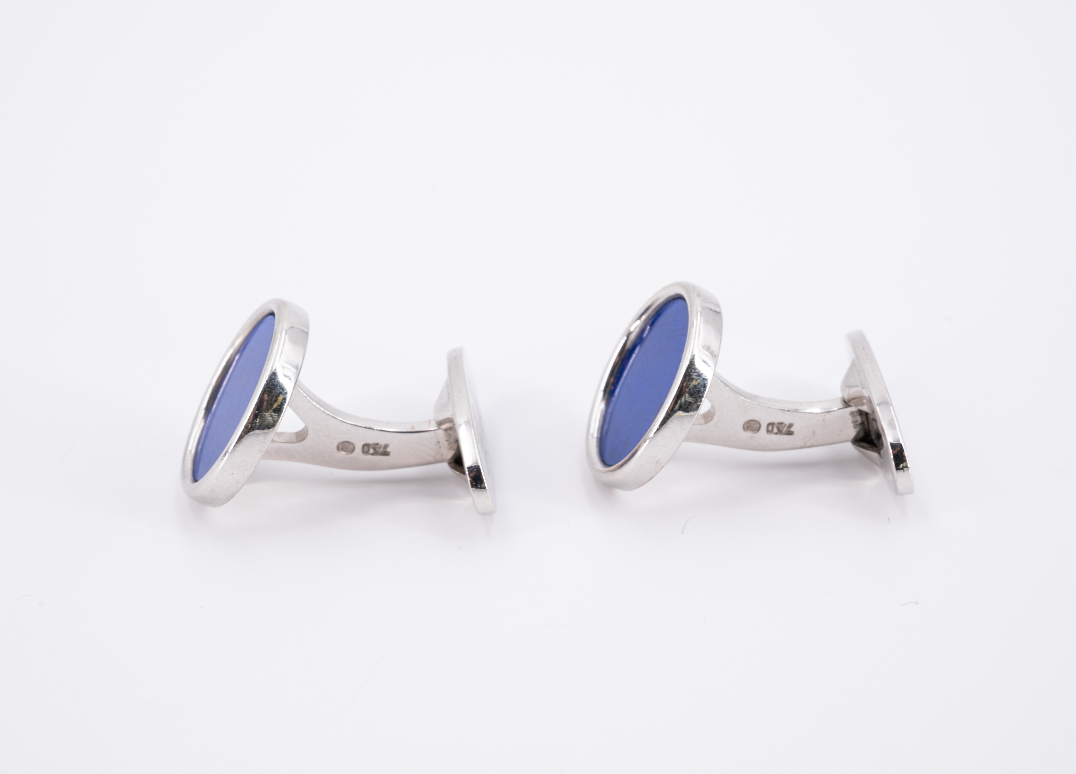Edelsteine: 2 Lapislazuli-Scheiben Ø 1,4 cm.