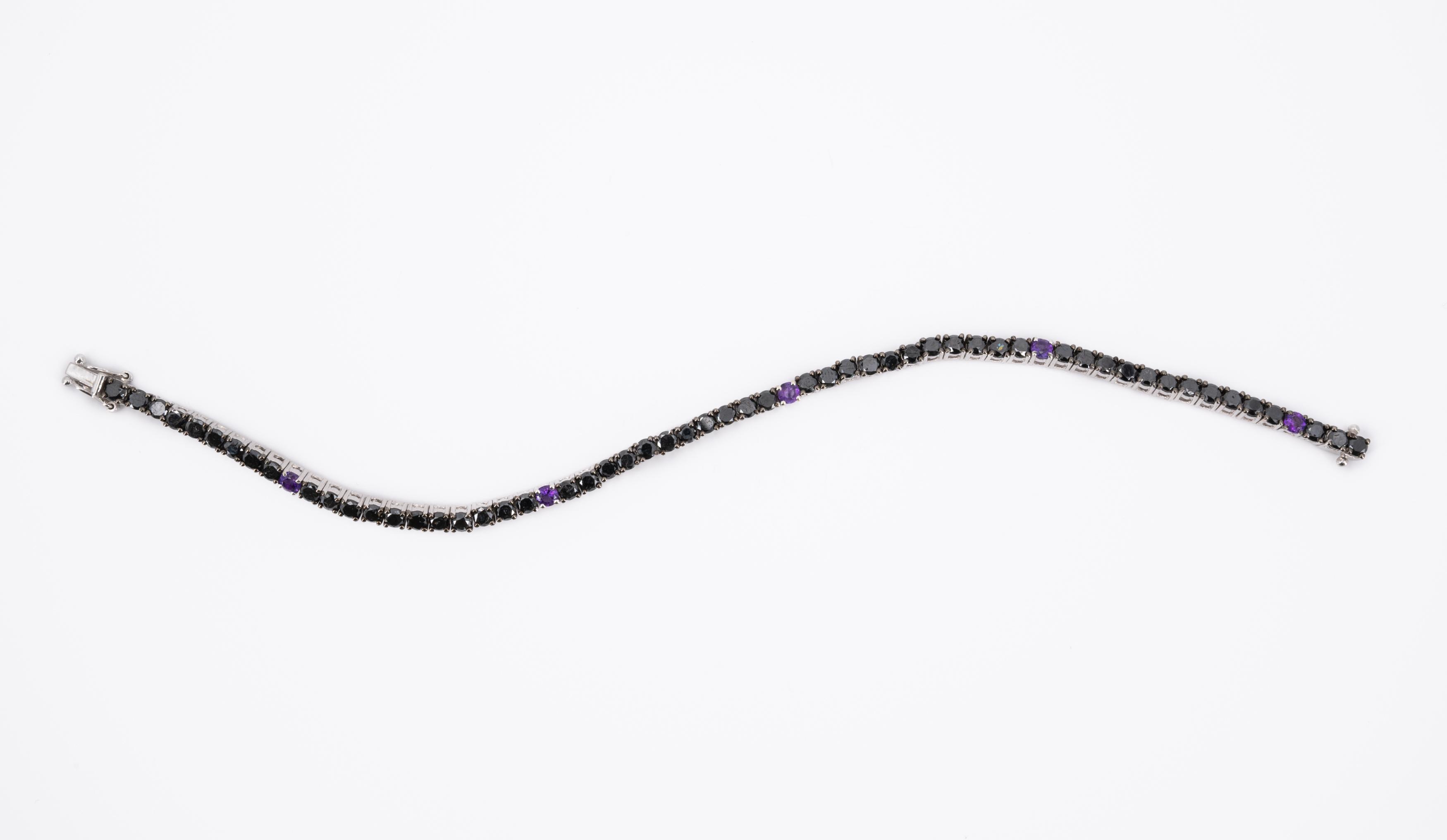 Diamanten: 55 runde, facettierte schwarze Farbsteine, wohl behandelte Diamanten zus. ca. 4,1 ct.
