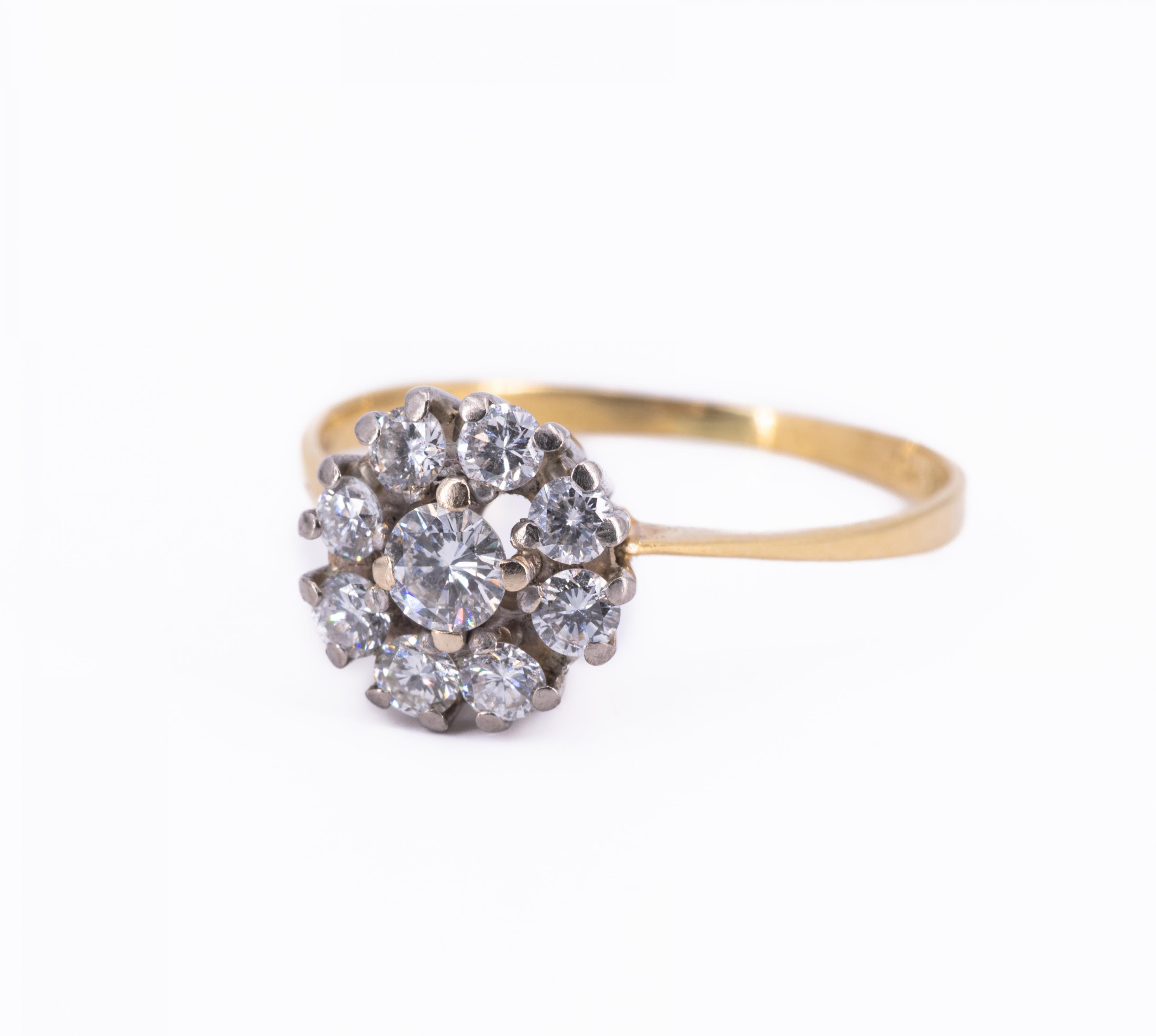 Diamanten: 9 Brillanten zus. ca. 0,5 ct. J-L/SI-P.