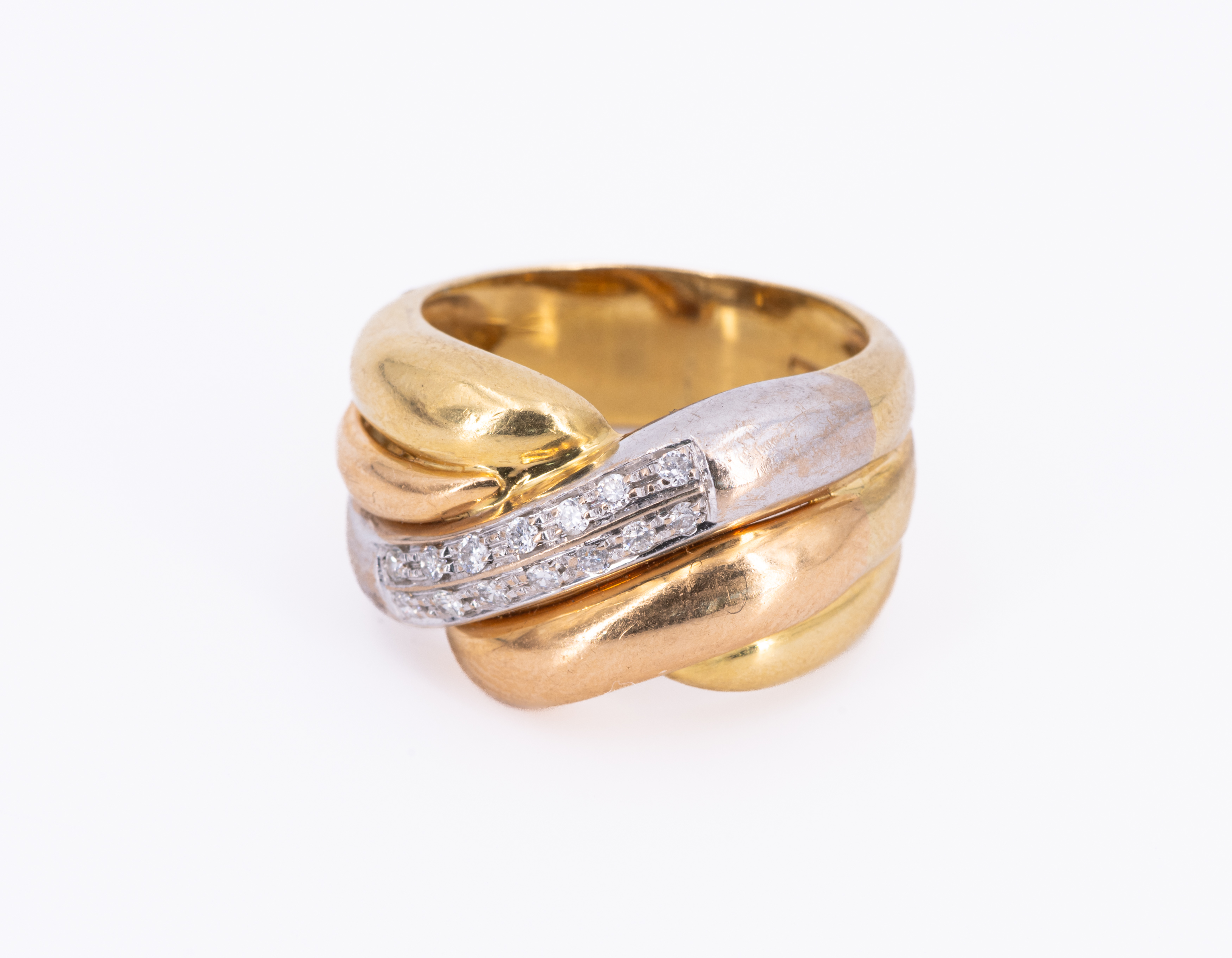 Material: 750/- Gelb- Weiß- und Rotgold, Punze.