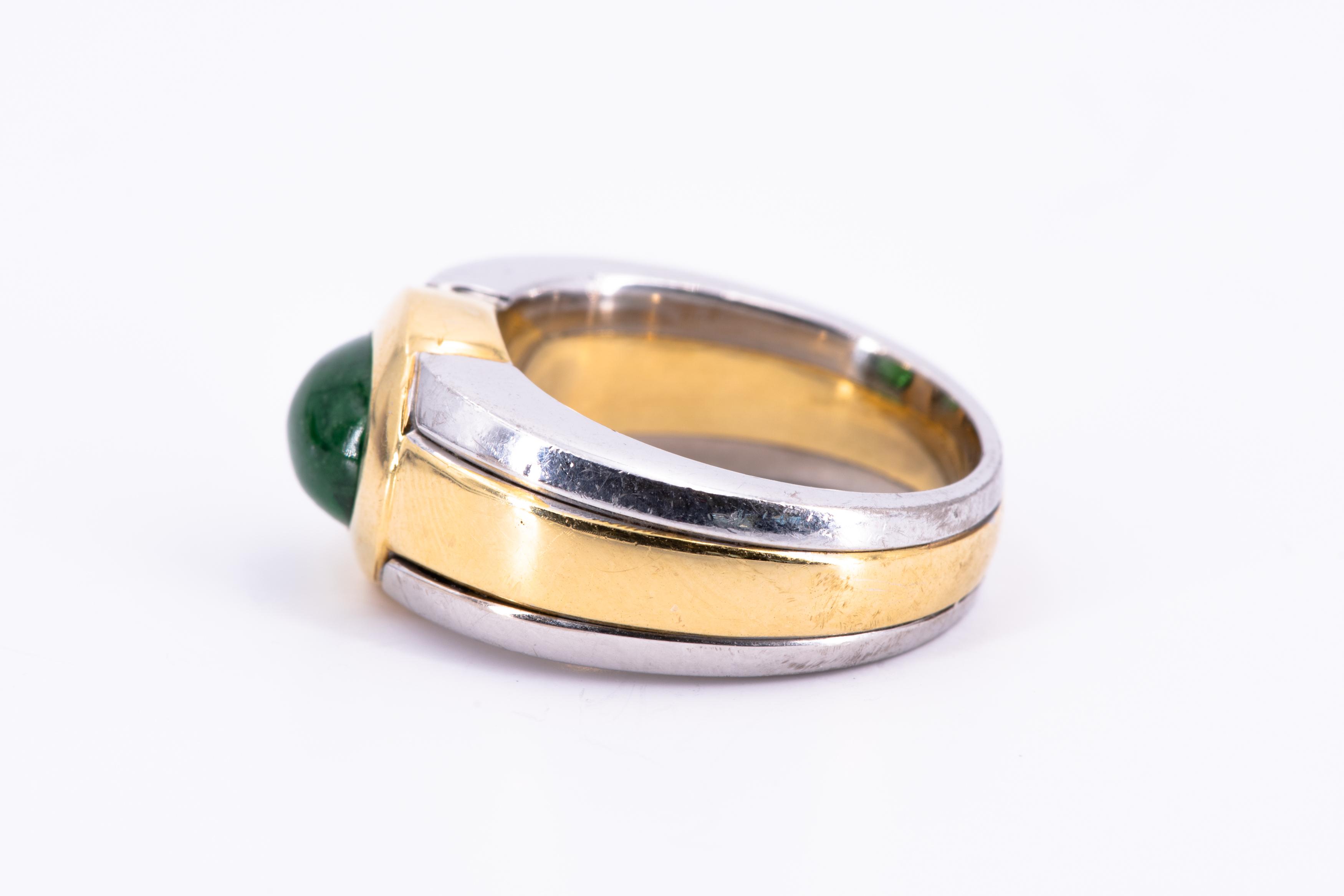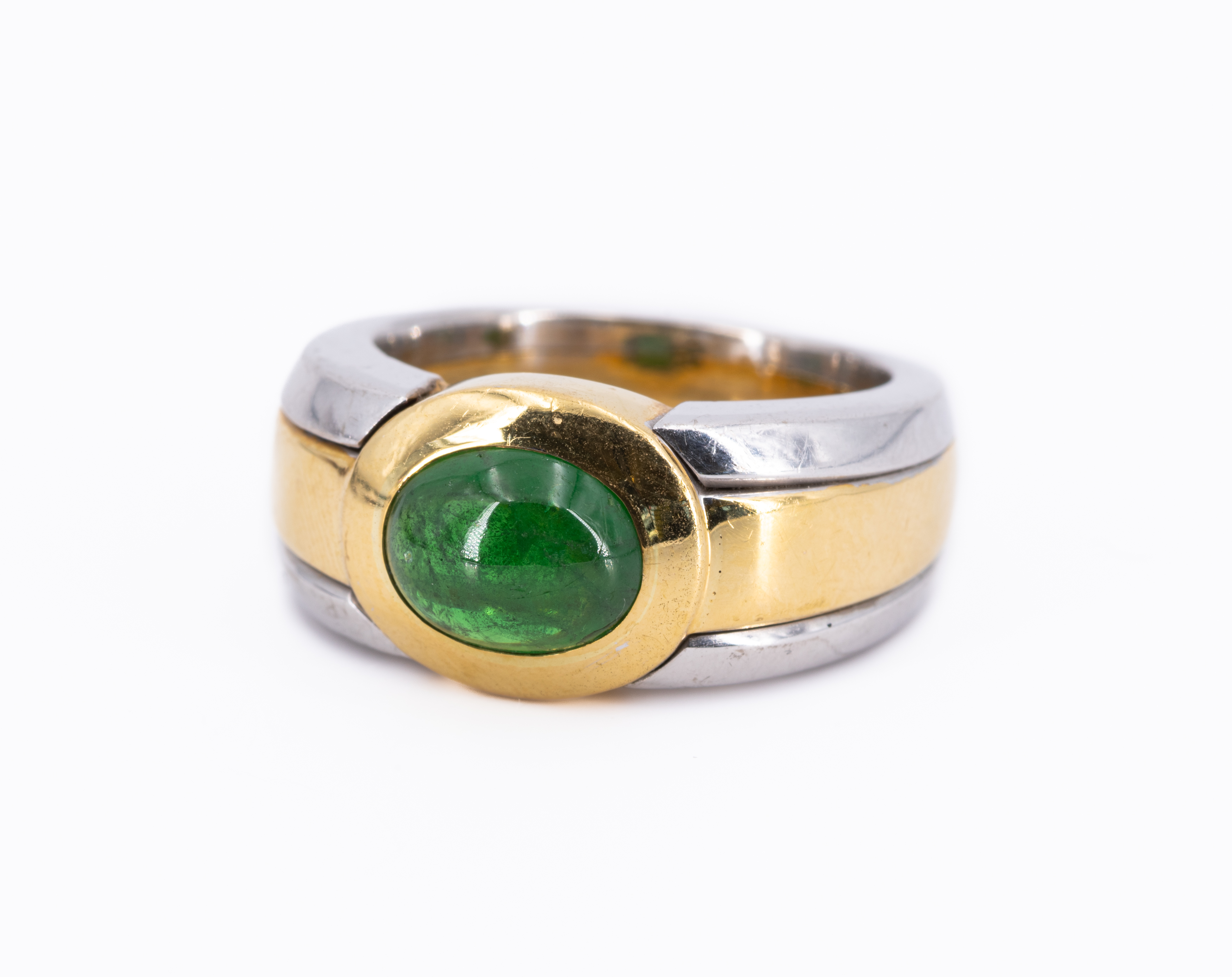 Edelsteine: 1 grüner Farbstein im Cabochon-Schliff, wohl Smaragd ca. 1,8 ct.