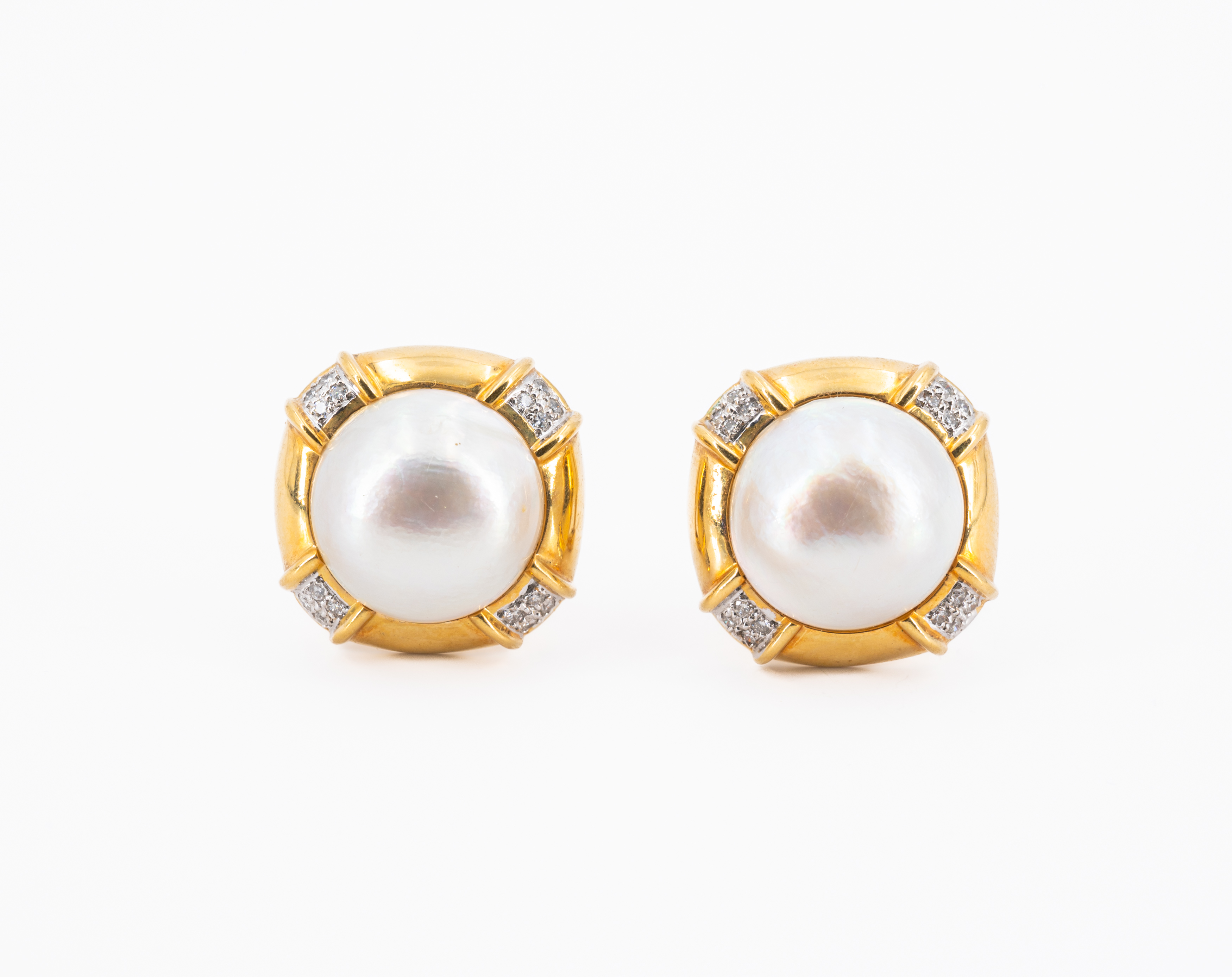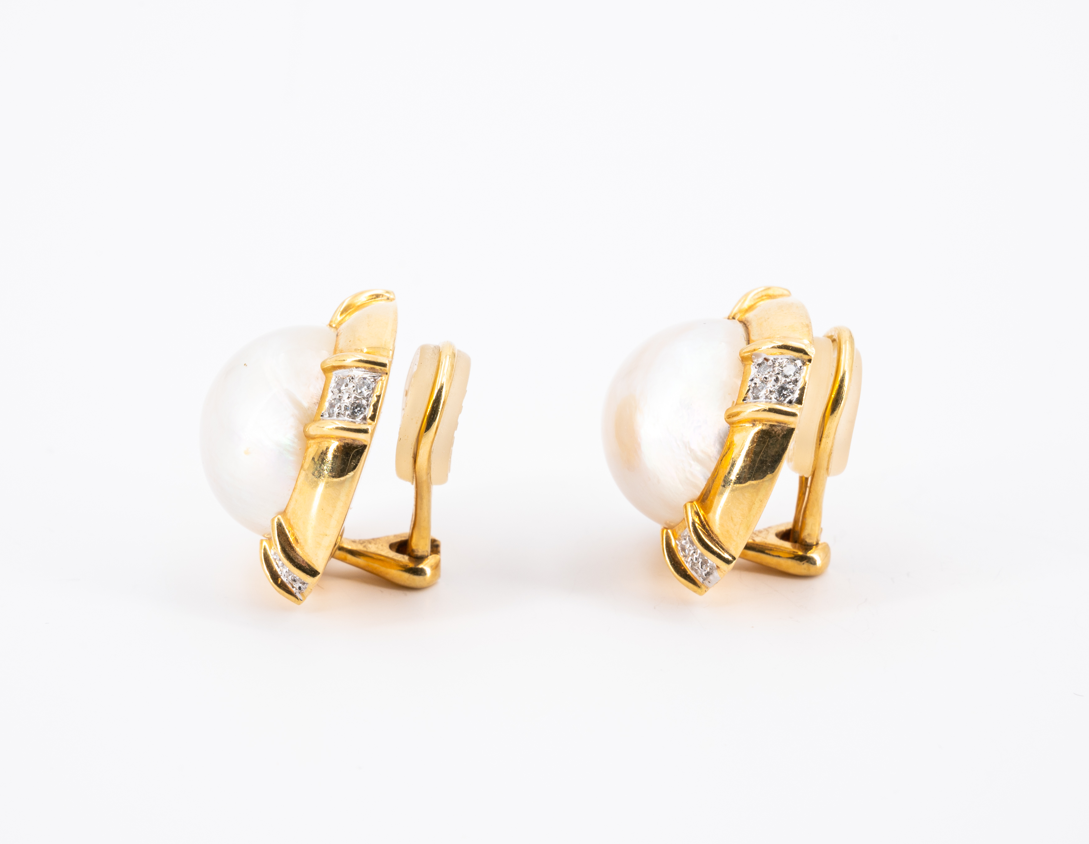 Org. Substanzen: 2 Mabé-Perlen Ø ca. 14,1 mm, weiß-irisierend.