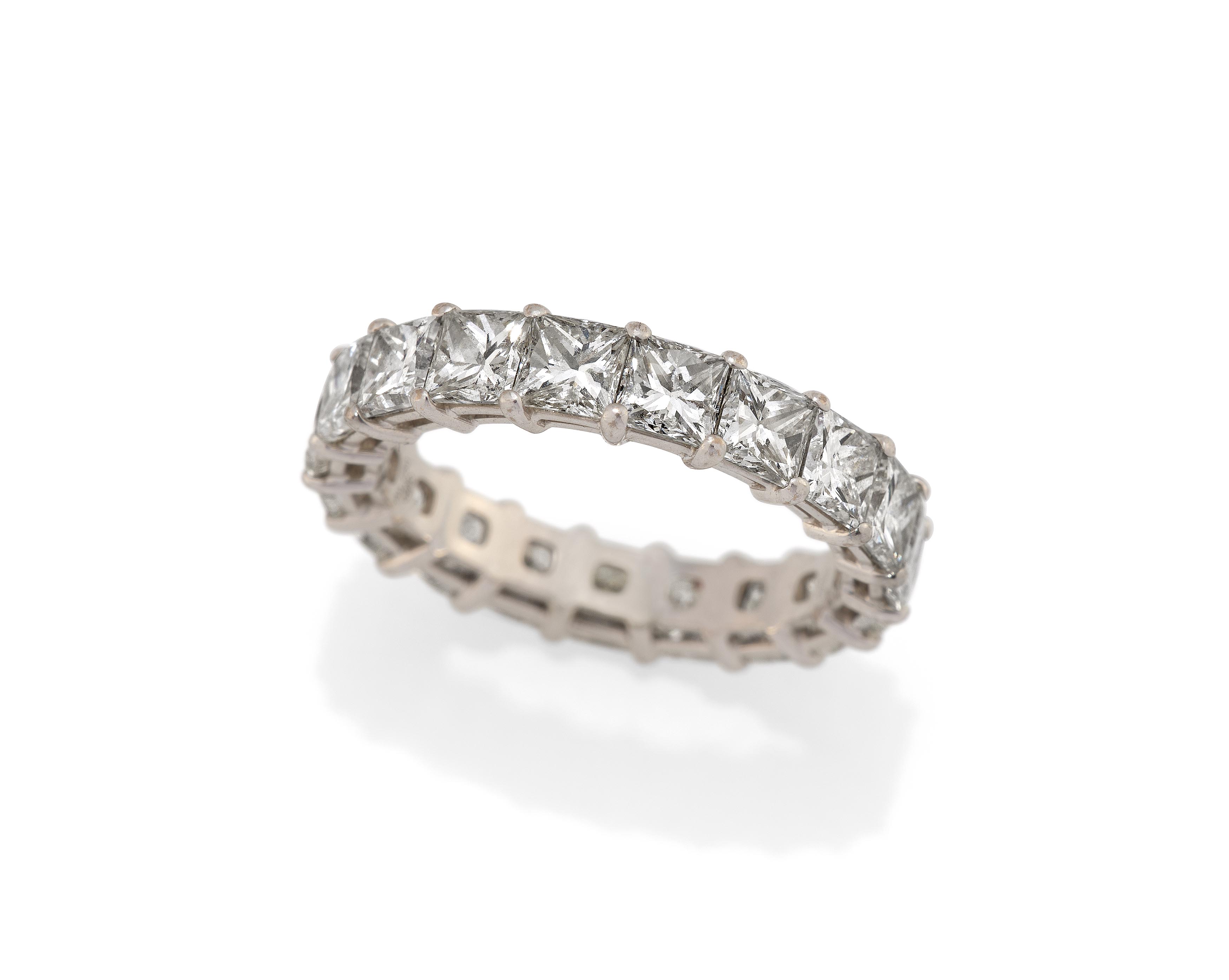 Diamanten: 19 Diamanten im Prinzess-Schliff zus. ca. 5,7 ct., H-I/VS.