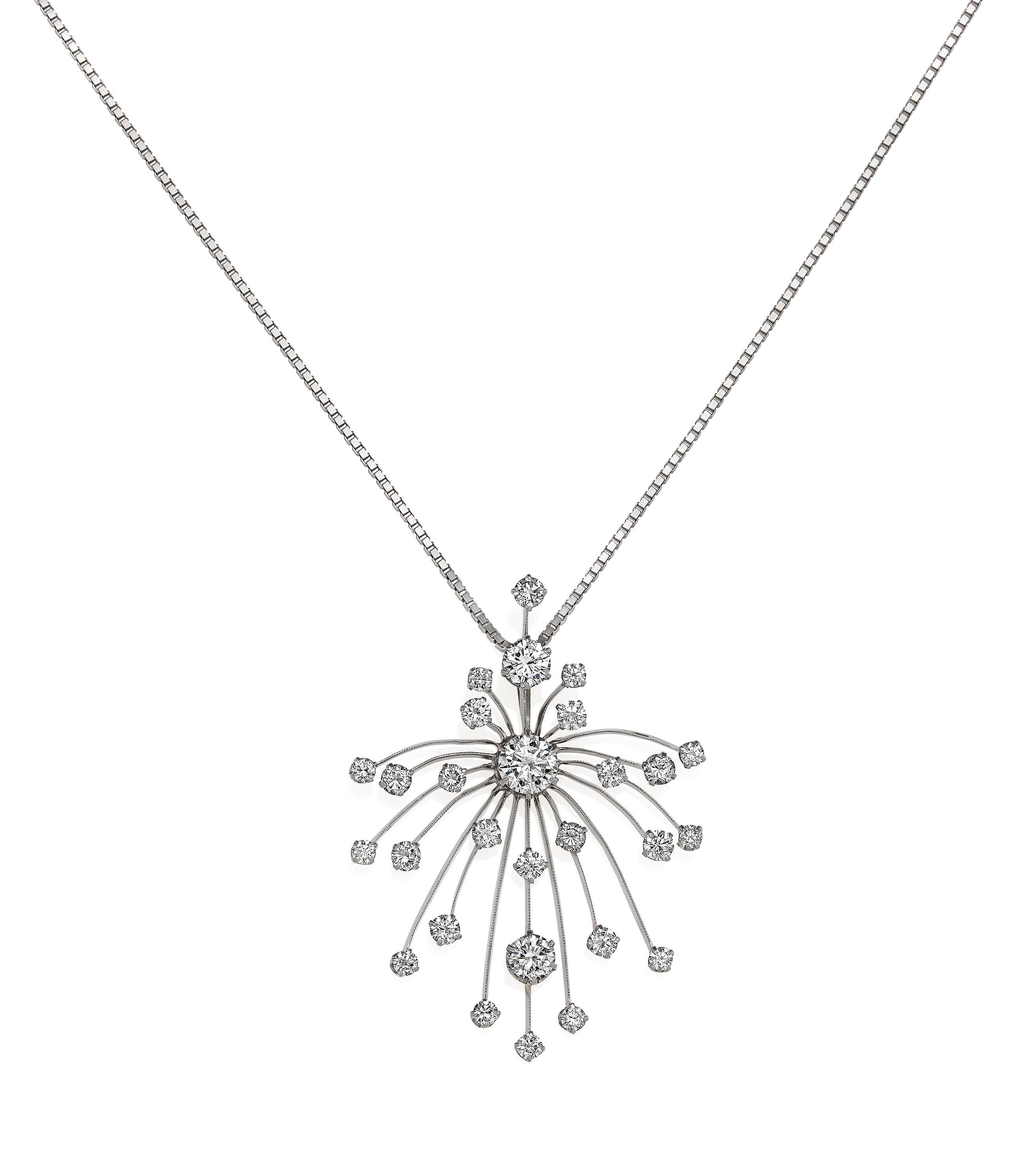 Diamanten: 3 Brillanten zus. ca. 1,9 ct., H-J/VS, 25 Brillanten zus. ca. 2,0 ct., H-J/VS.