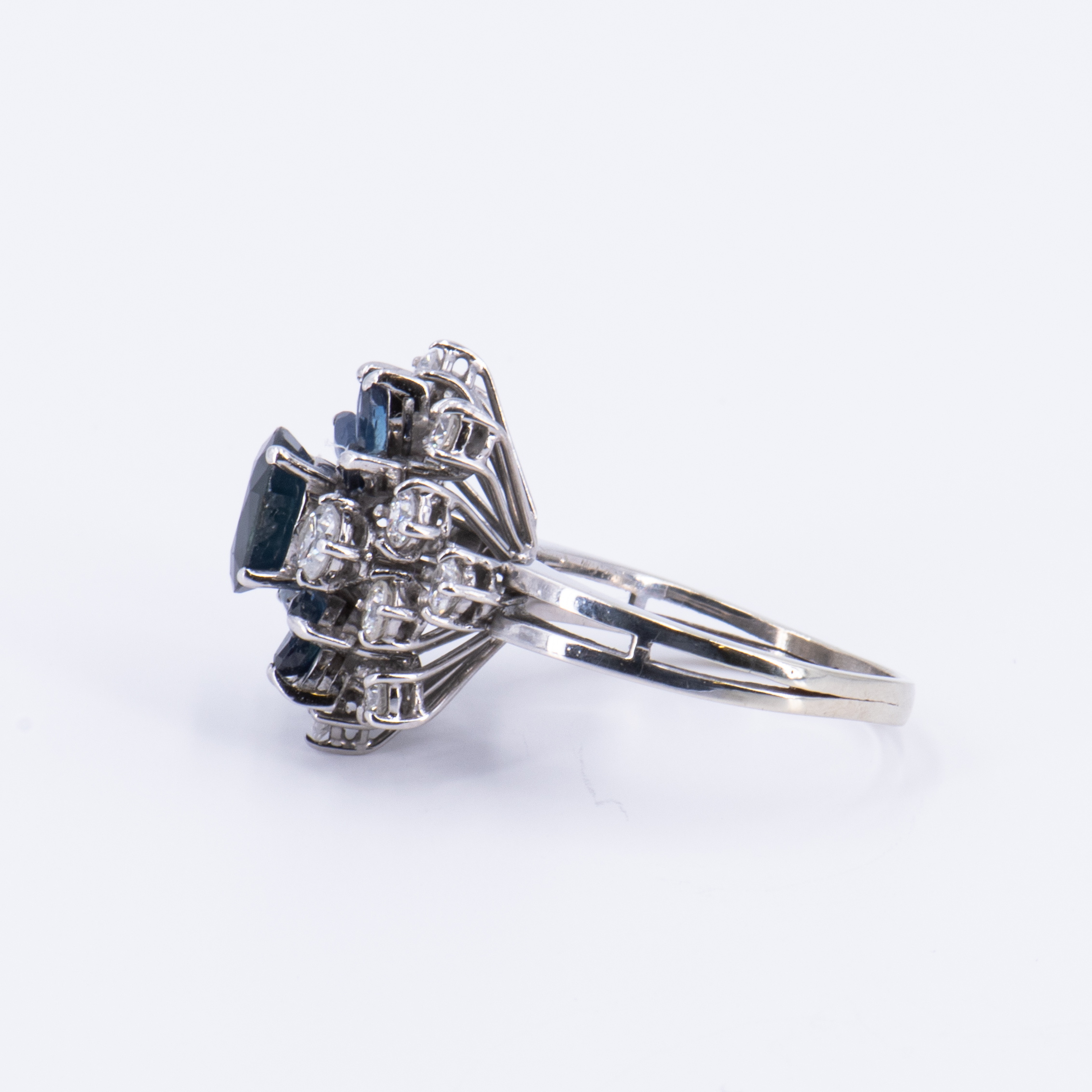 Edelsteine: 20 Saphire im Navette-Schliff 3,5 - 7,0 x 2,1 - 4,2 mm, 1 ovaler, facettierter Saphir ca. 1,4 ct.